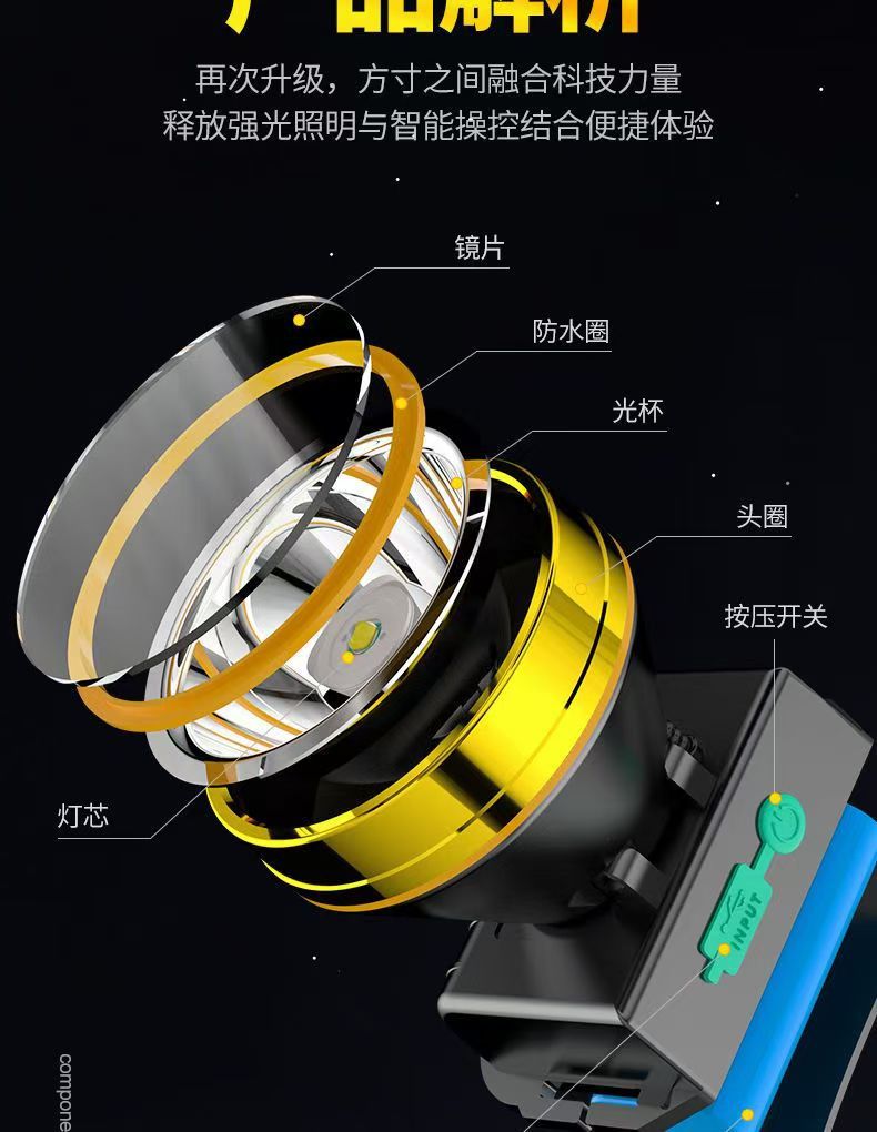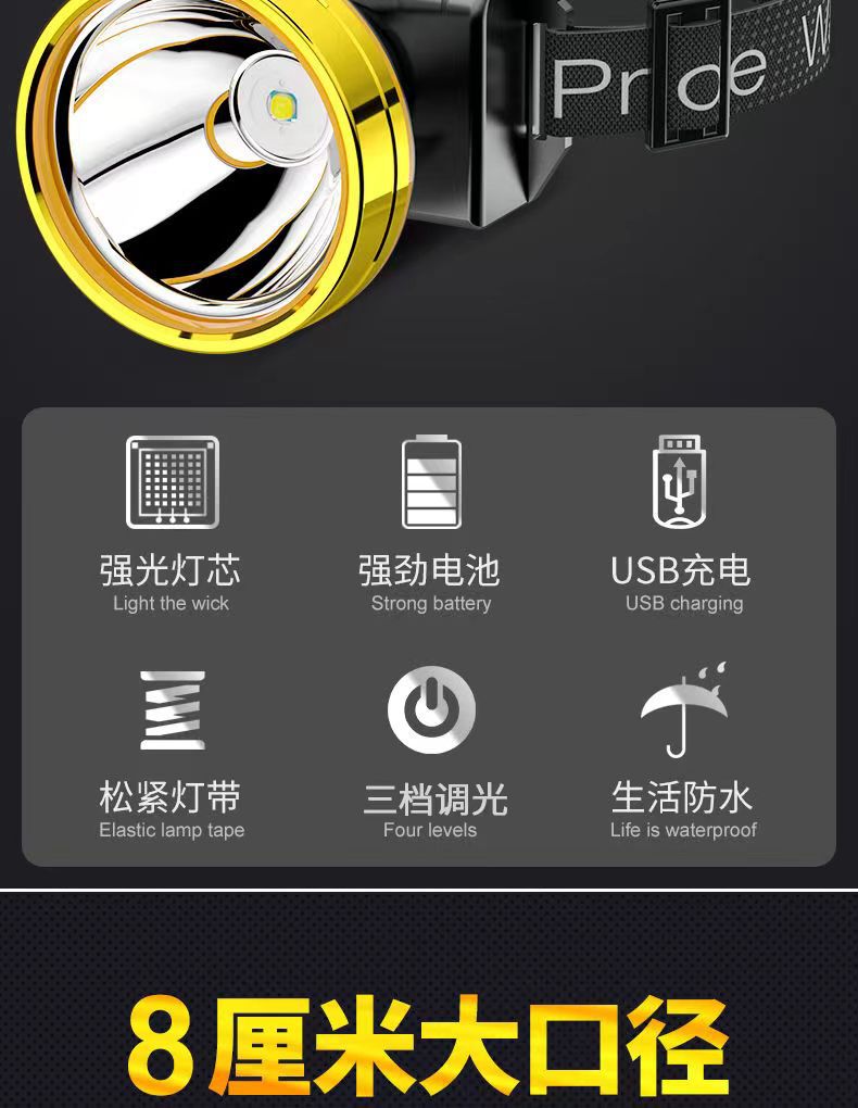 LED 강한 빛 헤드라이트 USB 충전식 고출력 광부의 램프 헤드 장착 야외 낚시 긴 지구력 야간 낚시 헤드 라이트스토어 가기