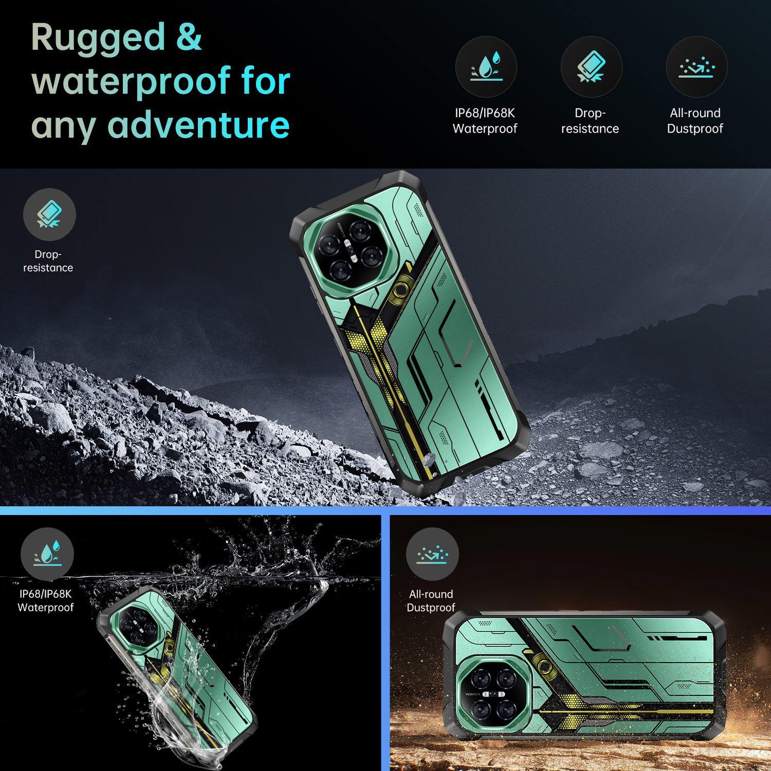 새로운 삼중 방수폰, 방수, 낙하 방지, 방진 기능을 갖춘 NFC, UV, 야간 투시 기능이 있는 안드로이드 스마트폰스토어 가기