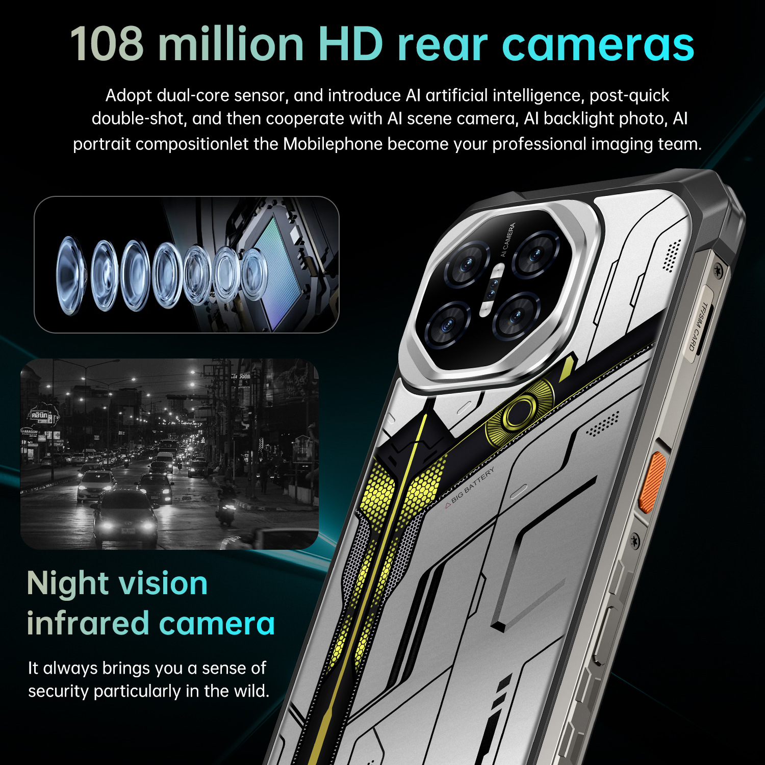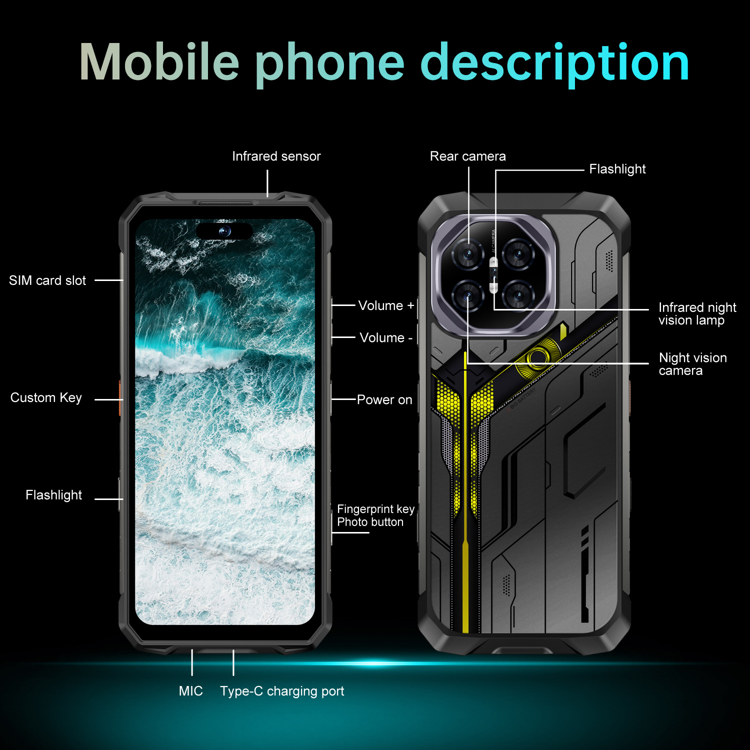 새로운 삼중 방수폰, 방수, 낙하 방지, 방진 기능을 갖춘 NFC, UV, 야간 투시 기능이 있는 안드로이드 스마트폰