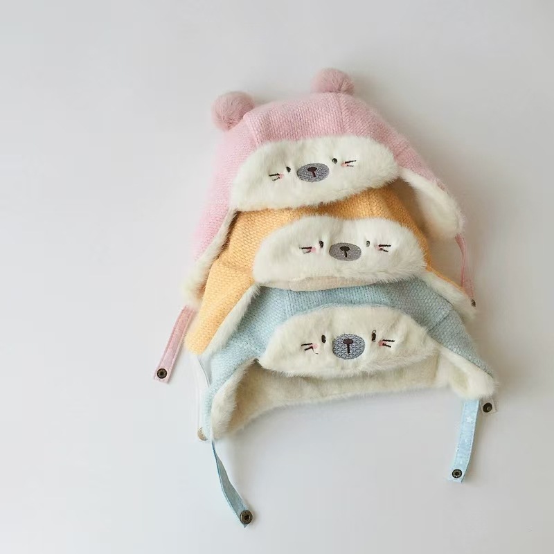아기 모자 겨울 귀여운 귀여운 아기 기모 귀 보호 모자 소년과 소녀 두꺼운 따뜻한 어린이 Lei Feng 모자