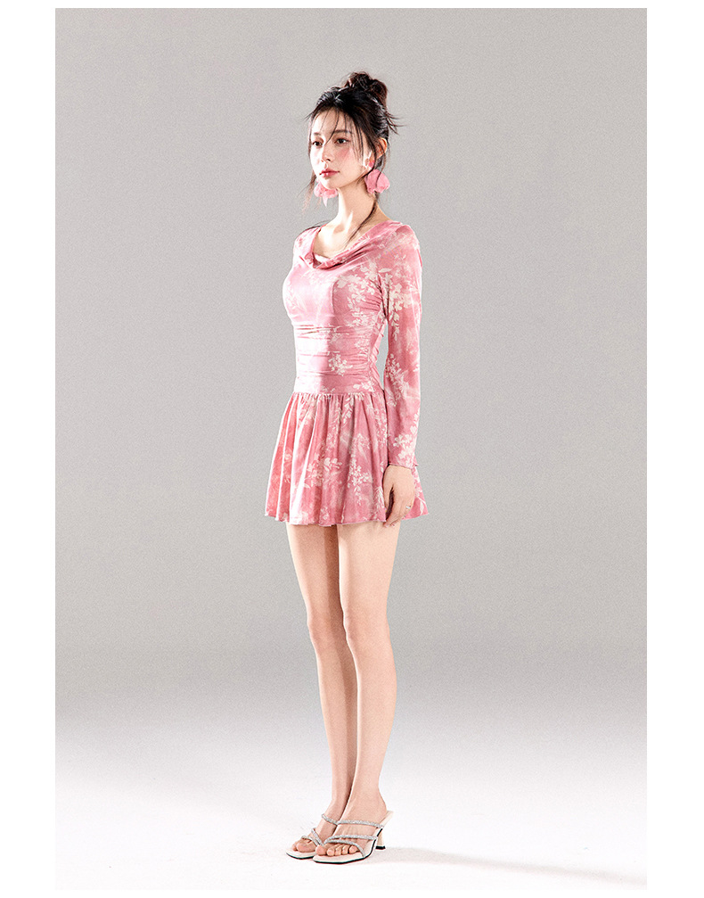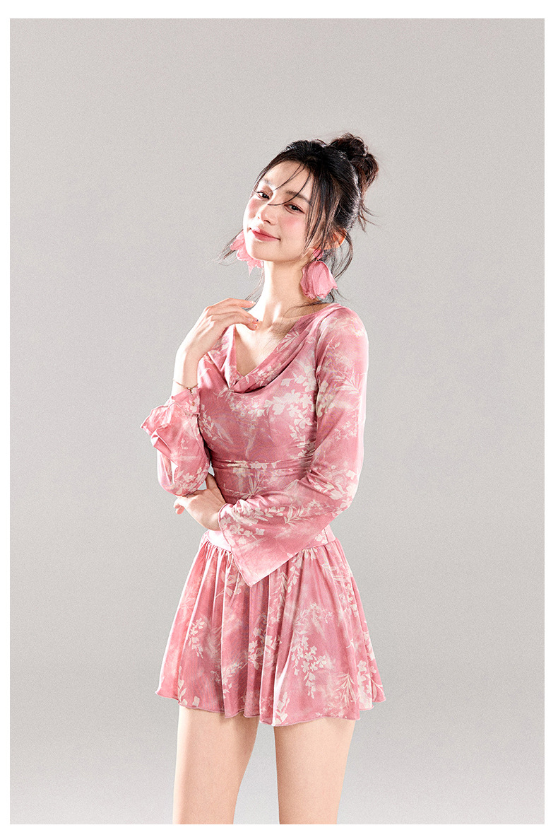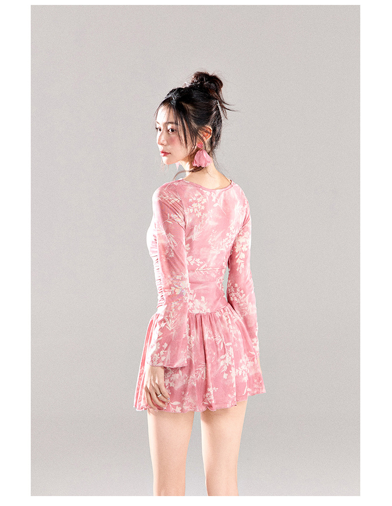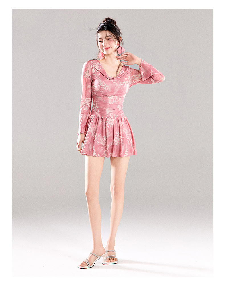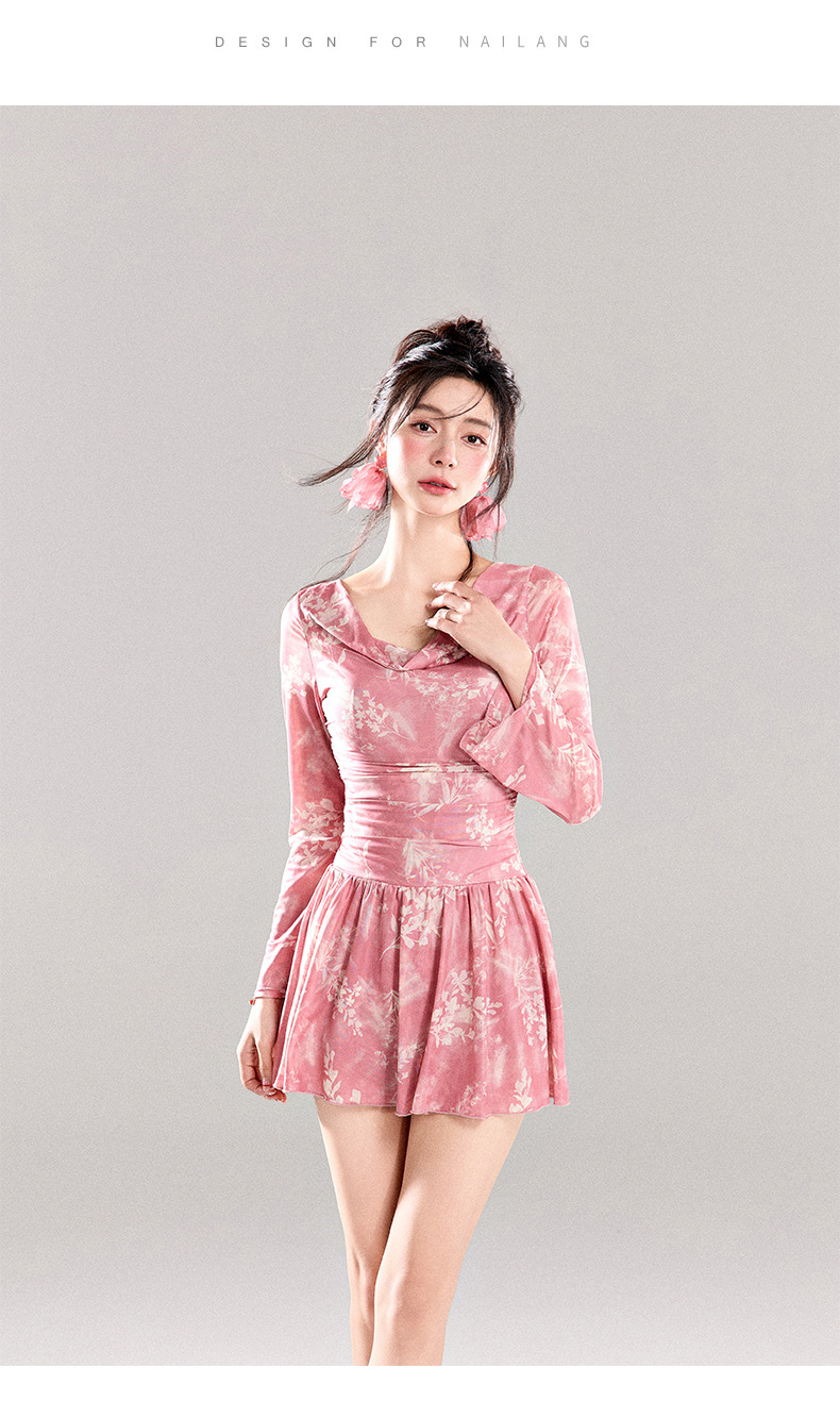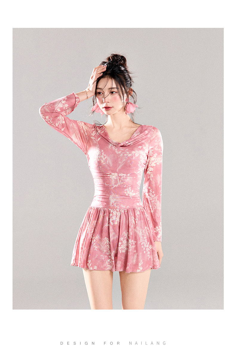 온천 수영복 여성용 긴팔 2025 새로운 육체 커버 스키니 작은 가슴 벨트 가슴 패드 Siaman 스타일 Tulle 스타일스토어 가기