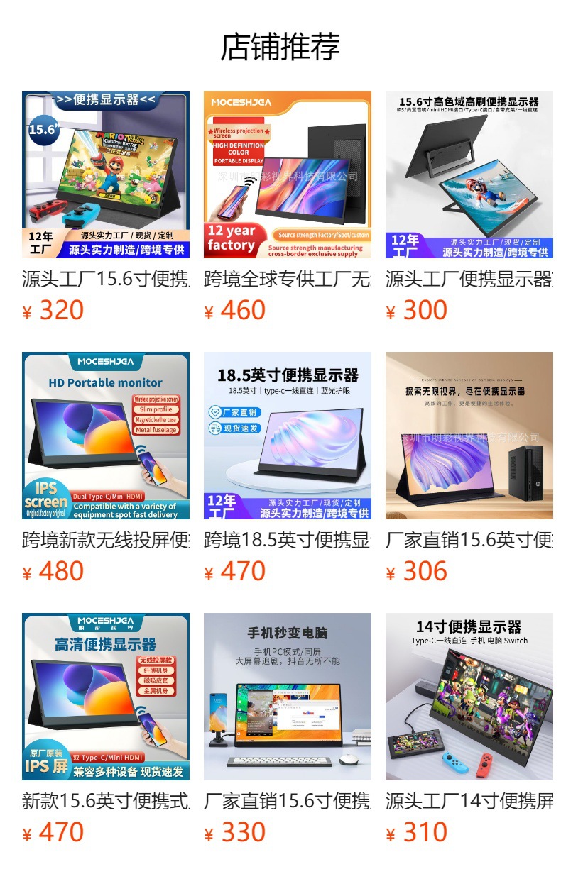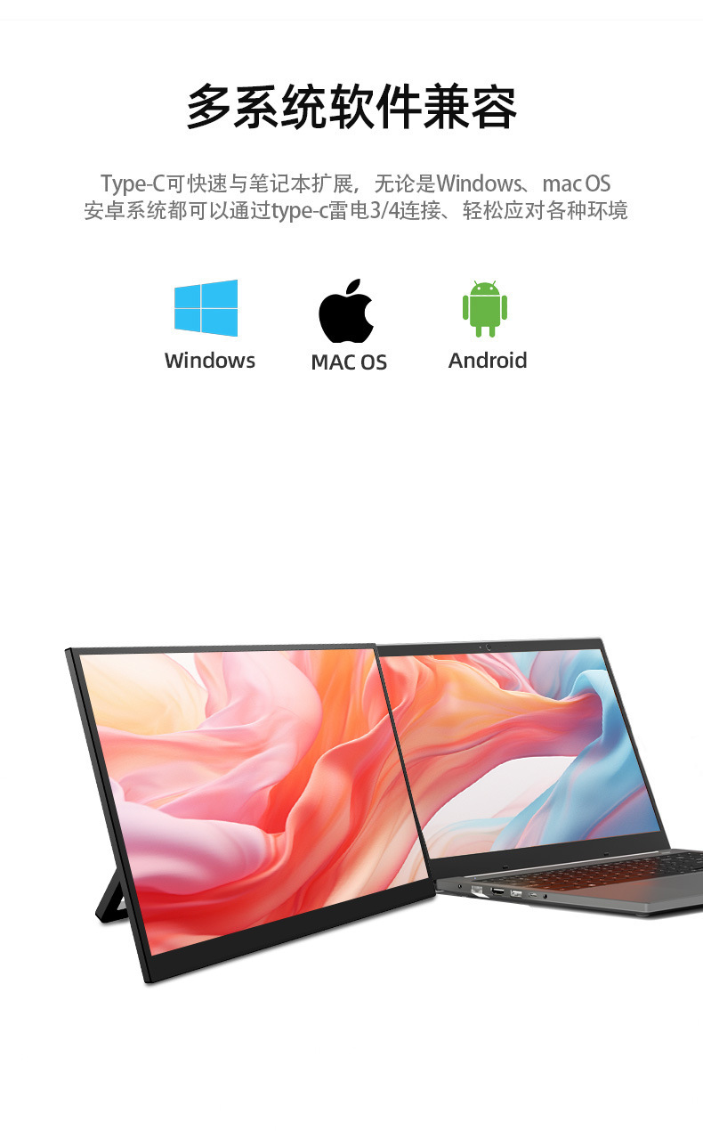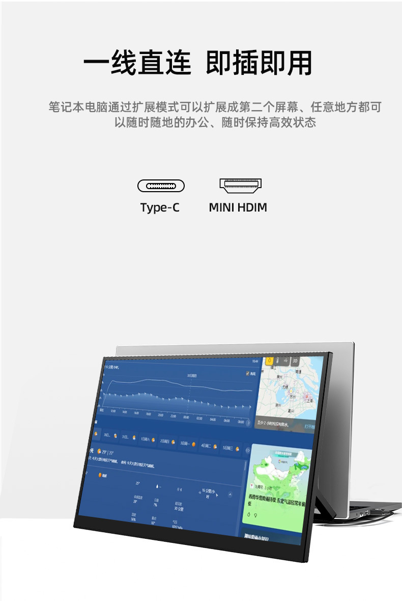 공장 직접 판매 18.5inch 휴대용 디스플레이 HD 색 영역 100% 노트북 확장 1 라인 직접 연결스토어 가기