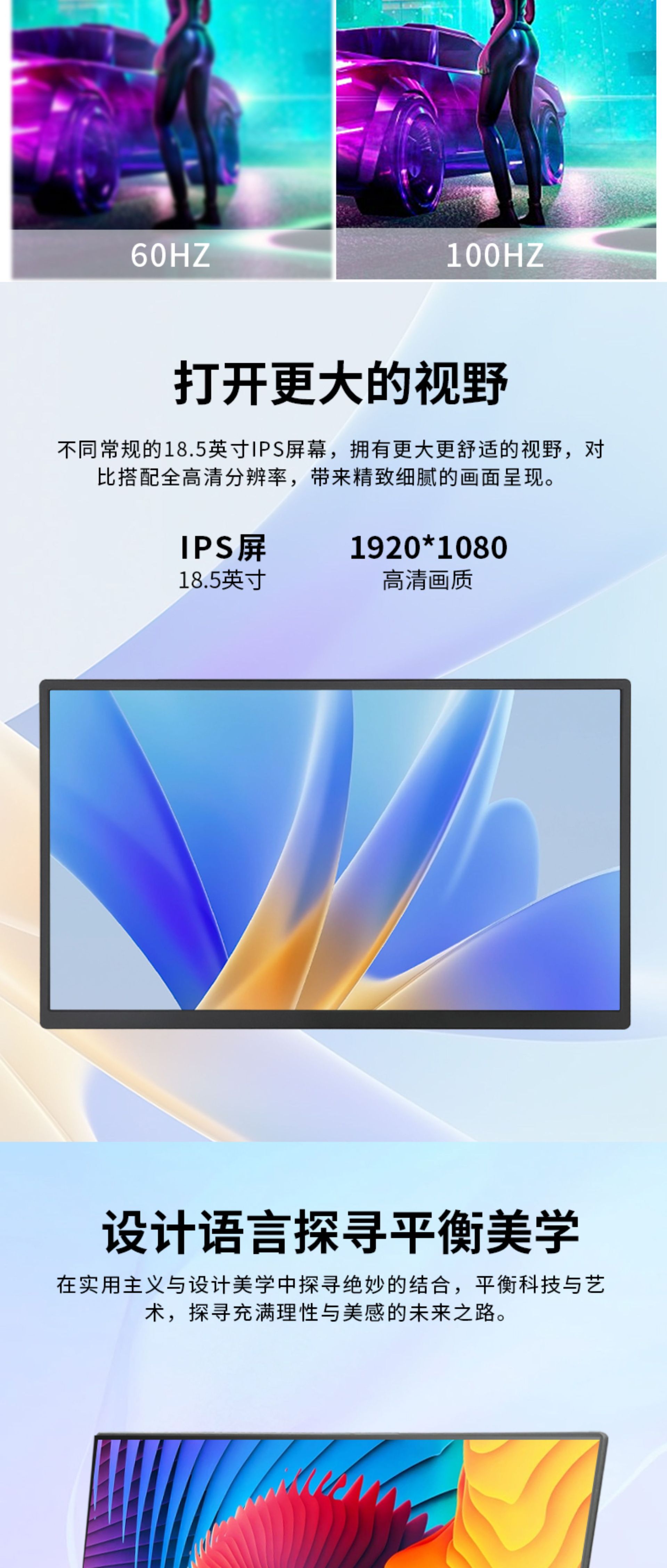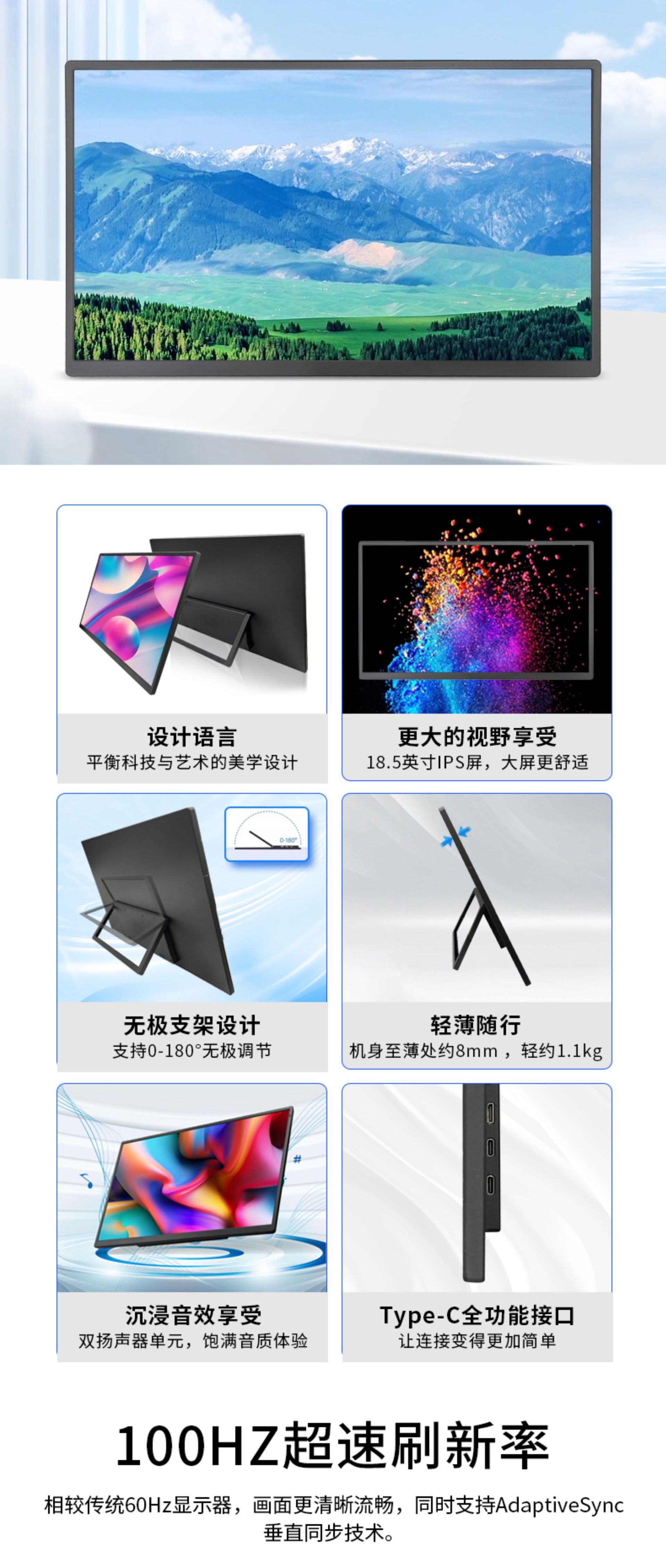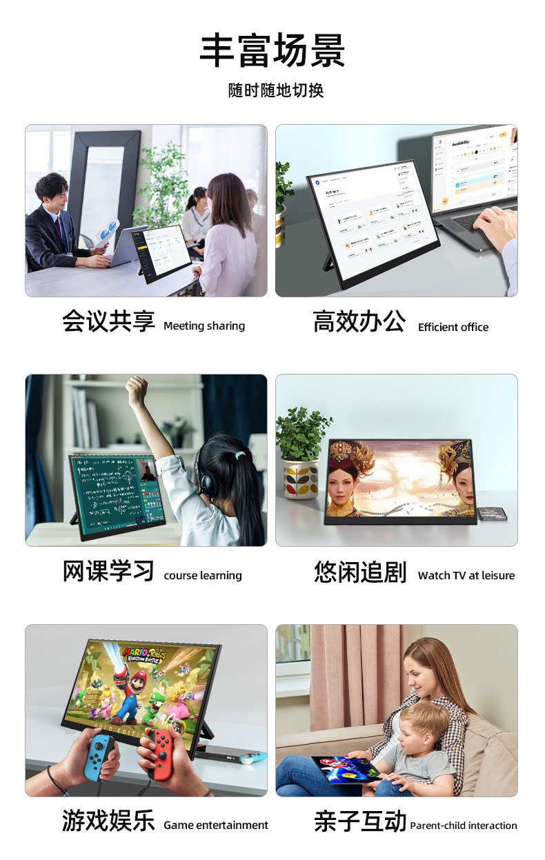 공장 직접 판매 18.5inch 휴대용 디스플레이 HD 색 영역 100% 노트북 확장 1 라인 직접 연결스토어 가기