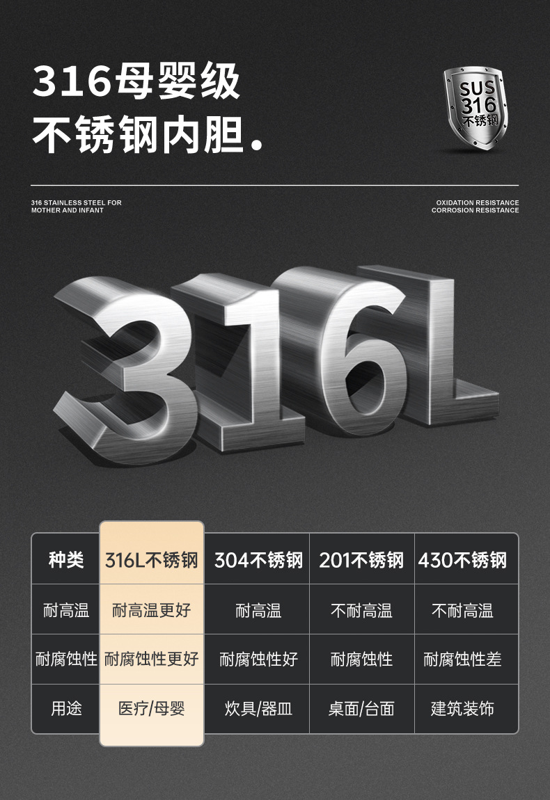 • 흰색으로 업그레이드된 316L 스테인레스 스틸 라이너