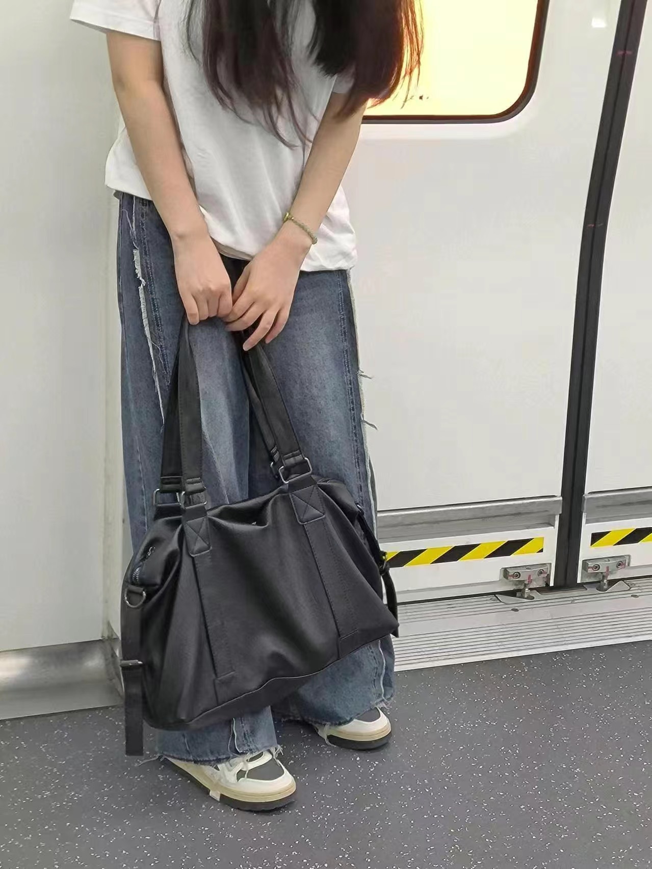 유행 멋진 휴대용 여행 가방 여성의 2024 새로운 한국 스타일 캐주얼 토트 백 대용량 크로스 바디 가방 수하물 가방스토어 가기