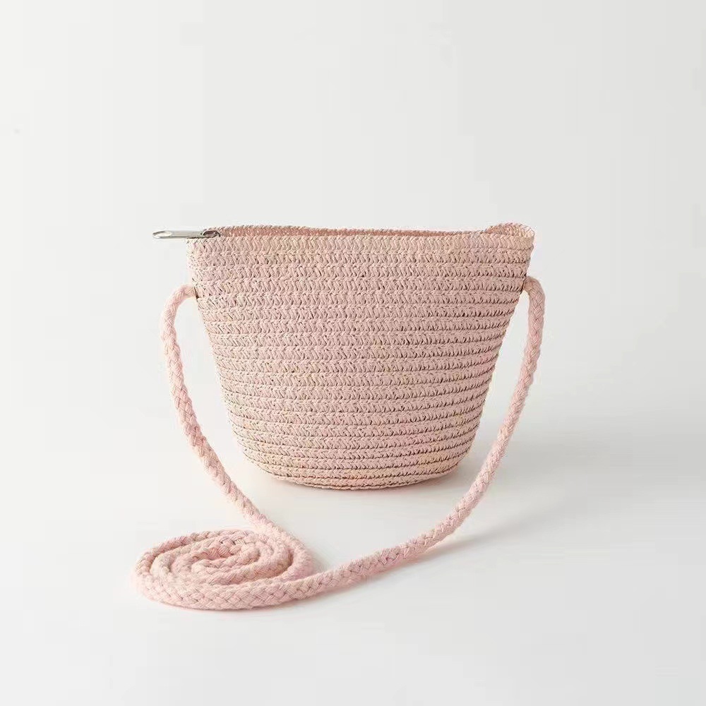 여름 수제 밀짚 어린이 가방, 숄더백, 소형 크로스백, 여자 아기 DIY 동전 지갑, 통기성 및 항균