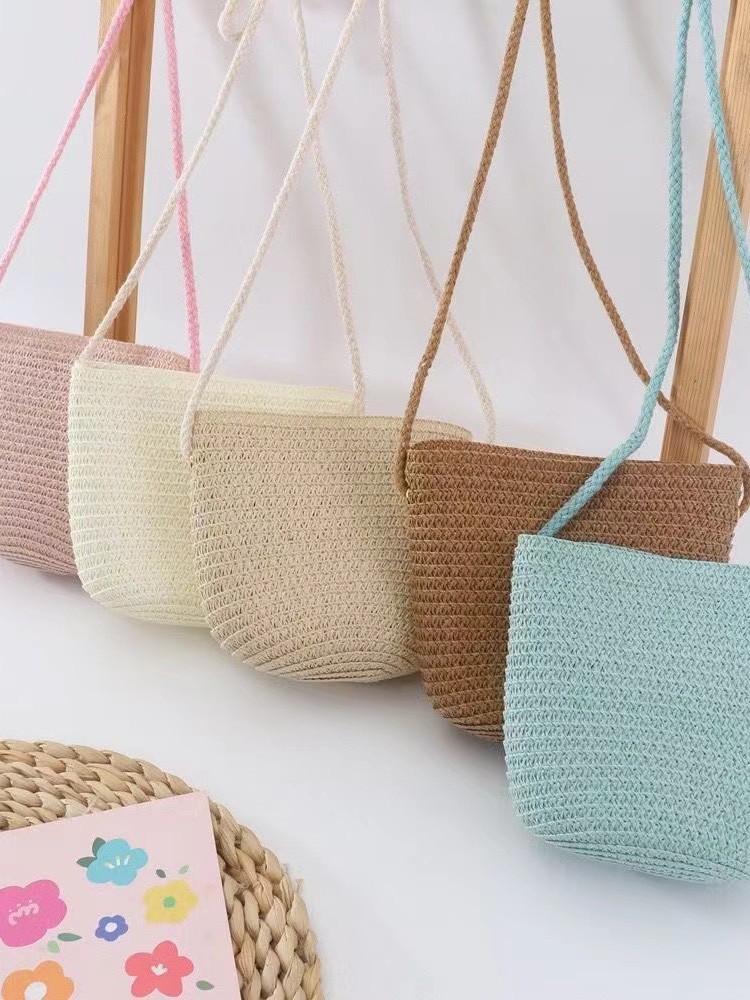 여름 수제 밀짚 어린이 가방, 숄더백, 소형 크로스백, 여자 아기 DIY 동전 지갑, 통기성 및 항균스토어 가기