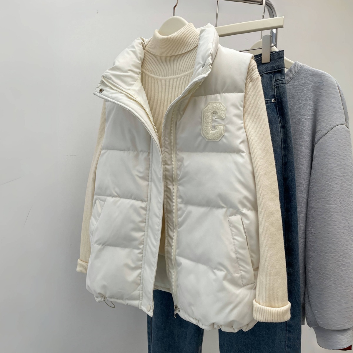 가을과 겨울 2024 한국식 뉴 플러스 사이즈 올매치 조끼 대학 스타일 외부 통근 탑 면 조끼 여성 의류스토어 가기