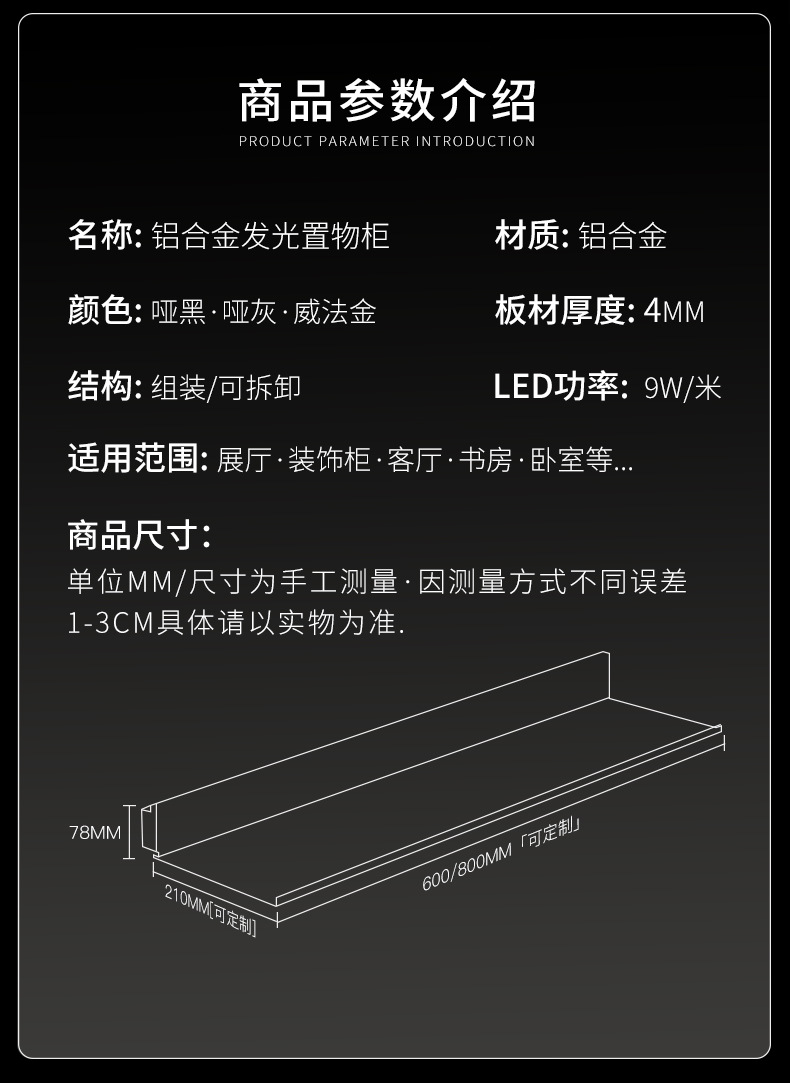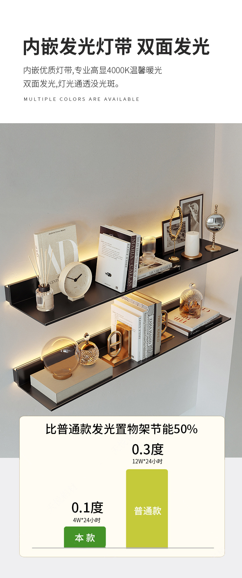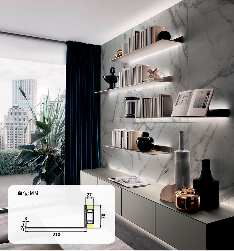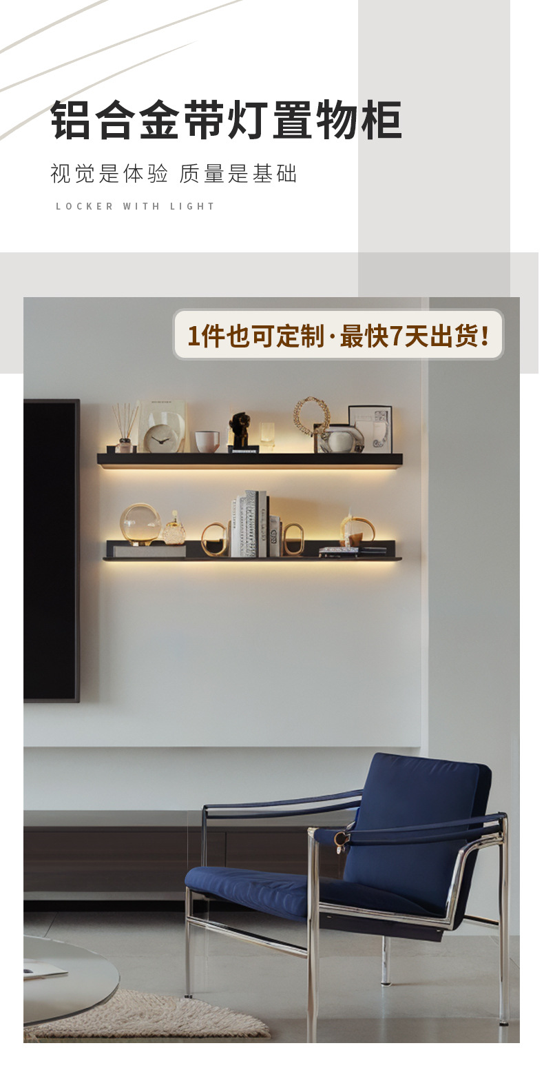 L자형 알루미늄 합금 수납 선반, 일자형 디스플레이 선반, LED 조명 벽걸이형 선반, 거실 책장 수납 선반스토어 가기