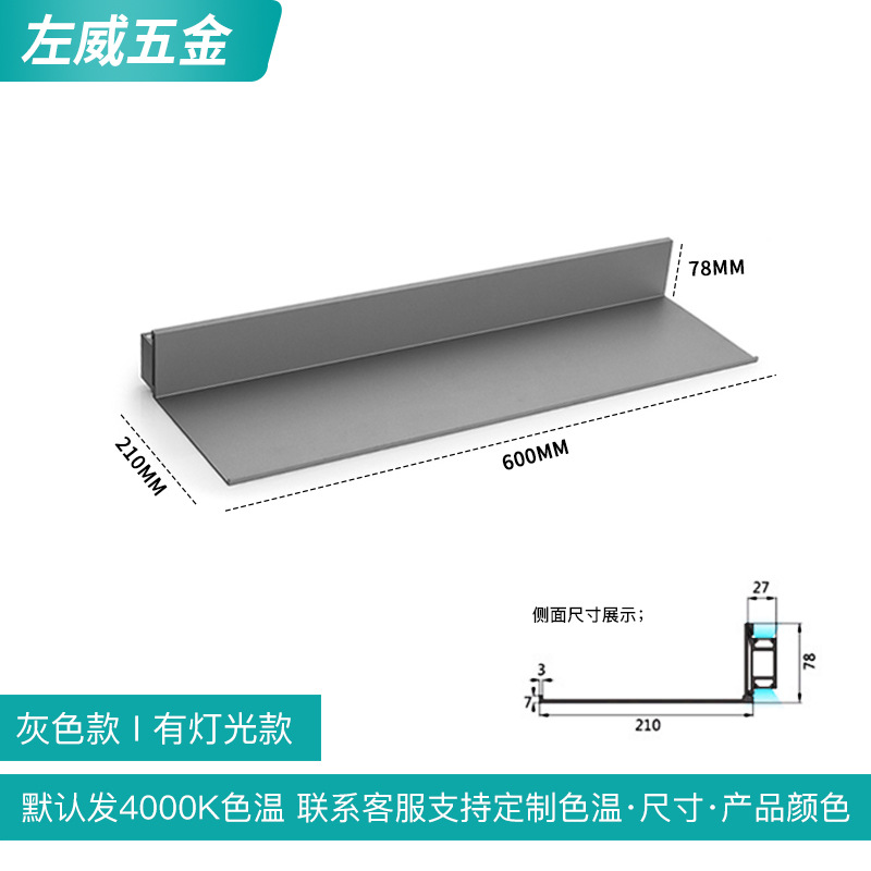 • 600 길이 - 고급 회색 - 조명 없음 [기본 왼쪽 콘센트]
