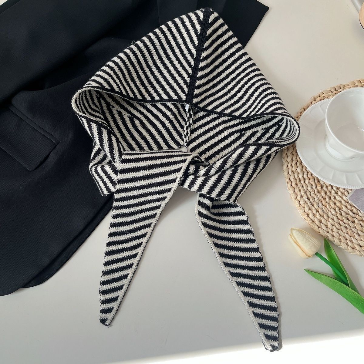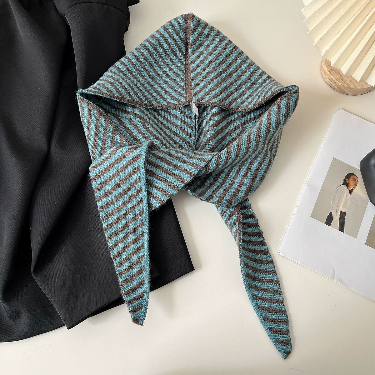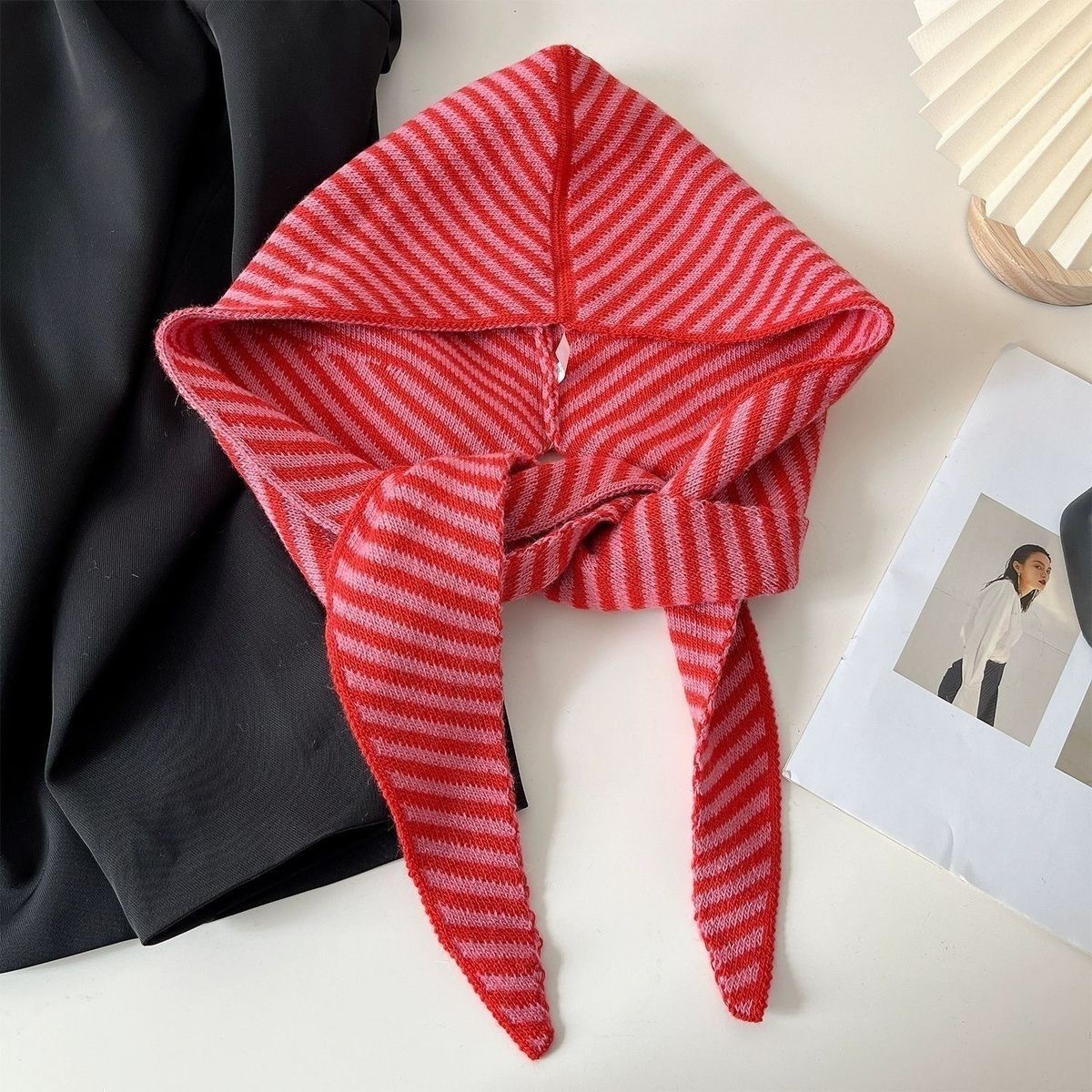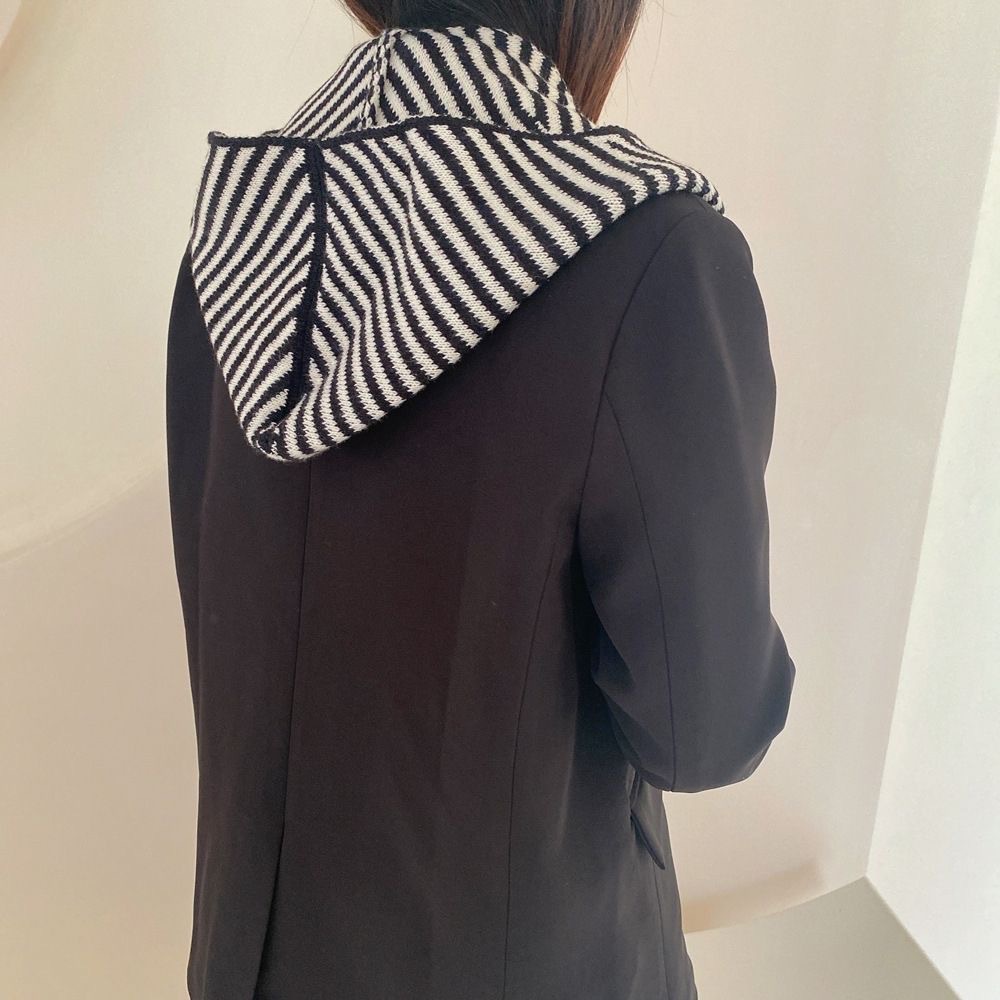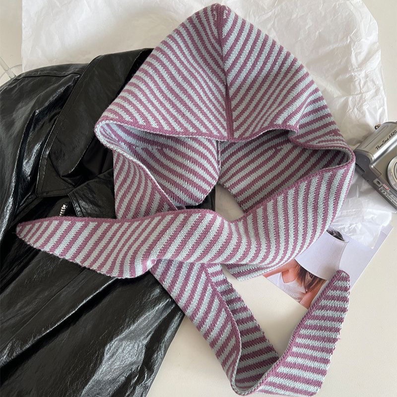 멀티 스타일 가을과 겨울 한국 줄무늬 모자 스카프 올인원 여성의 따뜻한 목도리 스카프 울 니트 모자 후드