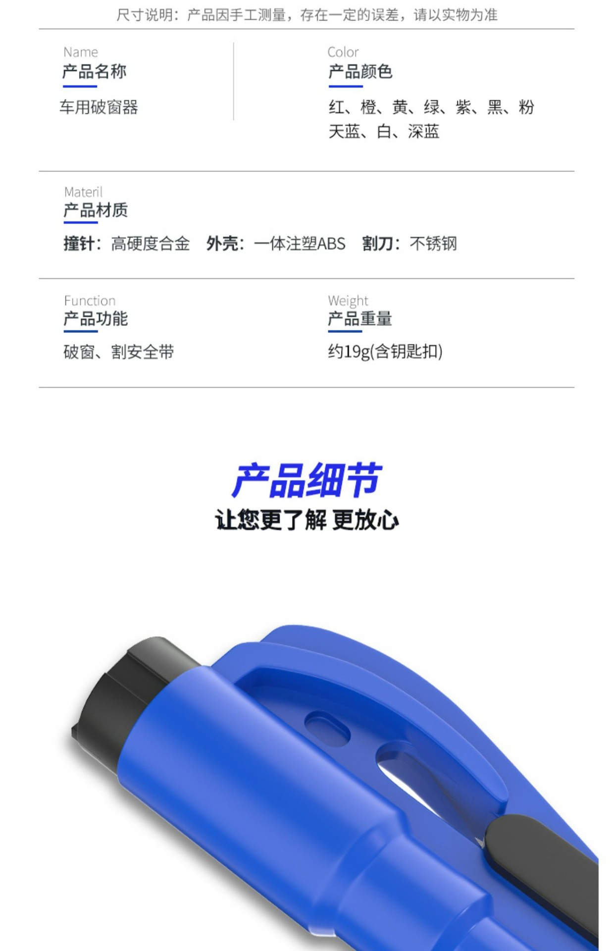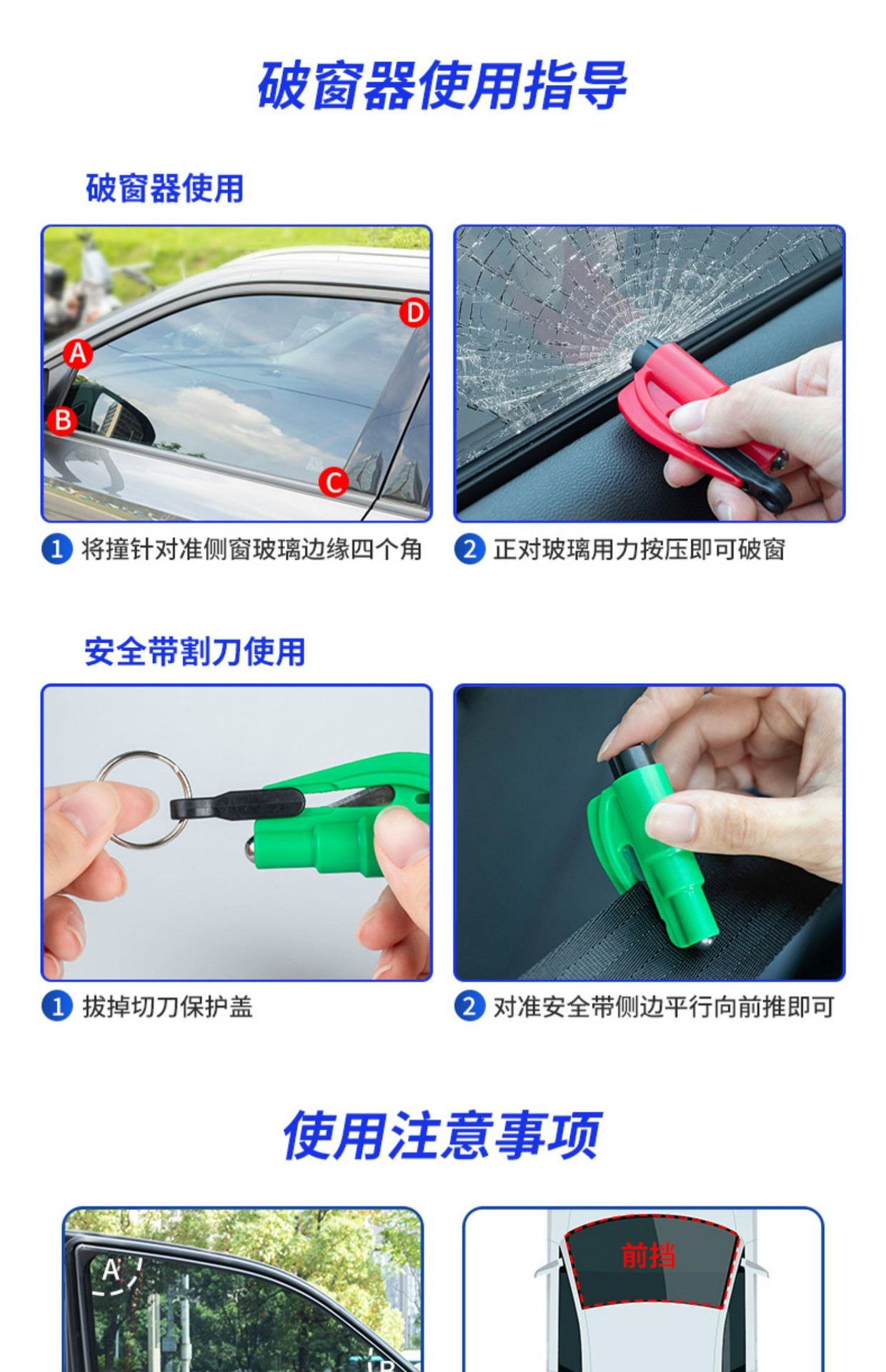 자동차 탈출 망치 깨진 유리 1 초 깨진 창 유물 미니 투인원 자동차 다기능 자동차 비상 망치