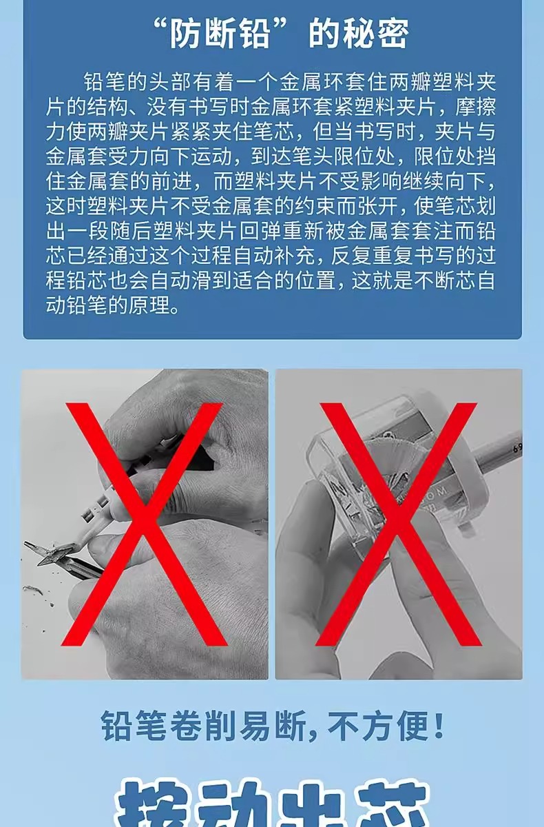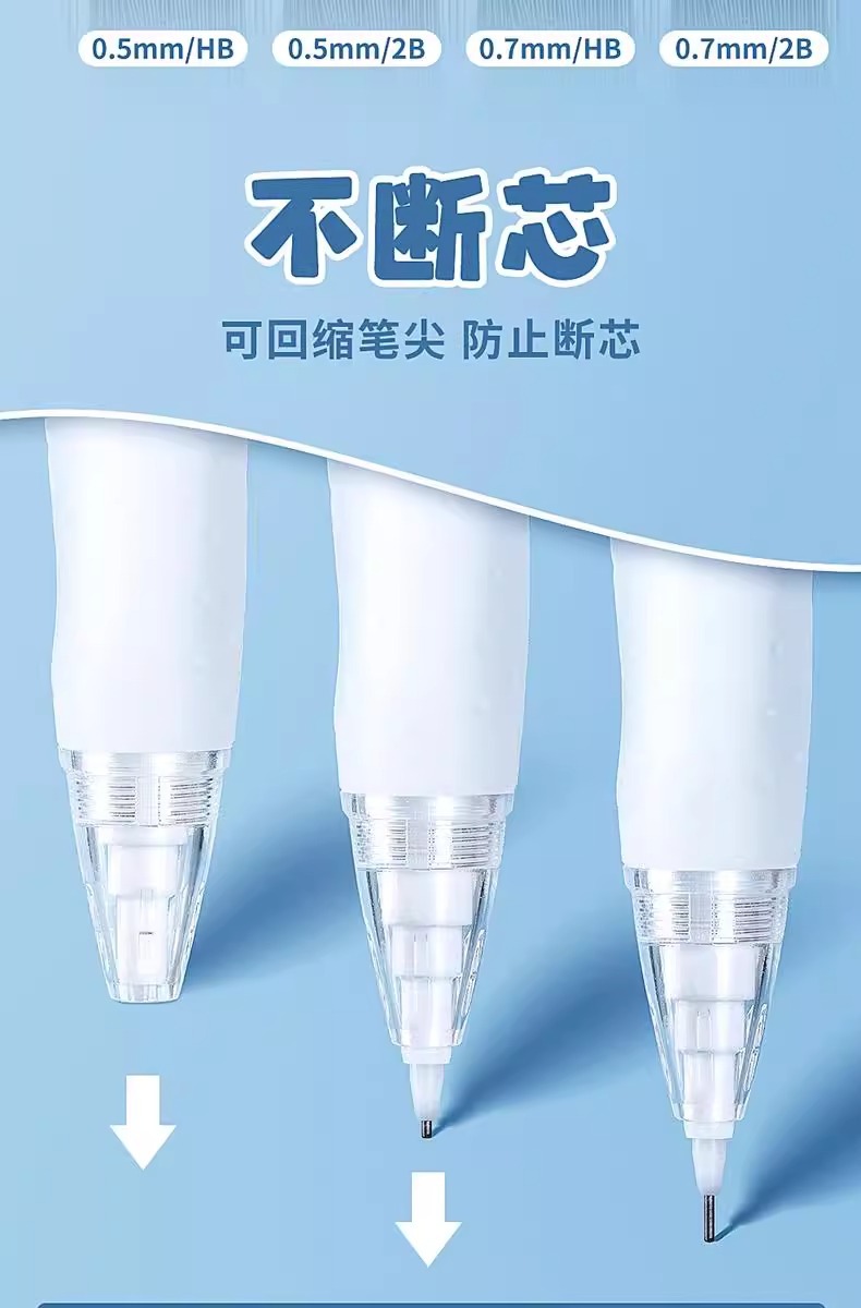 우수한 그립감을 자랑하는 자동연필, 중학생과 초등학생을 위한 특별한 숙제 도구, 0.5mm심으로 작동합니다.스토어 가기