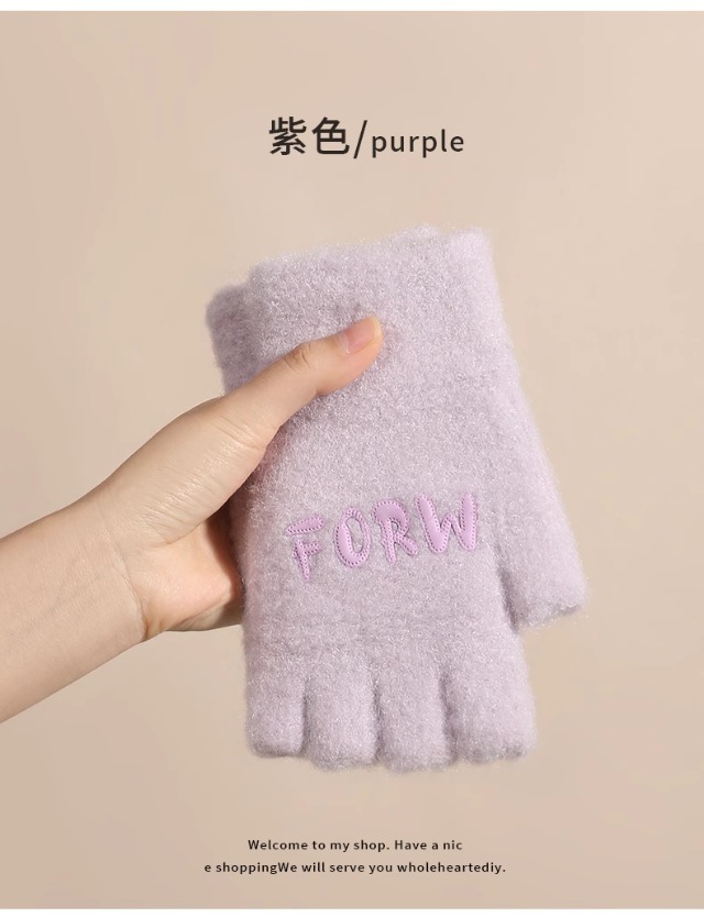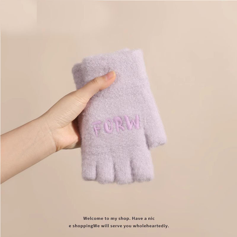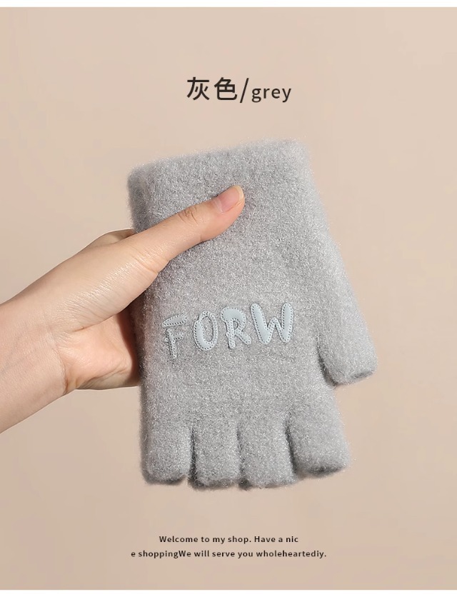 니트 봉제 반 손가락 장갑 겨울 소녀 겨울 사무실 쓰기 운전 기모 따뜻한 방풍 차가운 터치 스크린스토어 가기