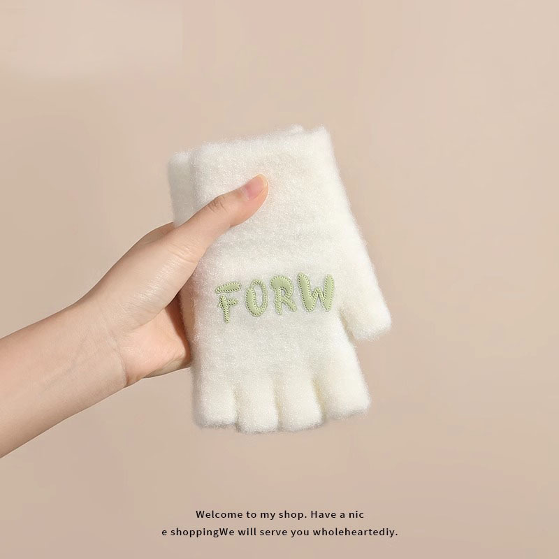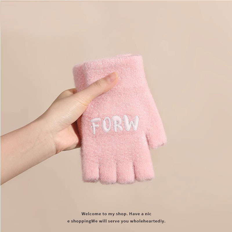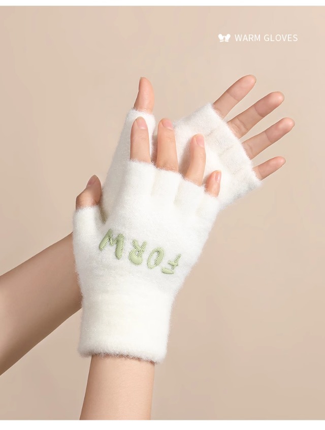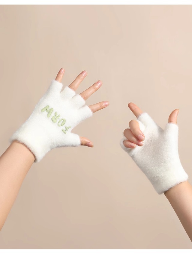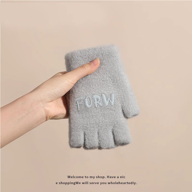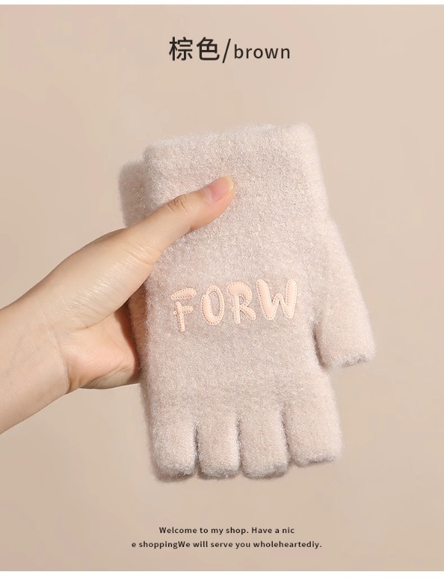 니트 봉제 반 손가락 장갑 겨울 소녀 겨울 사무실 쓰기 운전 기모 따뜻한 방풍 차가운 터치 스크린