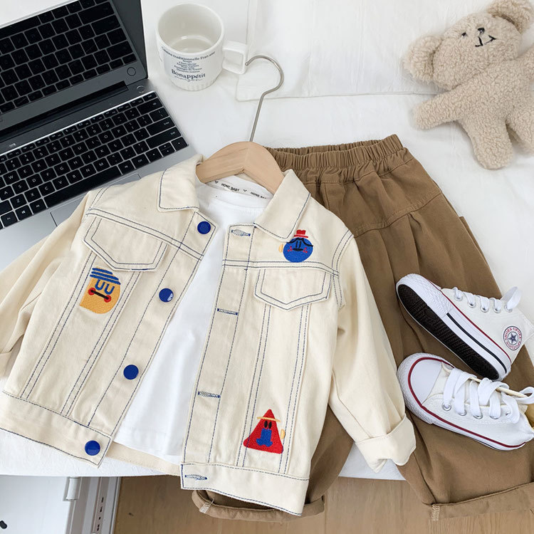 소년 데님 코트 2024 년 봄과 가을 새로운 어린이 캐주얼 재킷 어린이 잘 생긴 최고의 트렌디 아동복스토어 가기