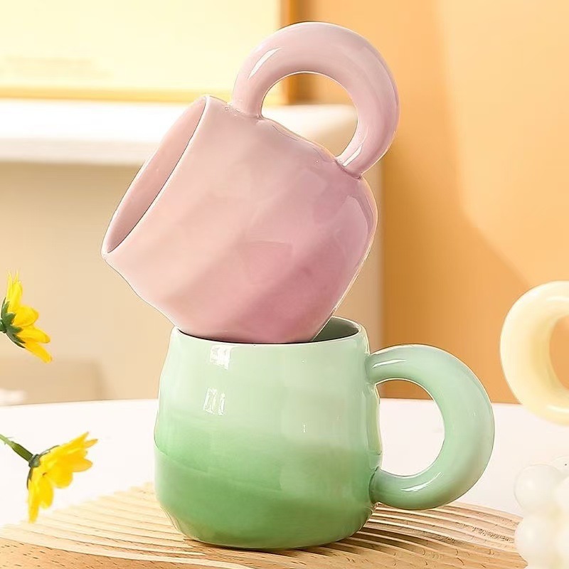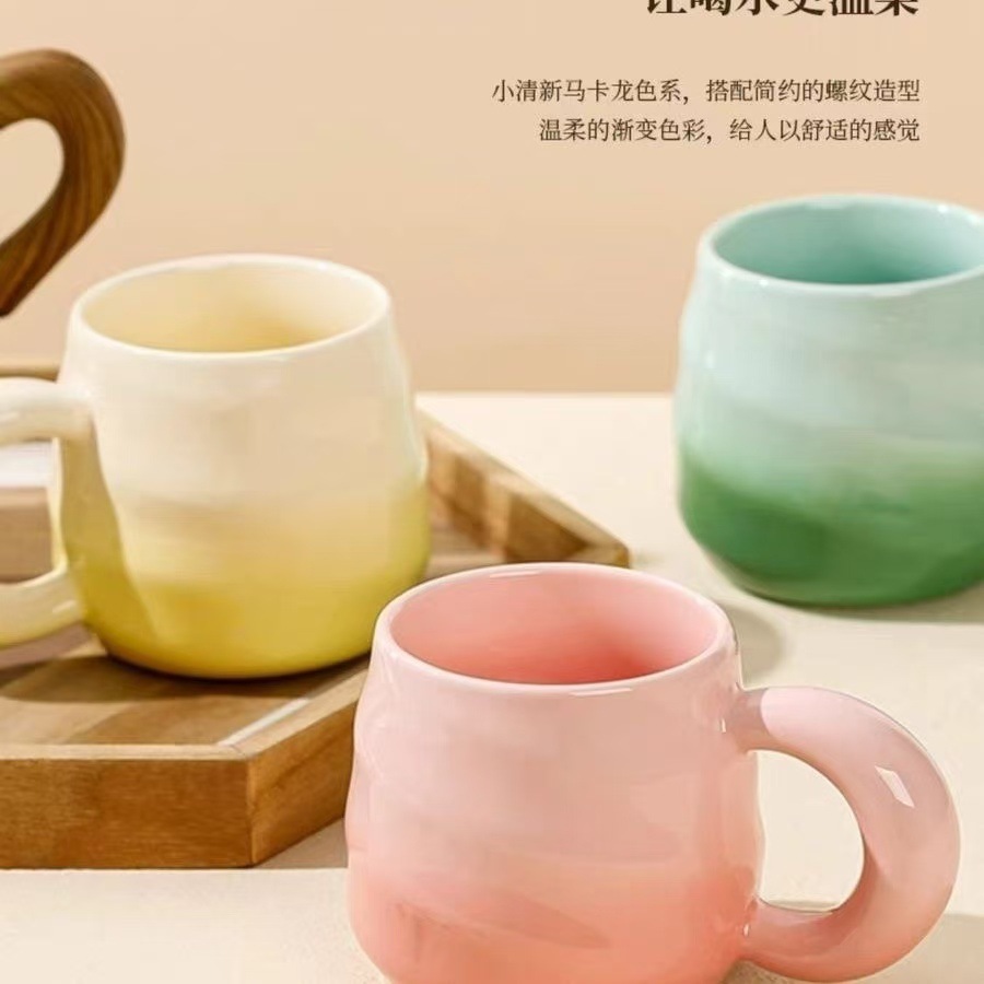 인터넷 축하 아침 식사 커피 잔 그라디언트 나선형 색상 값 귀여운 우유 컵 학생 커플 세라믹 컵스토어 가기
