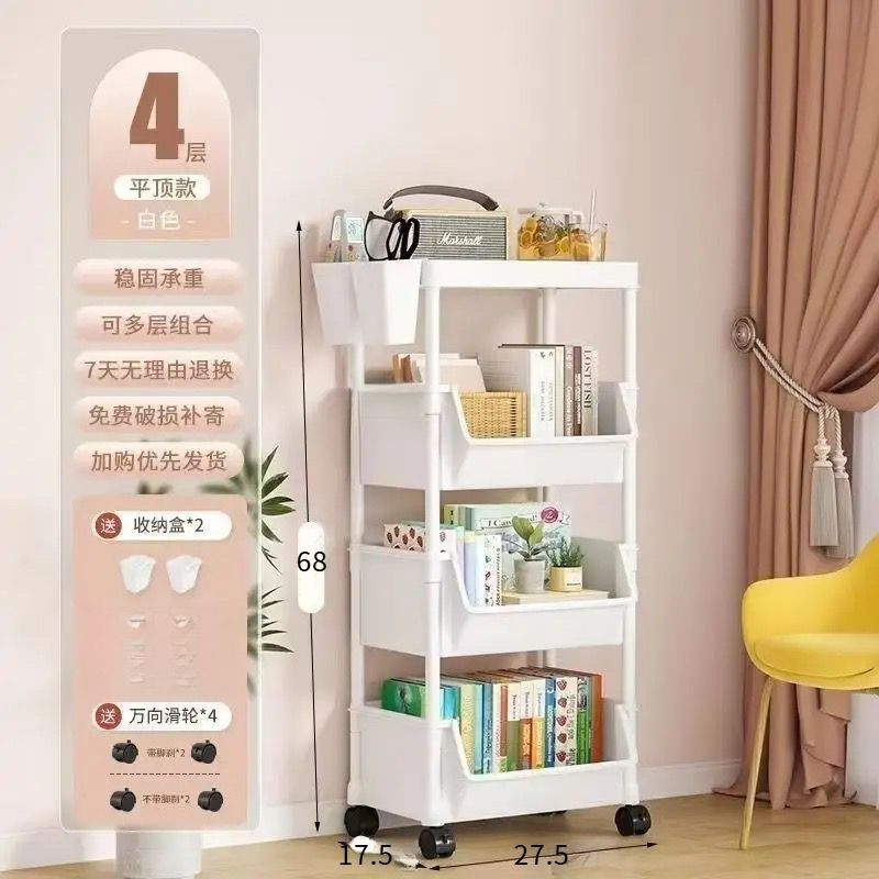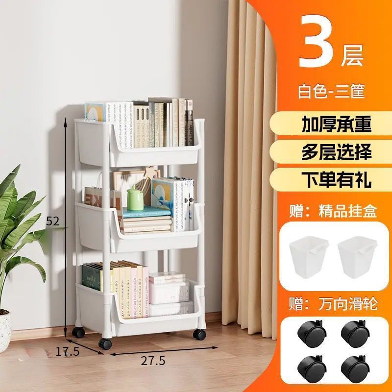 카트 보관 랙 모바일 책장 바닥 다층 바퀴 거실 기숙사 어린이 작은 책장 카트 보관 랙
