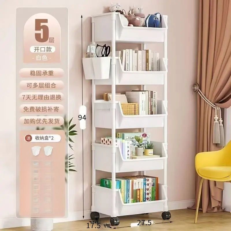 카트 보관 랙 모바일 책장 바닥 다층 바퀴 거실 기숙사 어린이 작은 책장 카트 보관 랙스토어 가기