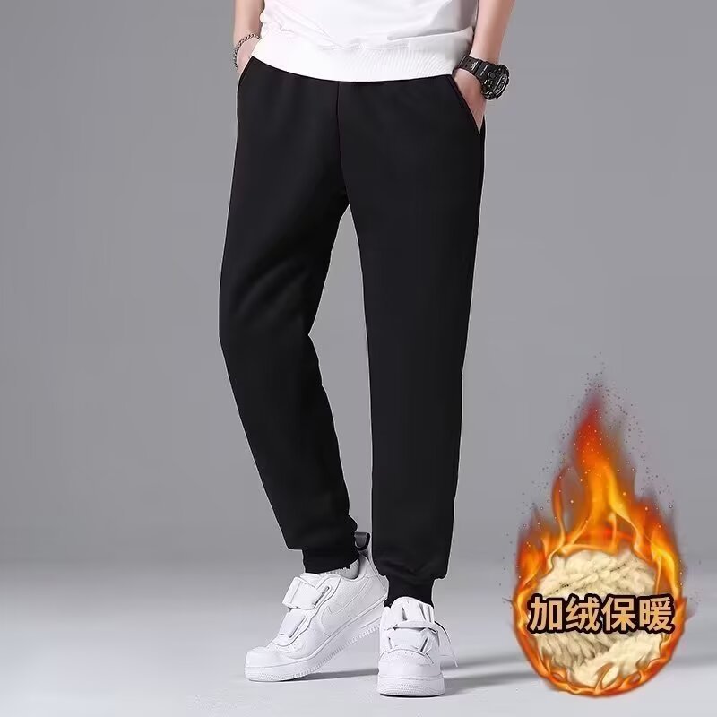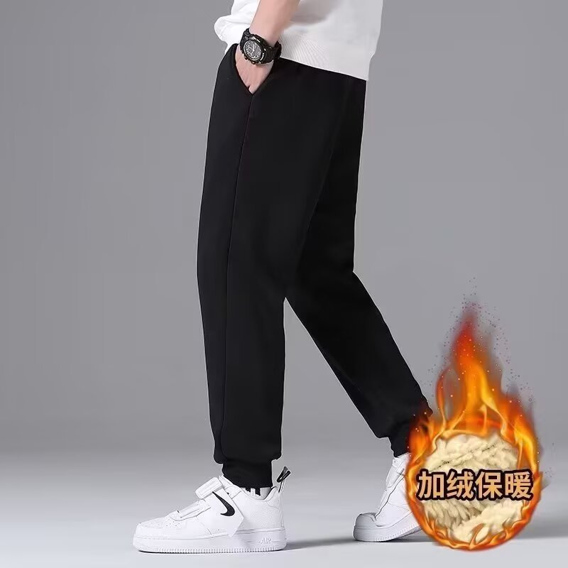 가을과 겨울 기모 캐주얼 바지 남자 일본식 양고기 벨벳 플러스 사이즈 스포츠 바지 느슨한 간단한 단색 바지