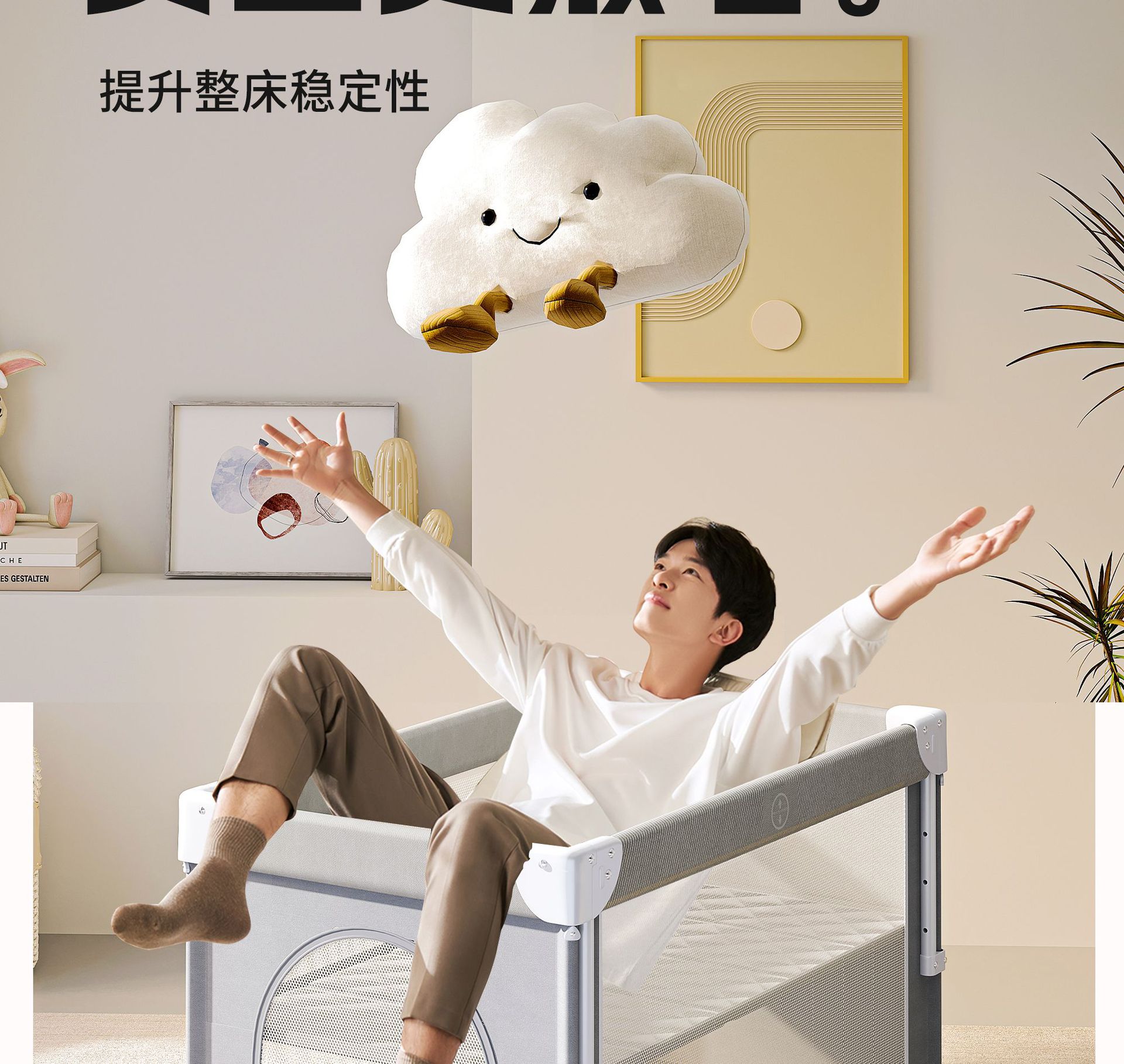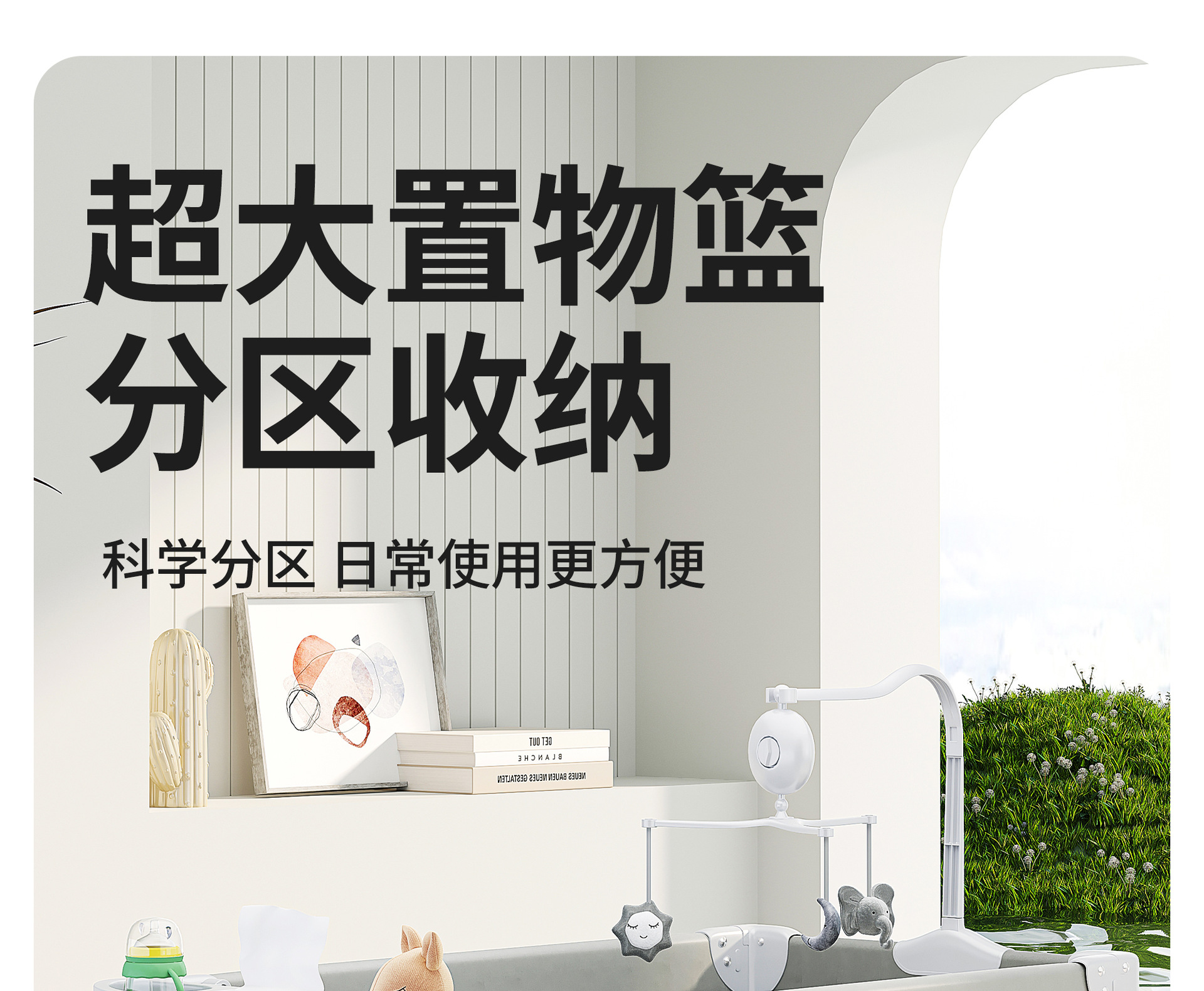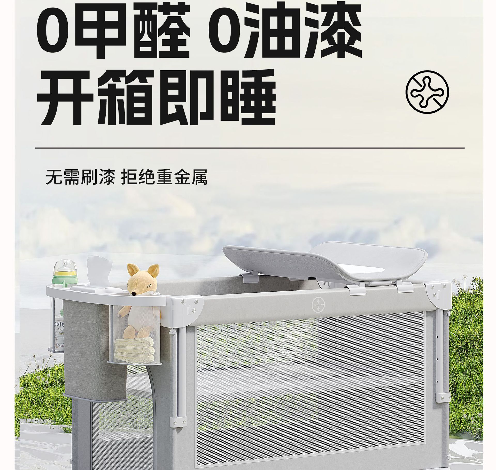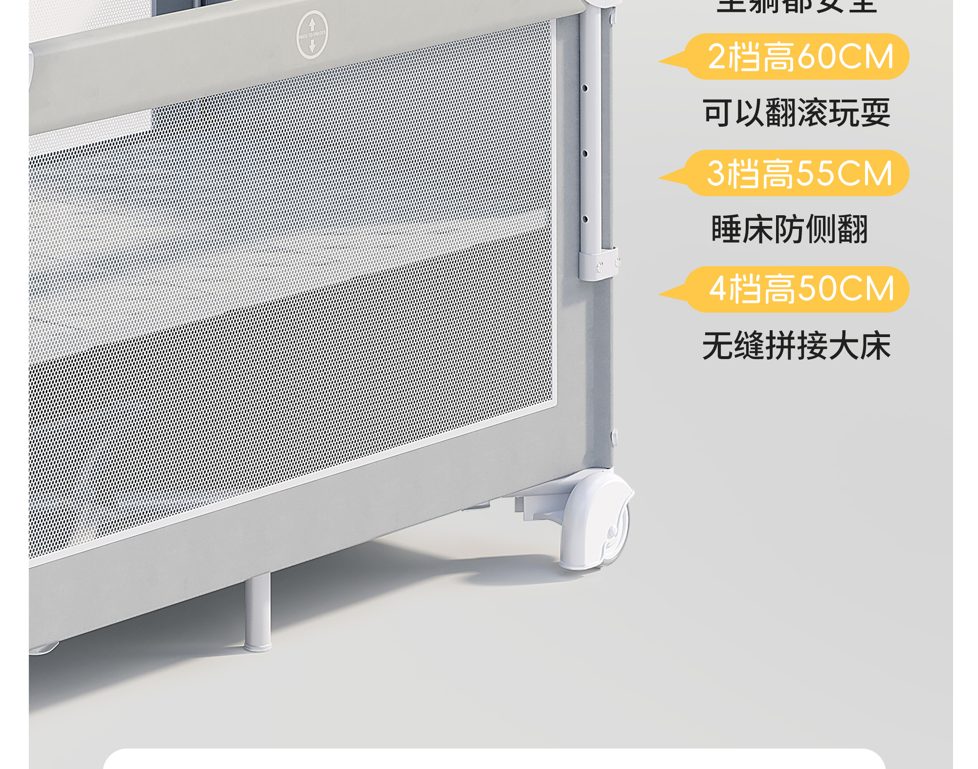 • 라이트 그레이 [이층 게임 스플라이싱 리프트] 침대 + 5종 세트 (모기장 + 수납 블루 + 기저귀 교환대 + 침대 벨 + 로커)