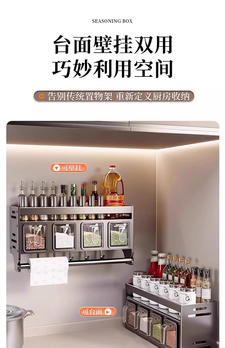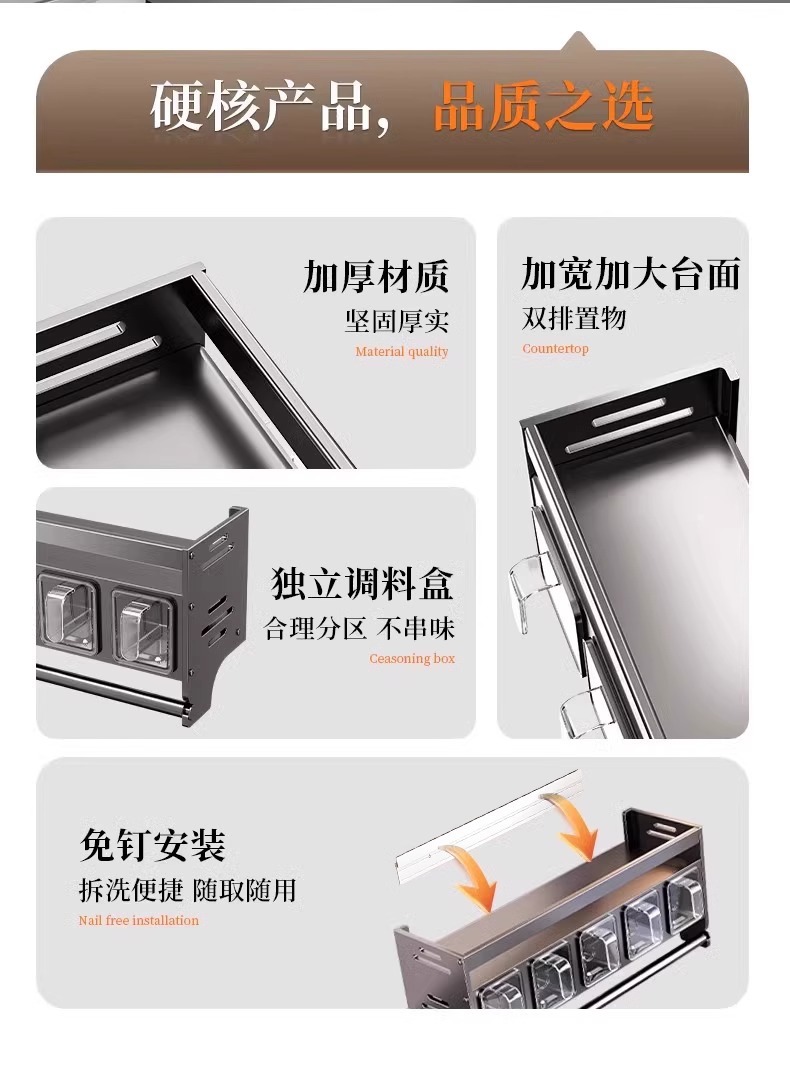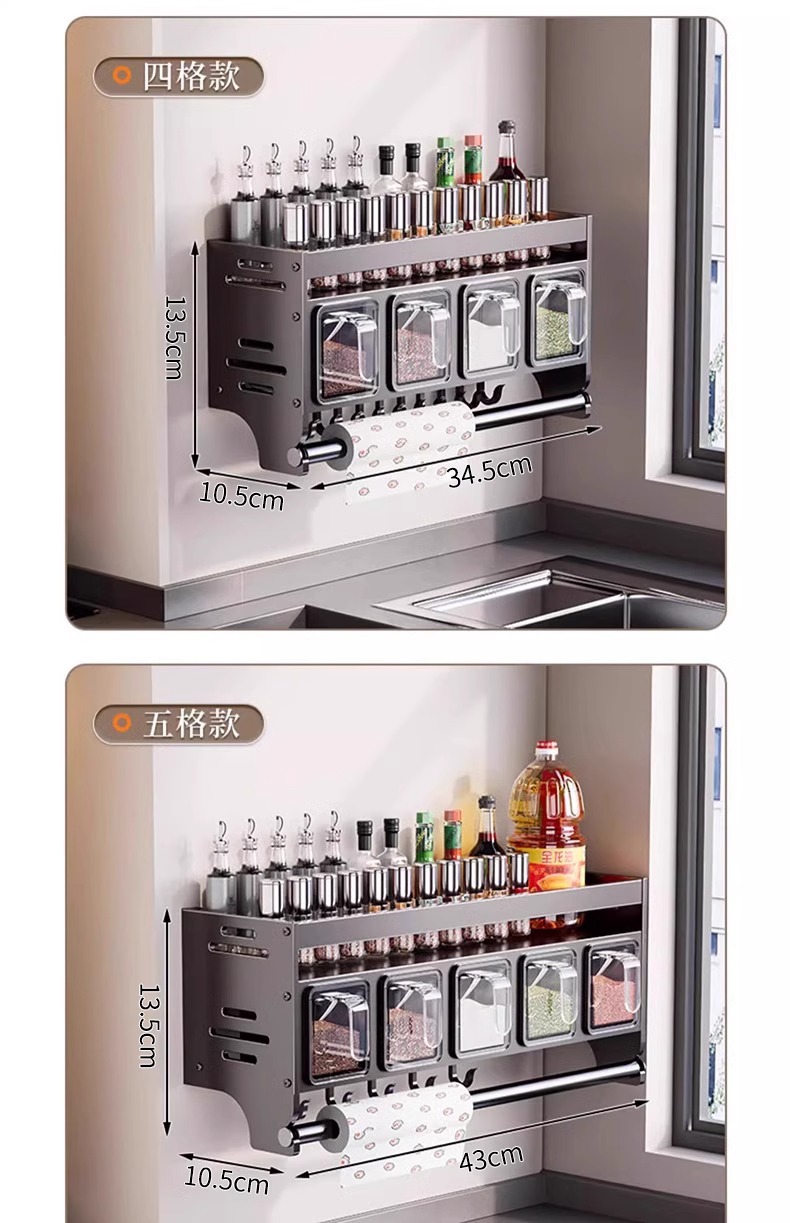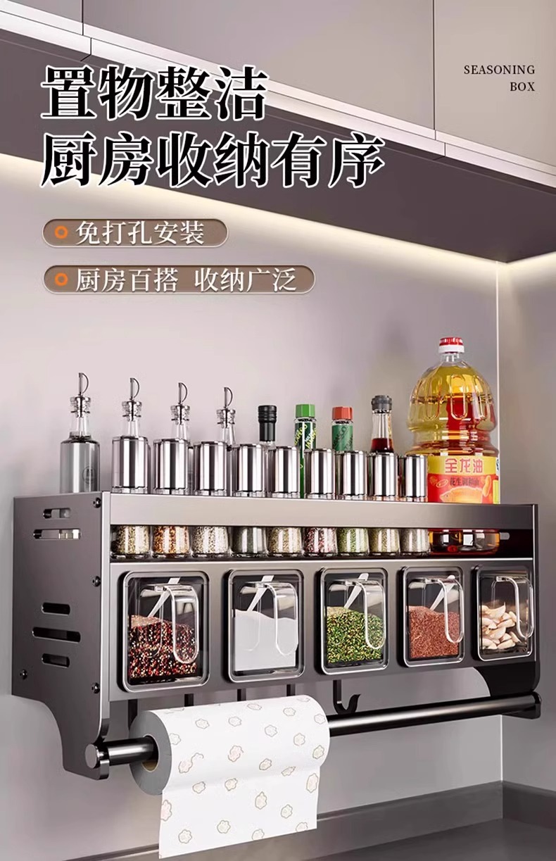 주방 조미료 상자 보관 랙 천공되지 않은 벽걸이 다기능 양념 항아리 병 조미료 조합 세트 보관 랙스토어 가기