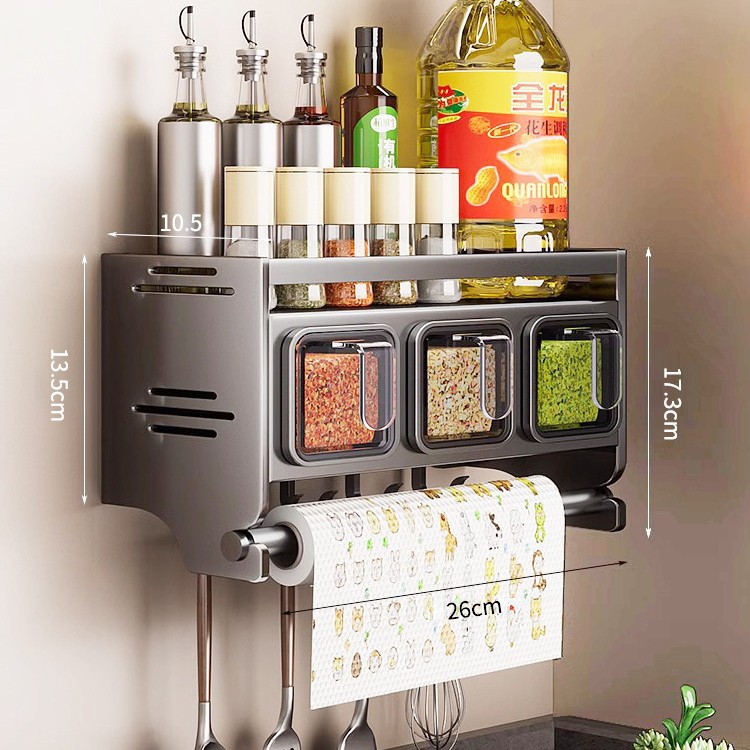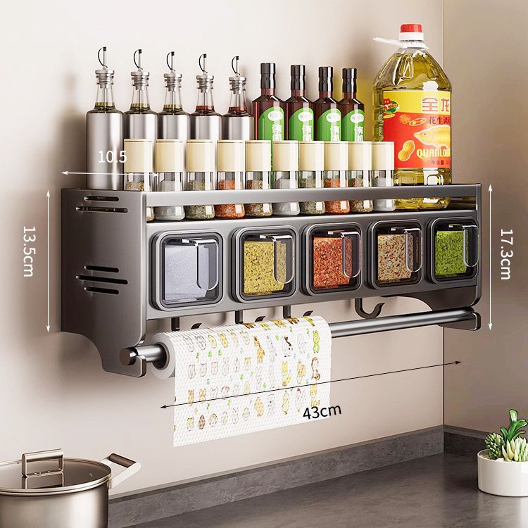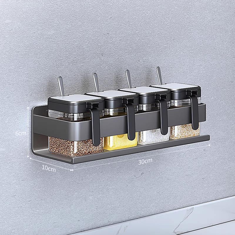 주방 조미료 상자 보관 랙 천공되지 않은 벽걸이 다기능 양념 항아리 병 조미료 조합 세트 보관 랙