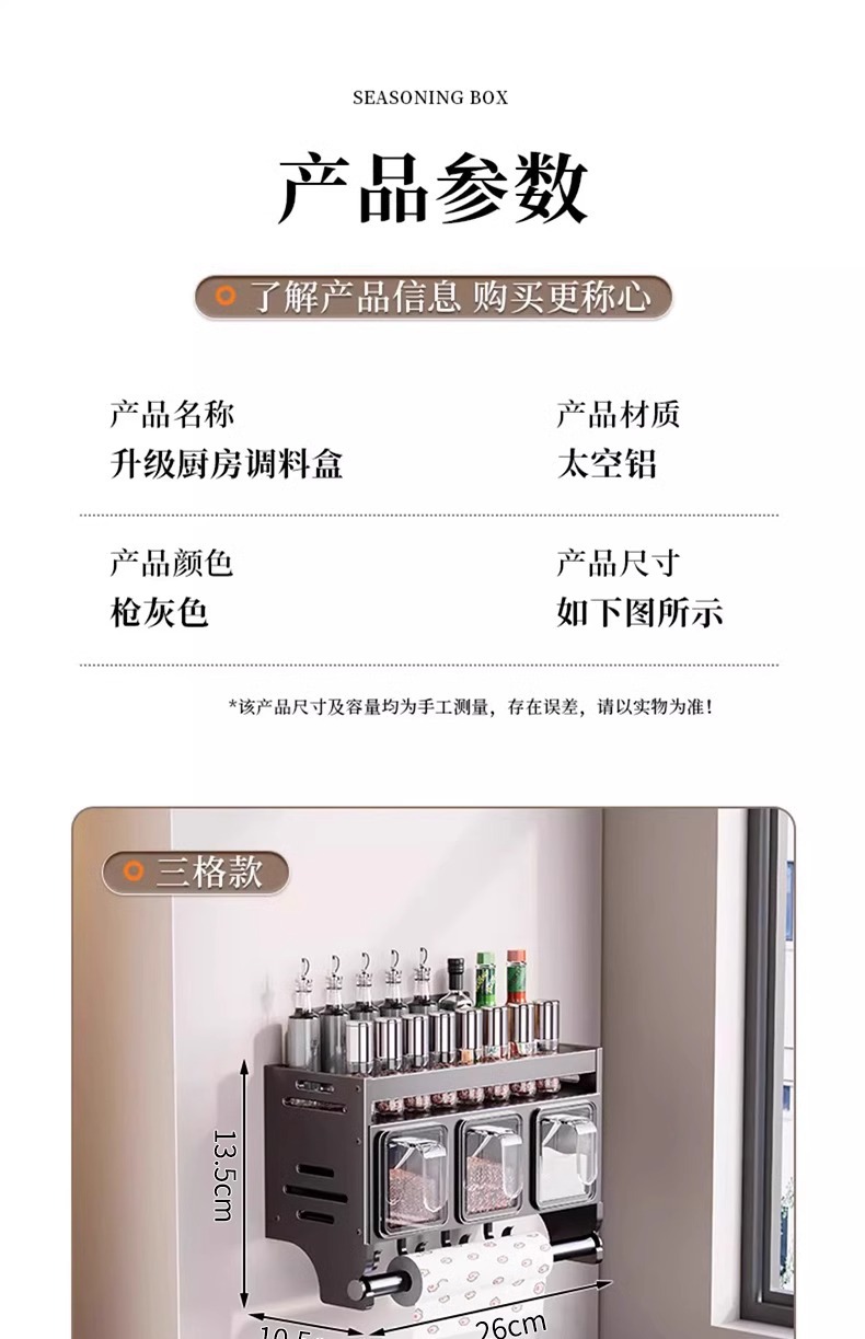 • 건애쉬 · 수건걸이가 포함된 완전 밀폐형 3칸 [무료 스푼 + 방수 라벨].