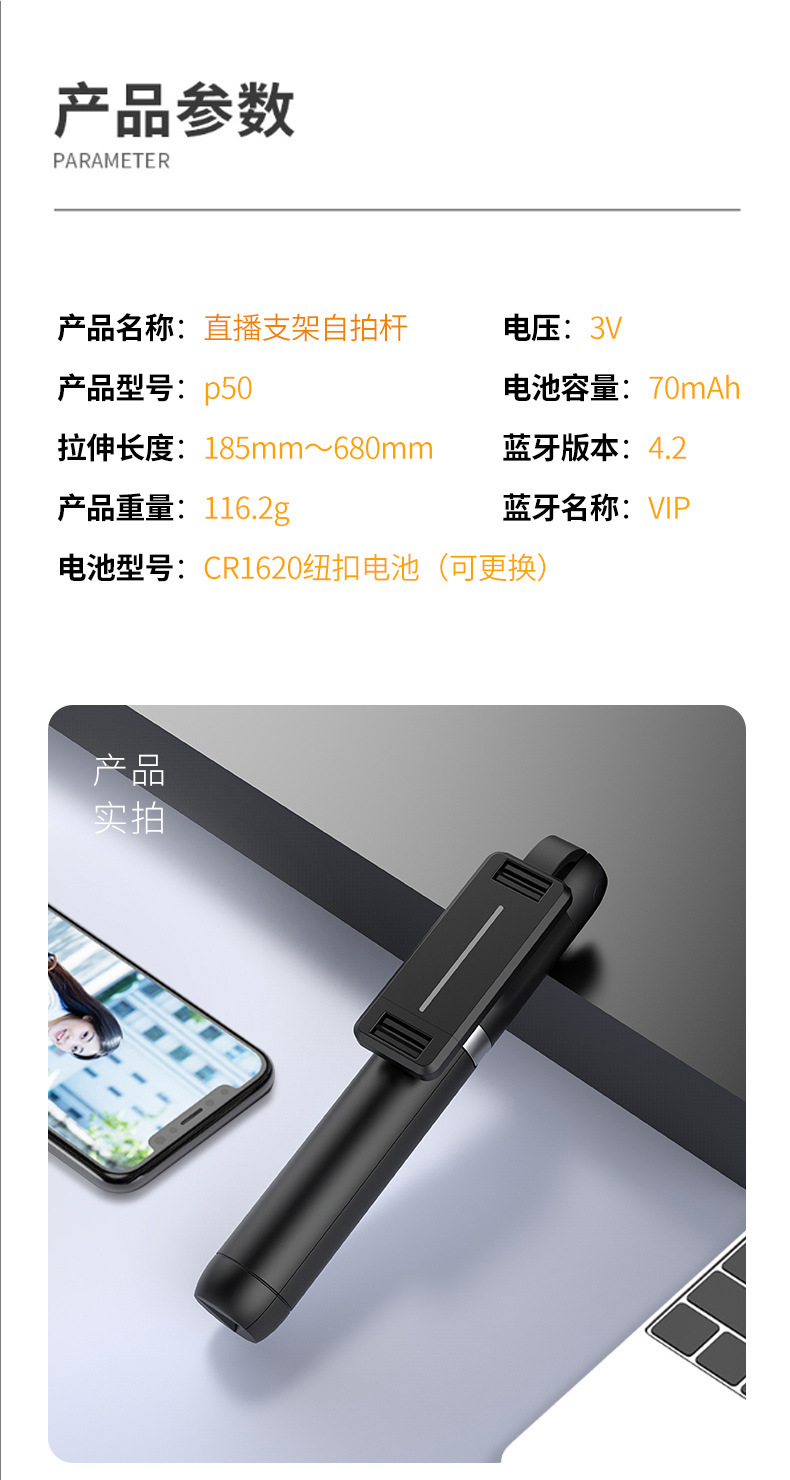 P30 블루투스 삼각대 빛 새로운 셀프 타이머 아티팩트 라이브 브래킷 텔레스코픽 통합 P50 휴대 전화 셀프 타이머스토어 가기