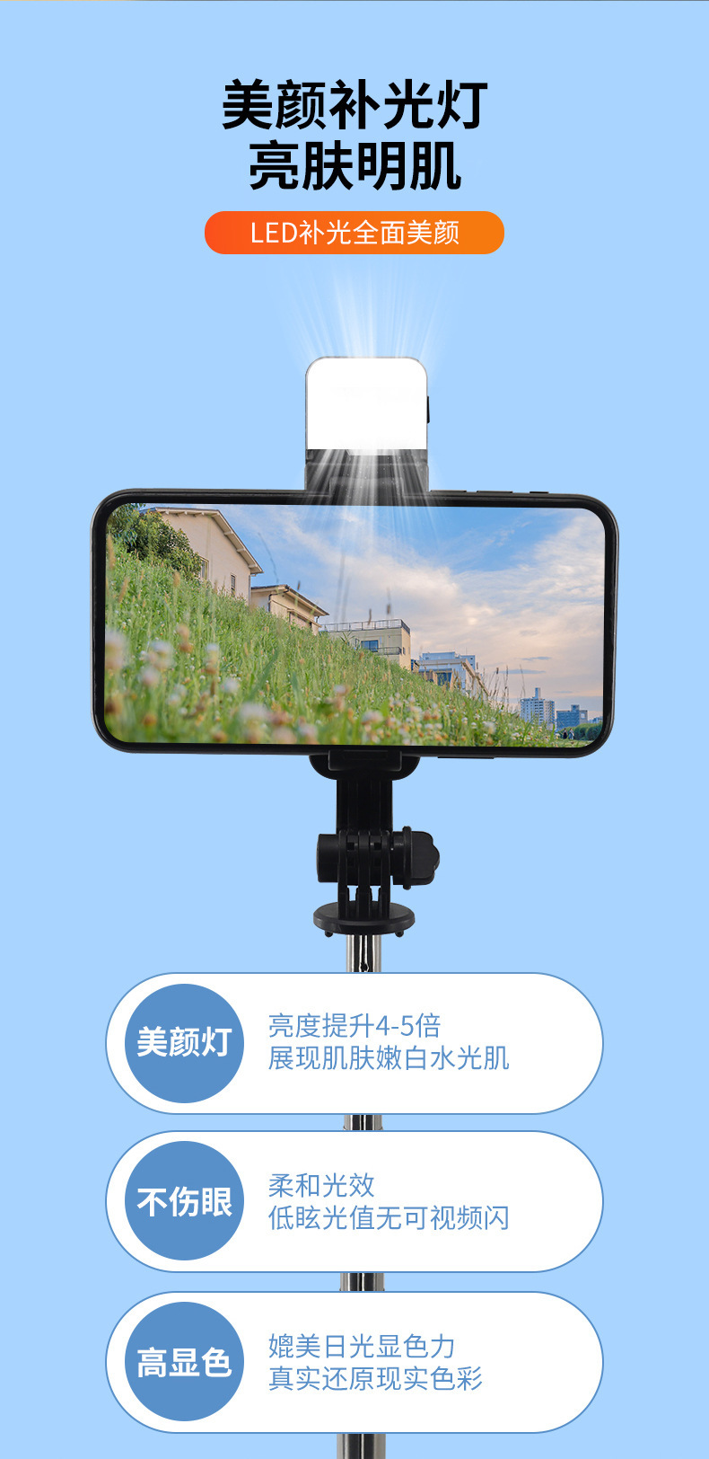 휴대폰 블루투스 카메라 셀카봉 확장형 보조광 미니 핸드헬드 틱톡 라이브 방송 일체형 데스크탑 삼각대