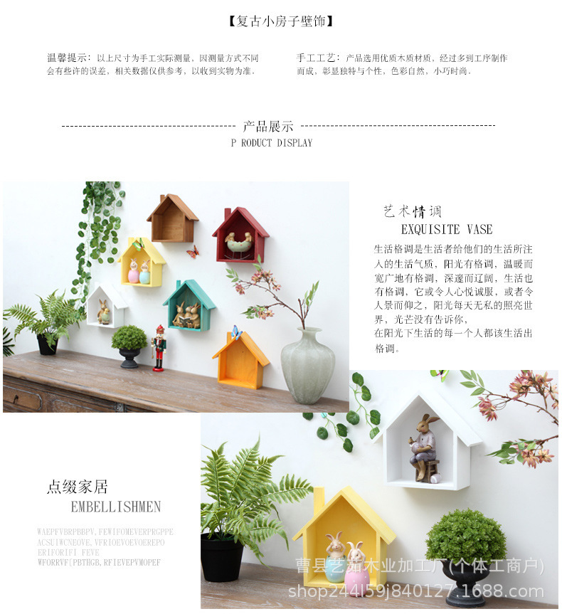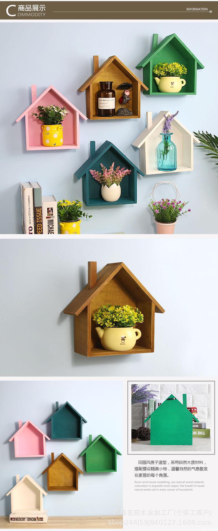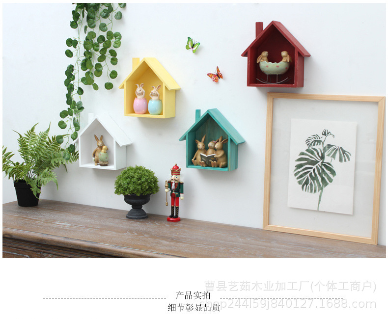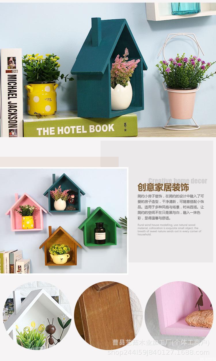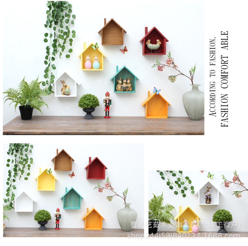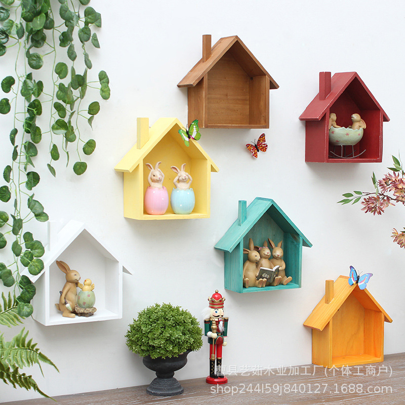 나무 색상 작은 집 저장 랙 어린이 방 창조적 인 책장 벽 장식 벽 랙 거실 보관 랙
