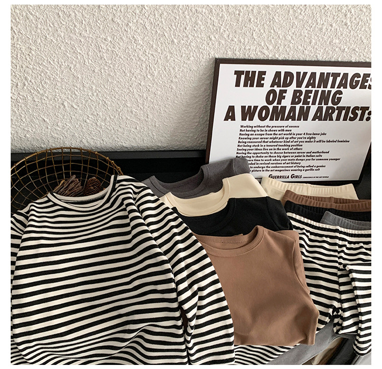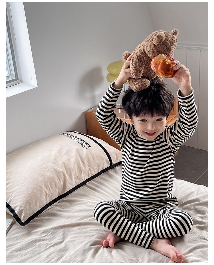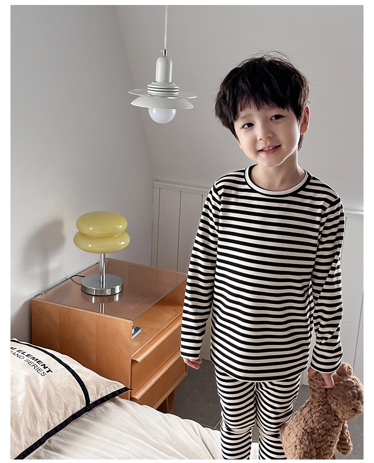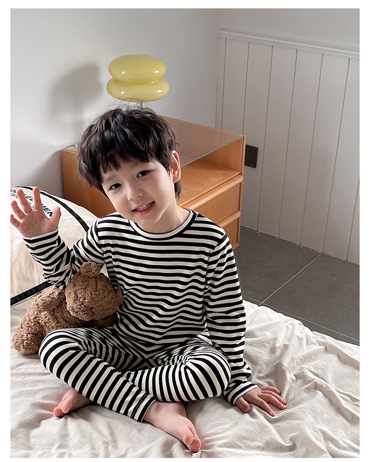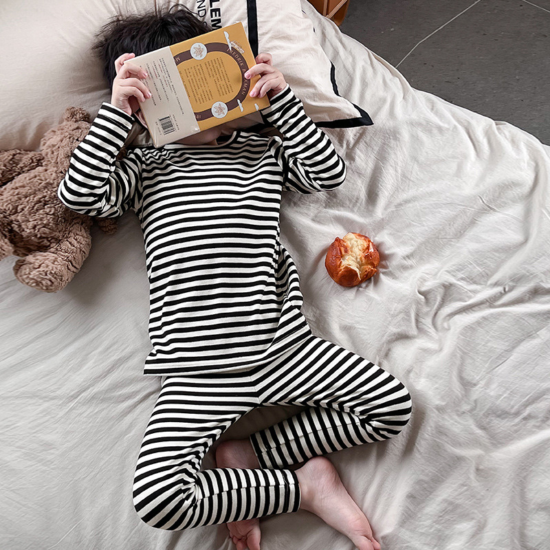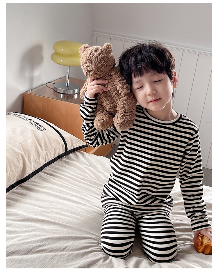 독일 벨벳 가을과 겨울 어린이 열 속옷 세트 소년 줄무늬 가을 옷 가을 바지 간단한 캐주얼 투피스 세트 패션스토어 가기
