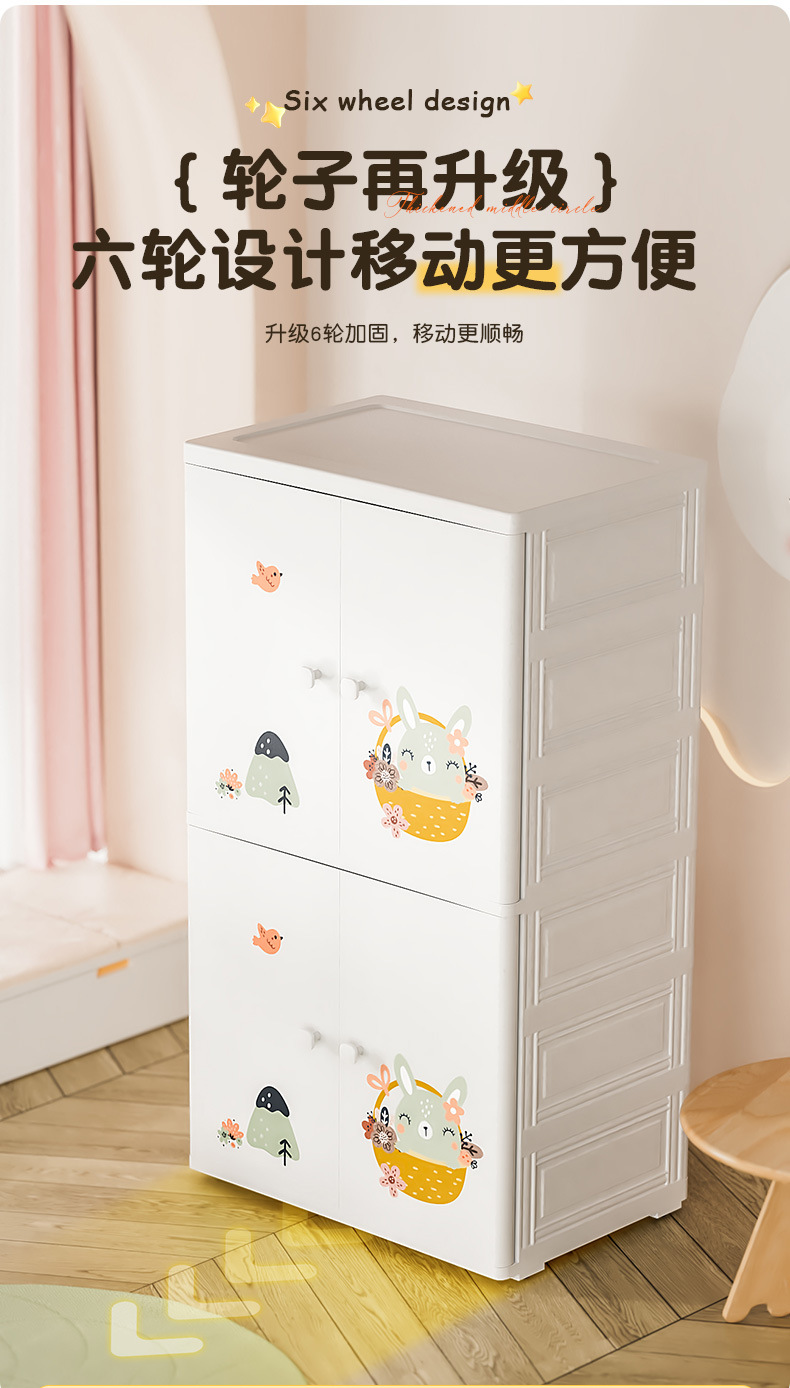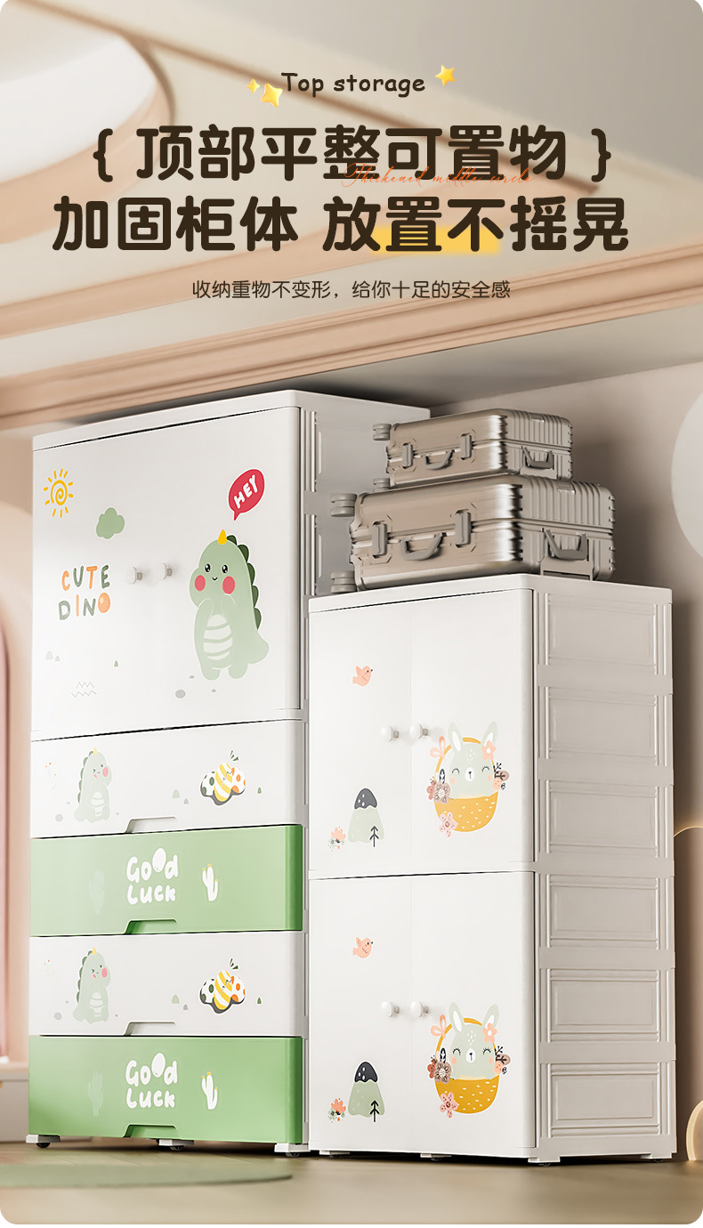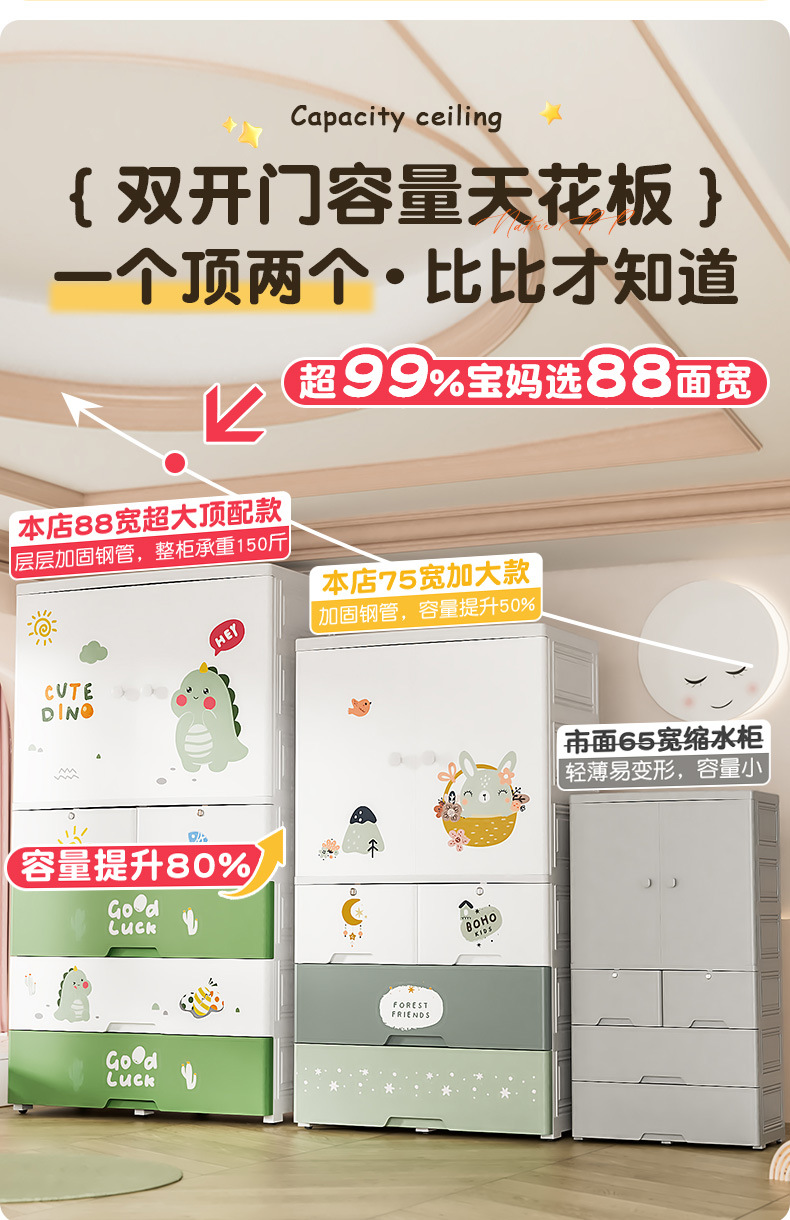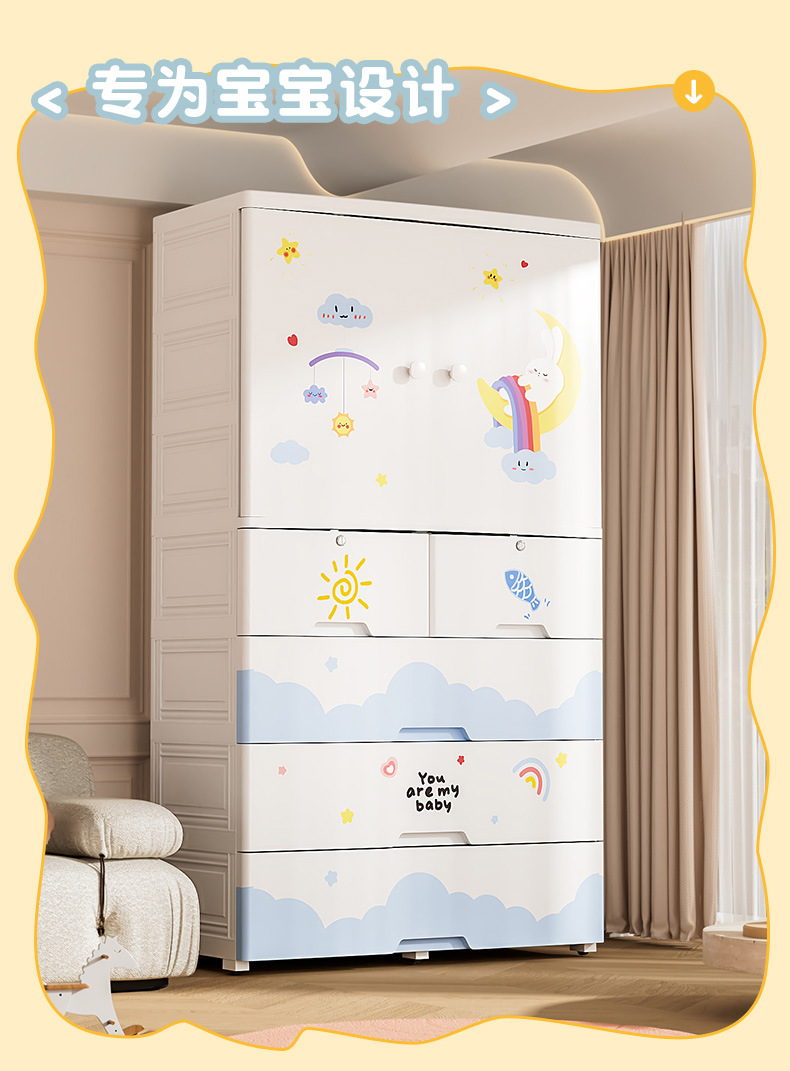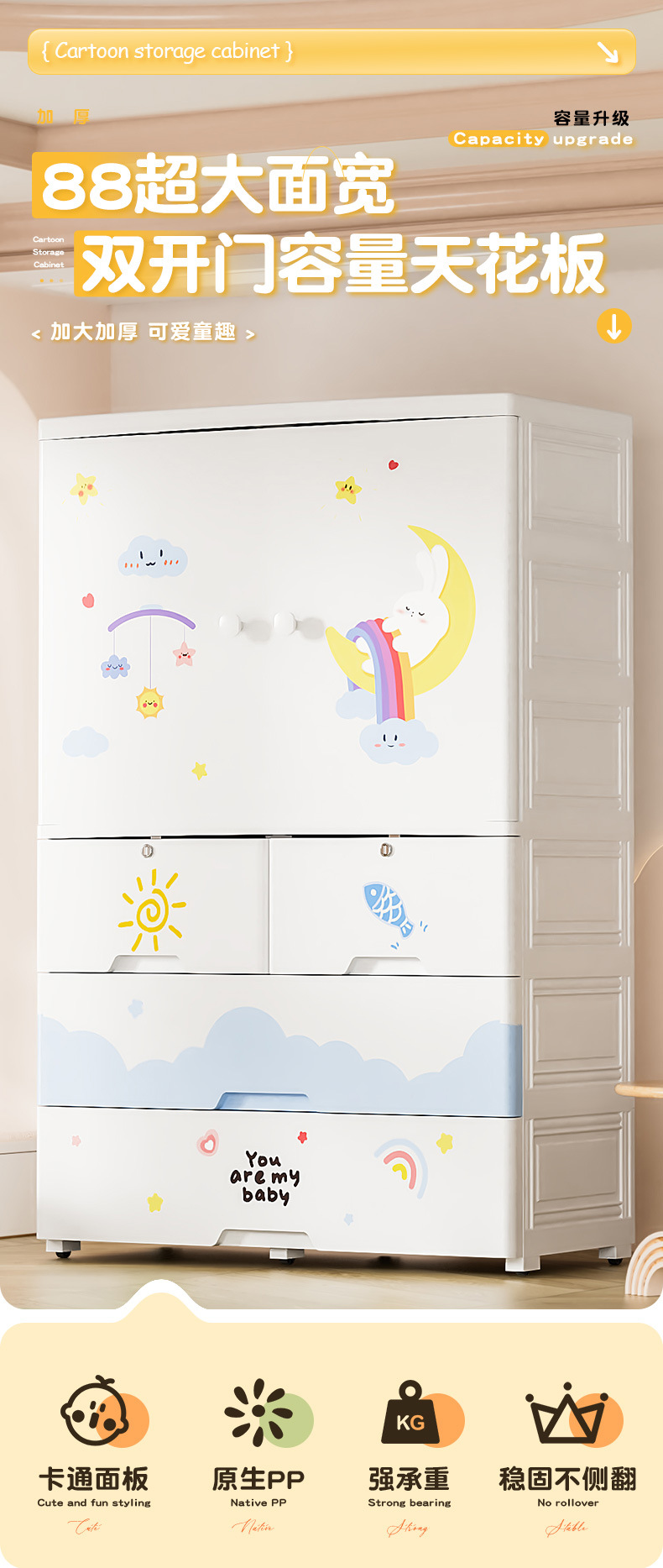 초대형 더블 도어 어린이 옷장 가정용 침실 플라스틱 만화 저장 캐비닛 다기능 서랍 유형 보관스토어 가기
