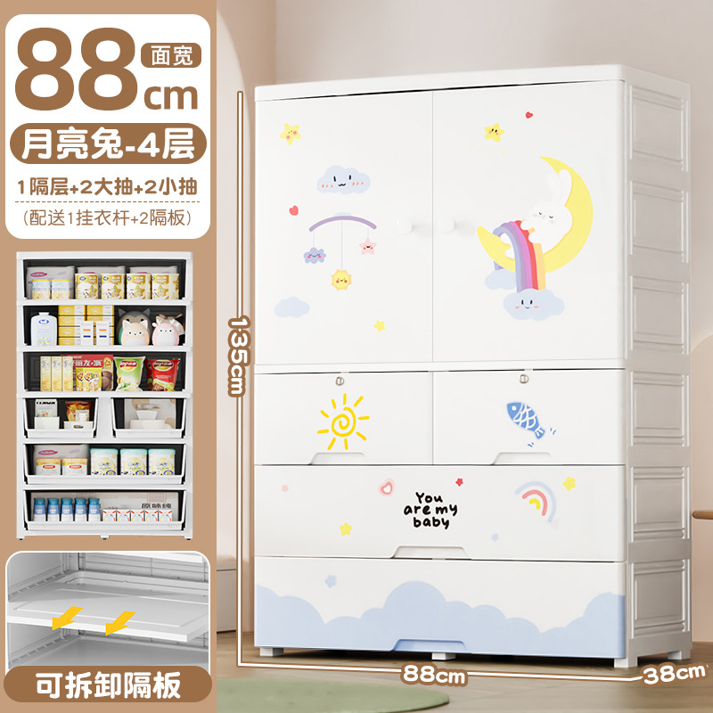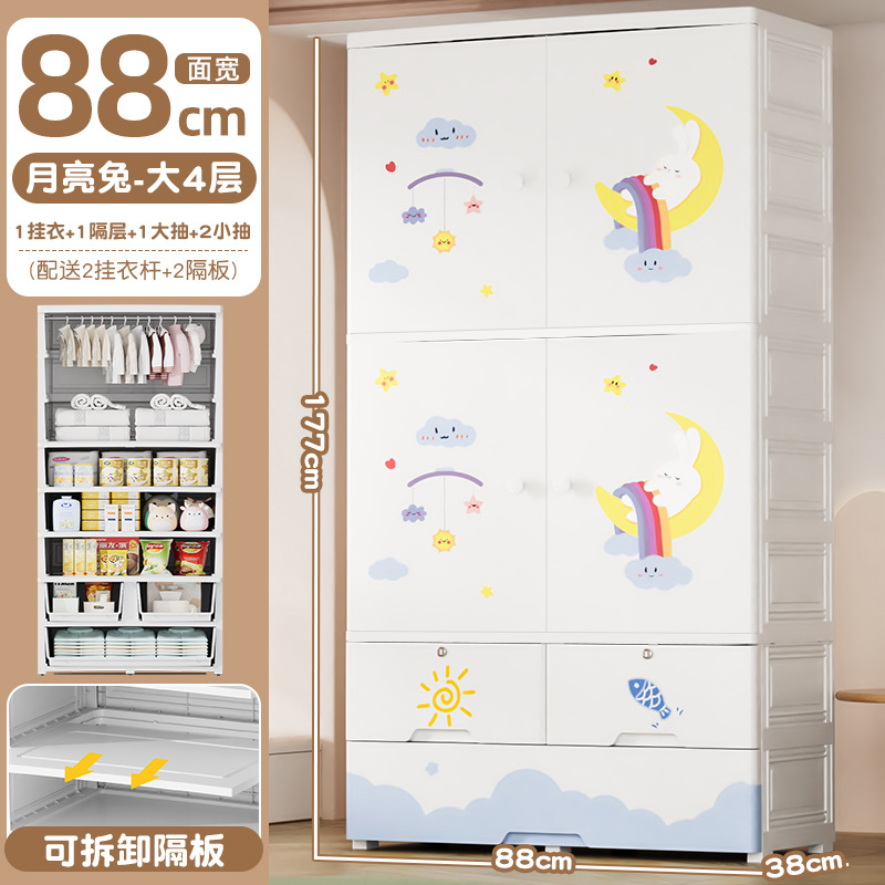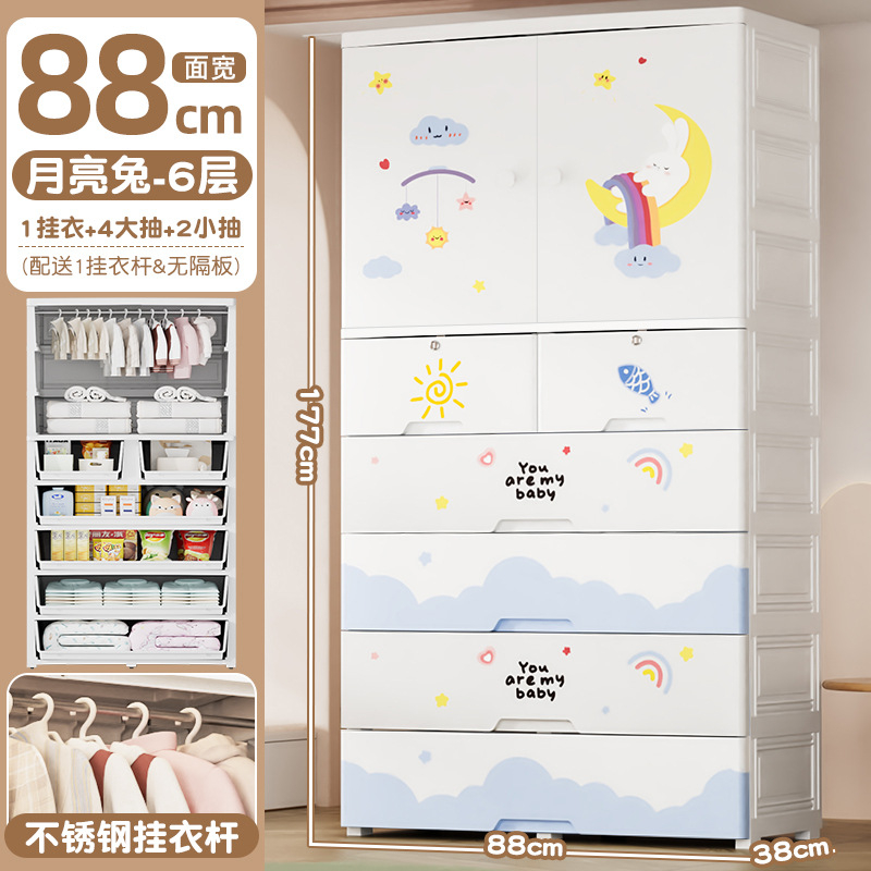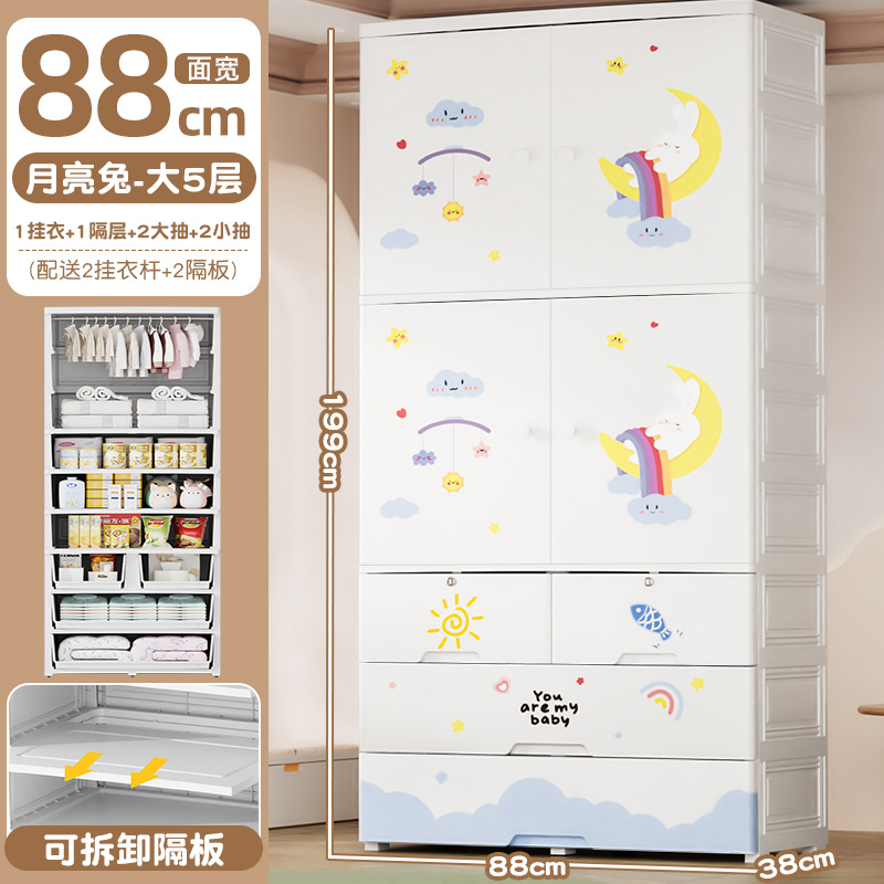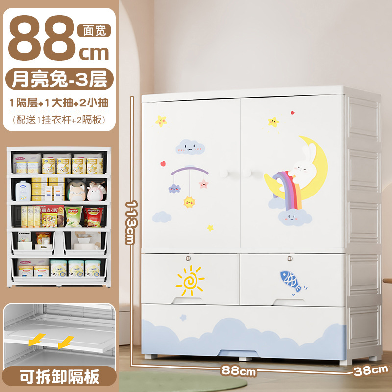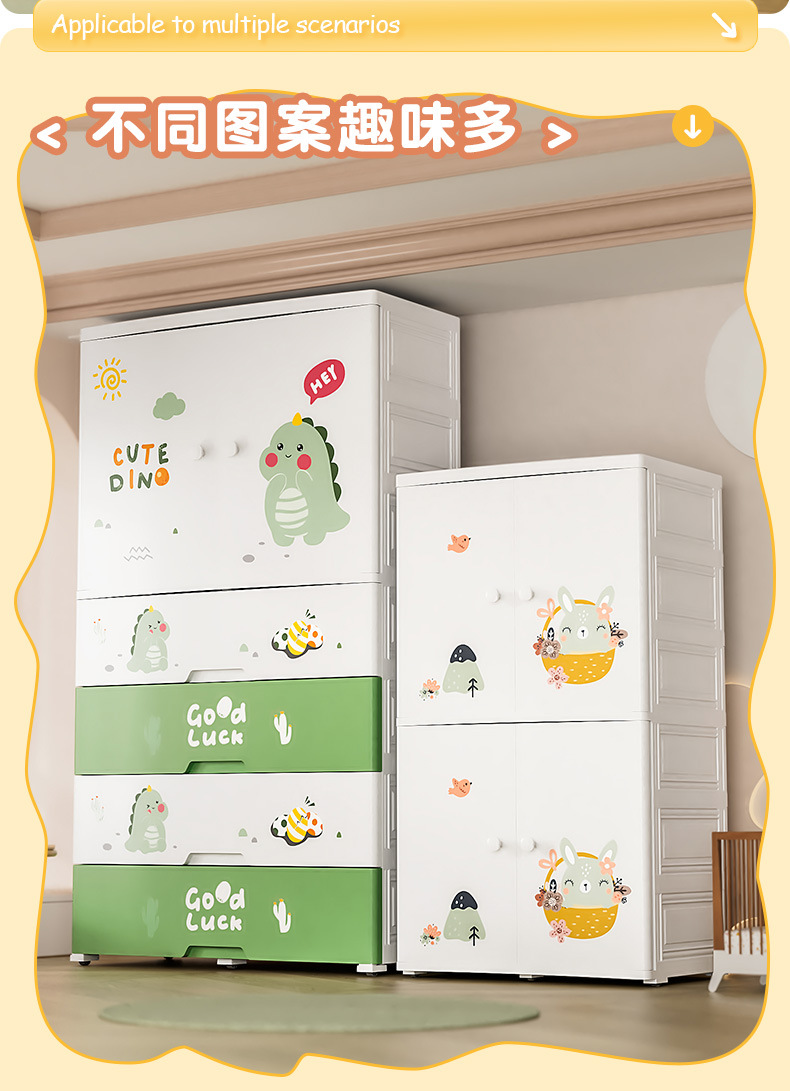 초대형 더블 도어 어린이 옷장 가정용 침실 플라스틱 만화 저장 캐비닛 다기능 서랍 유형 보관스토어 가기