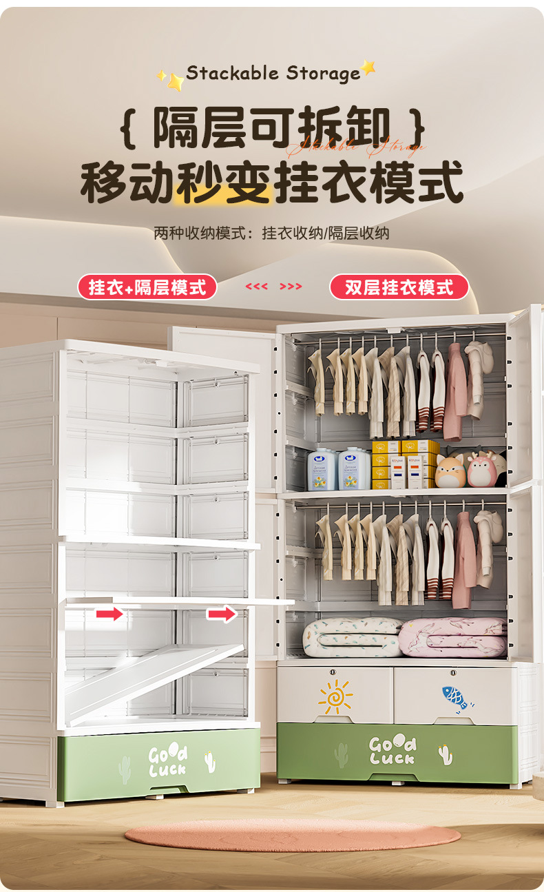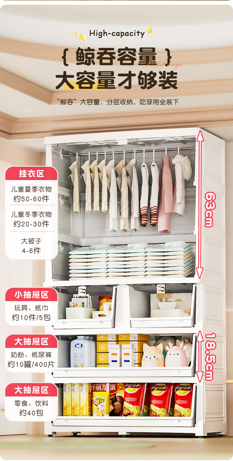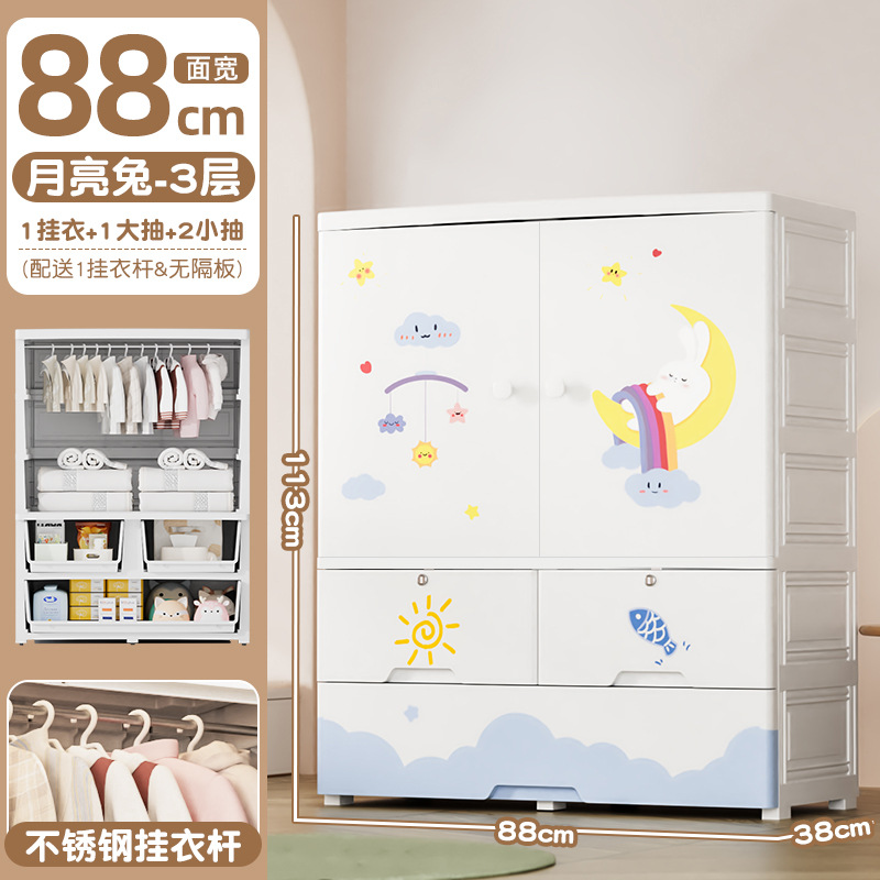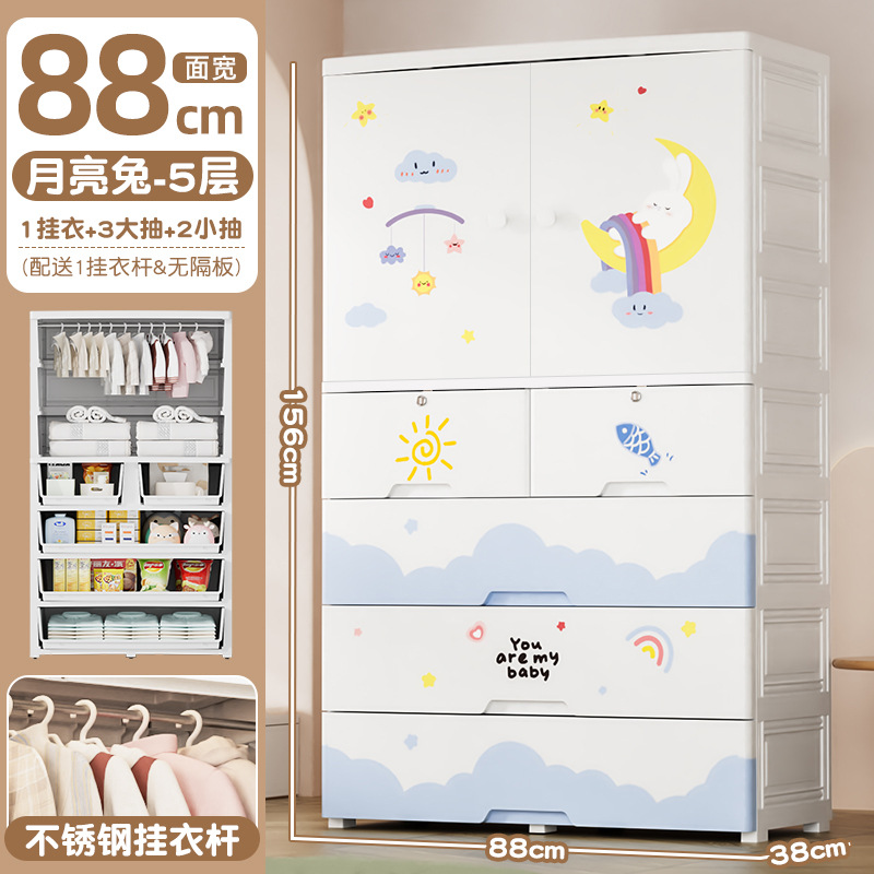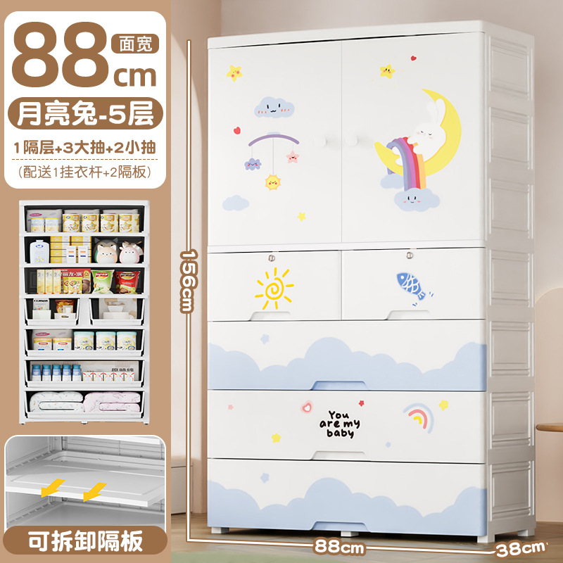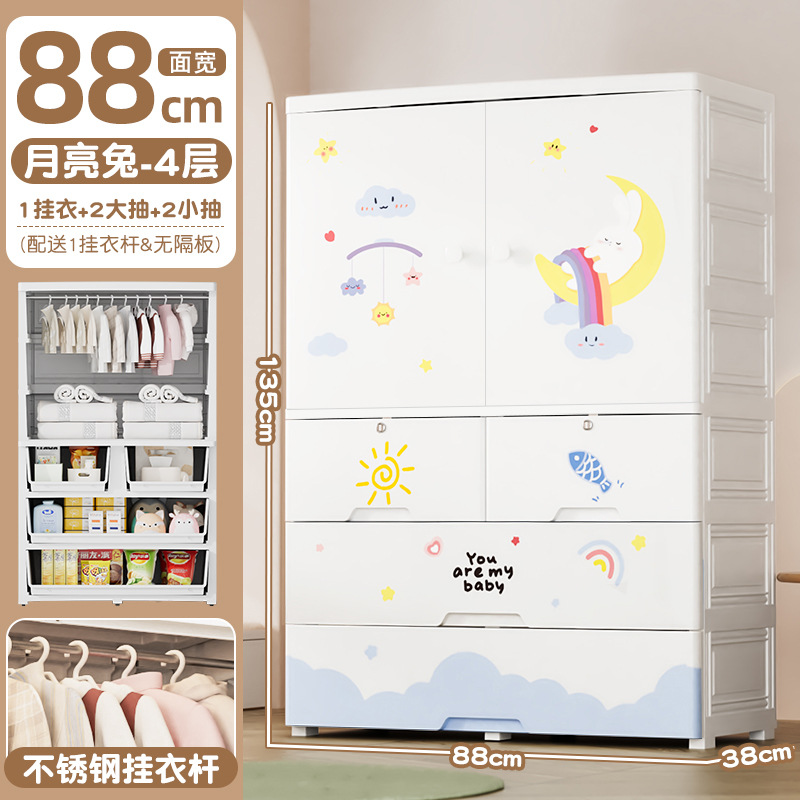 초대형 더블 도어 어린이 옷장 가정용 침실 플라스틱 만화 저장 캐비닛 다기능 서랍 유형 보관스토어 가기