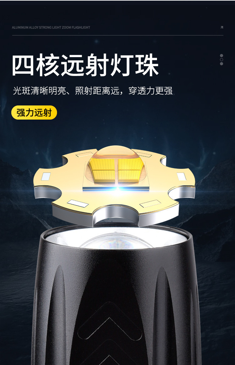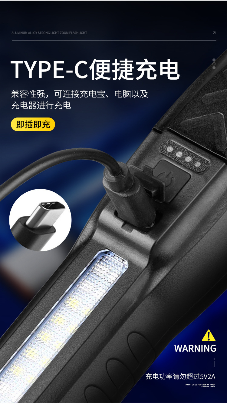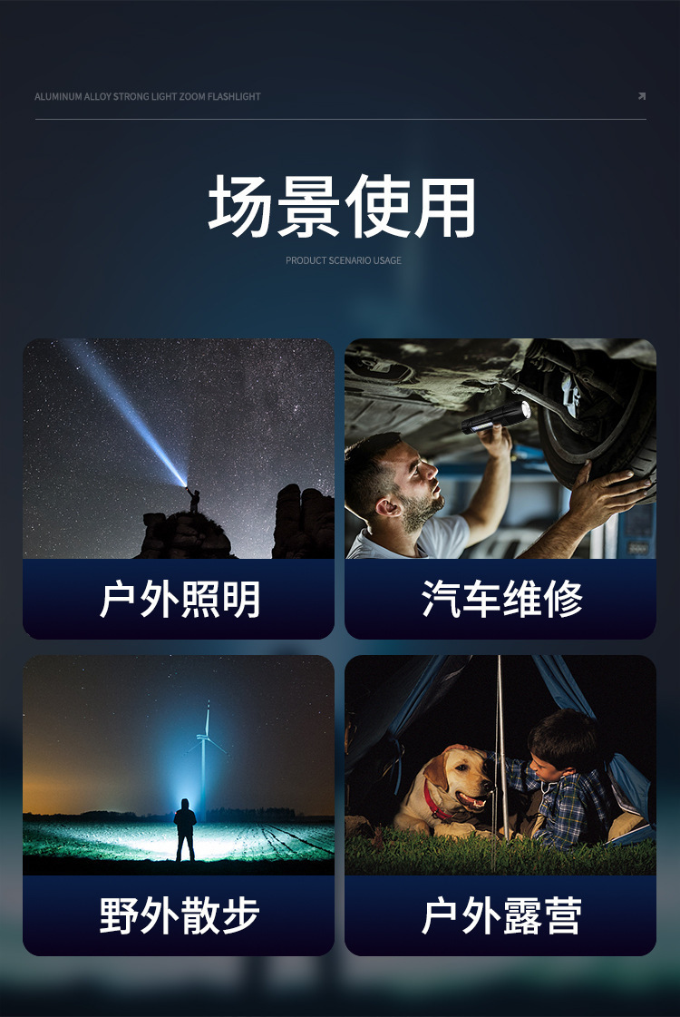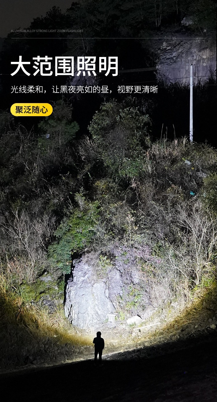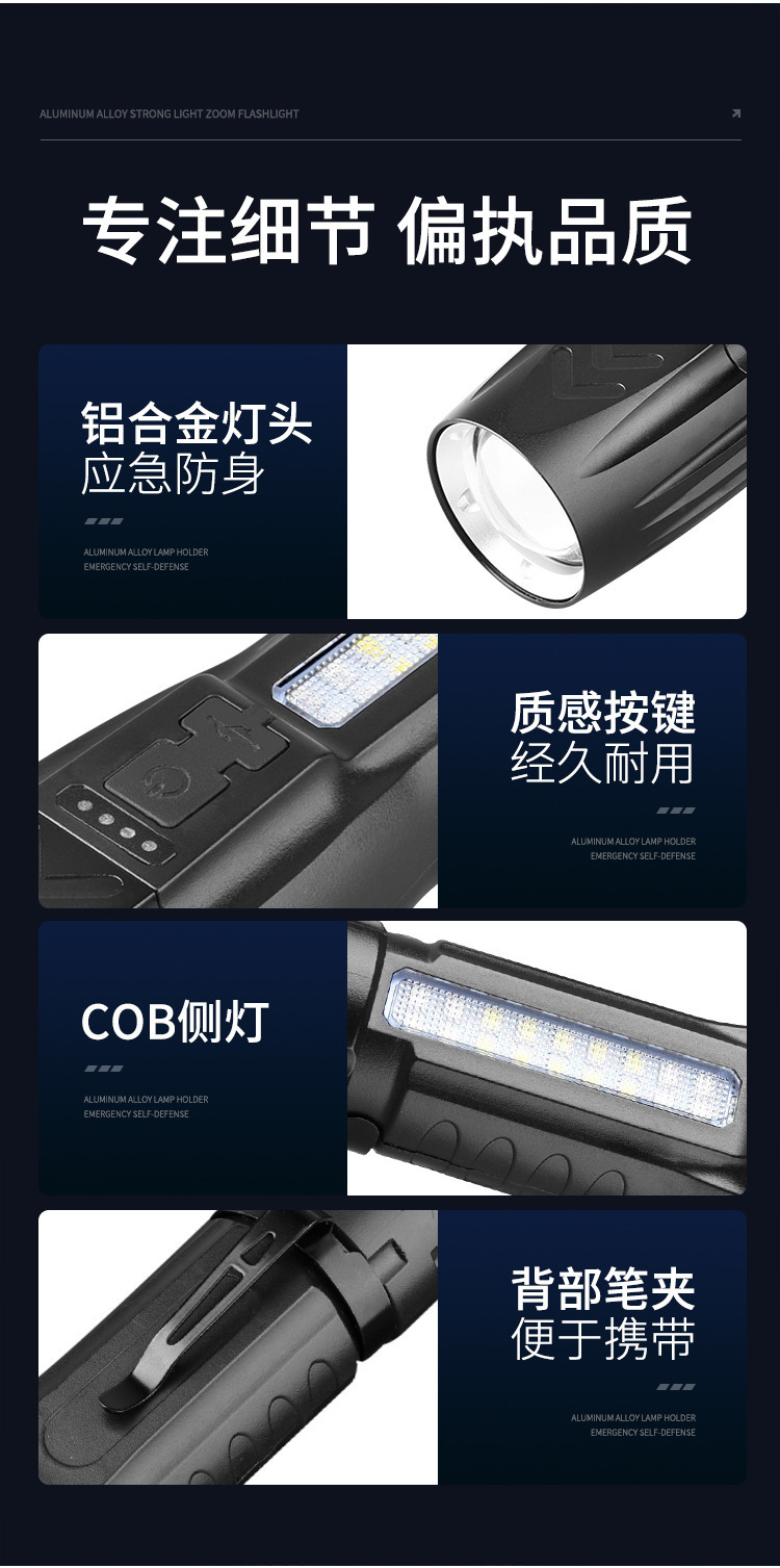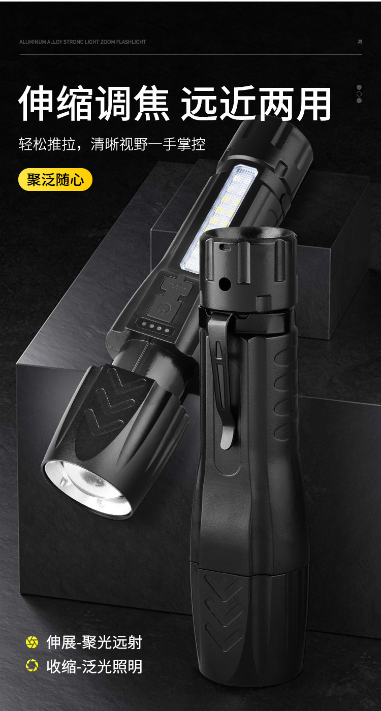 국경 알루미늄 합금 LED 손전등 긴 내구성 강한 가벼운 충전식 작업 야외 줌 장거리 손전등스토어 가기