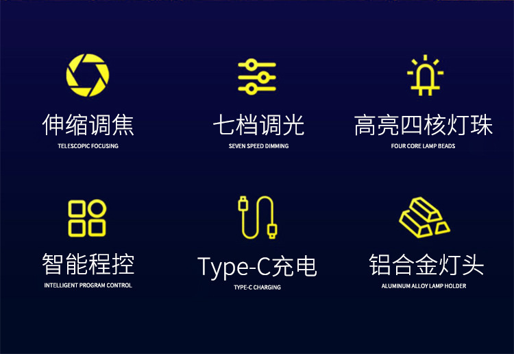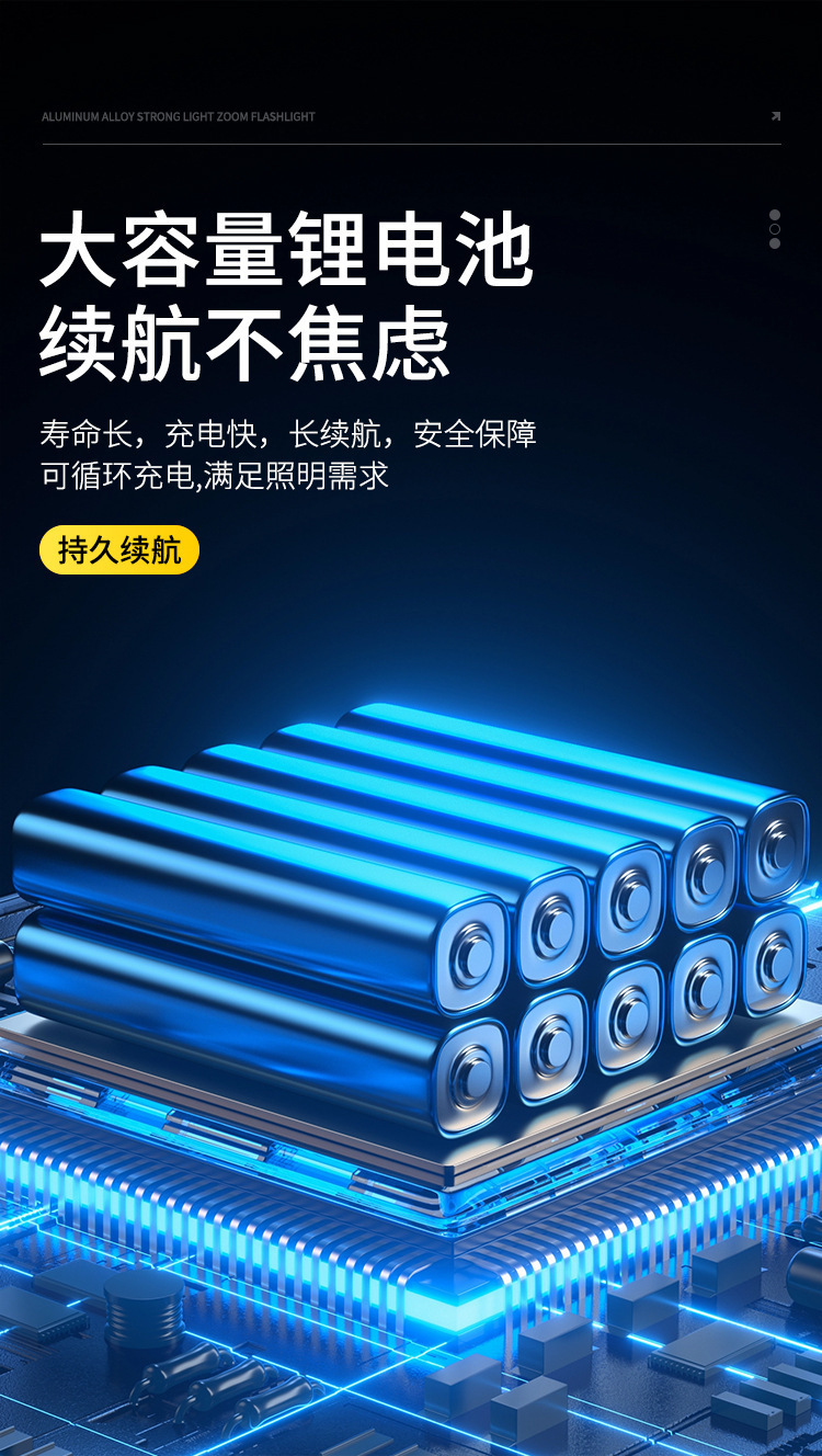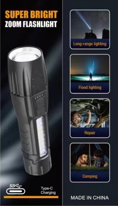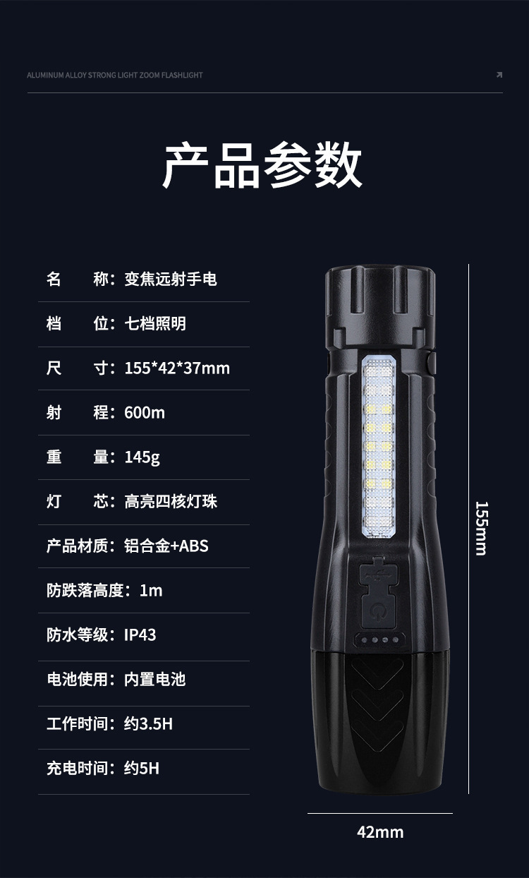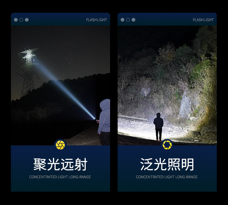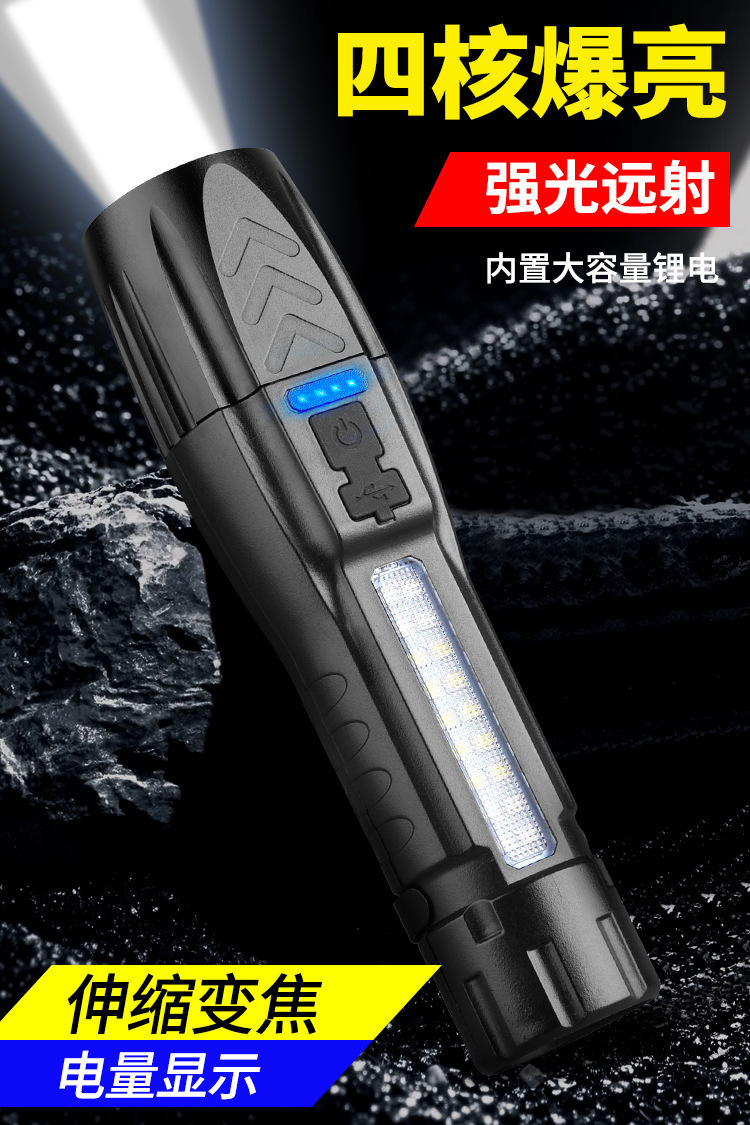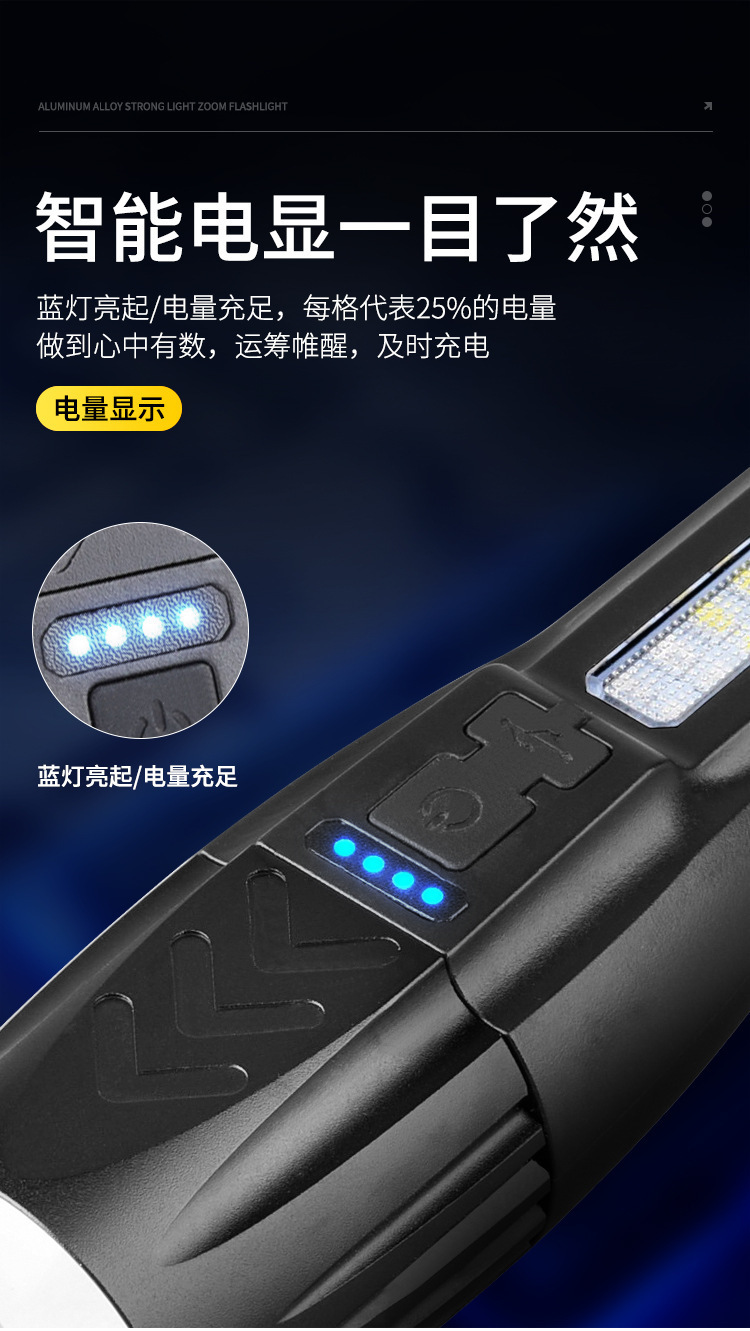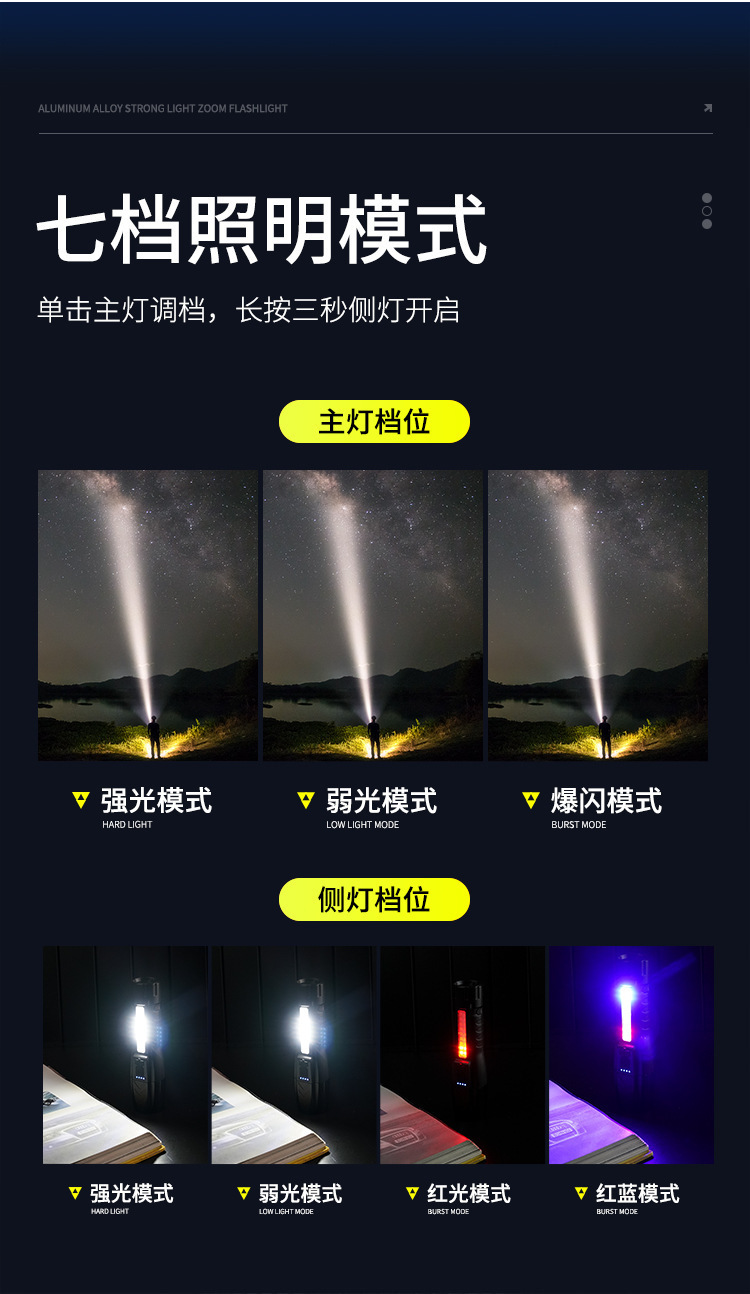 국경 알루미늄 합금 LED 손전등 긴 내구성 강한 가벼운 충전식 작업 야외 줌 장거리 손전등스토어 가기