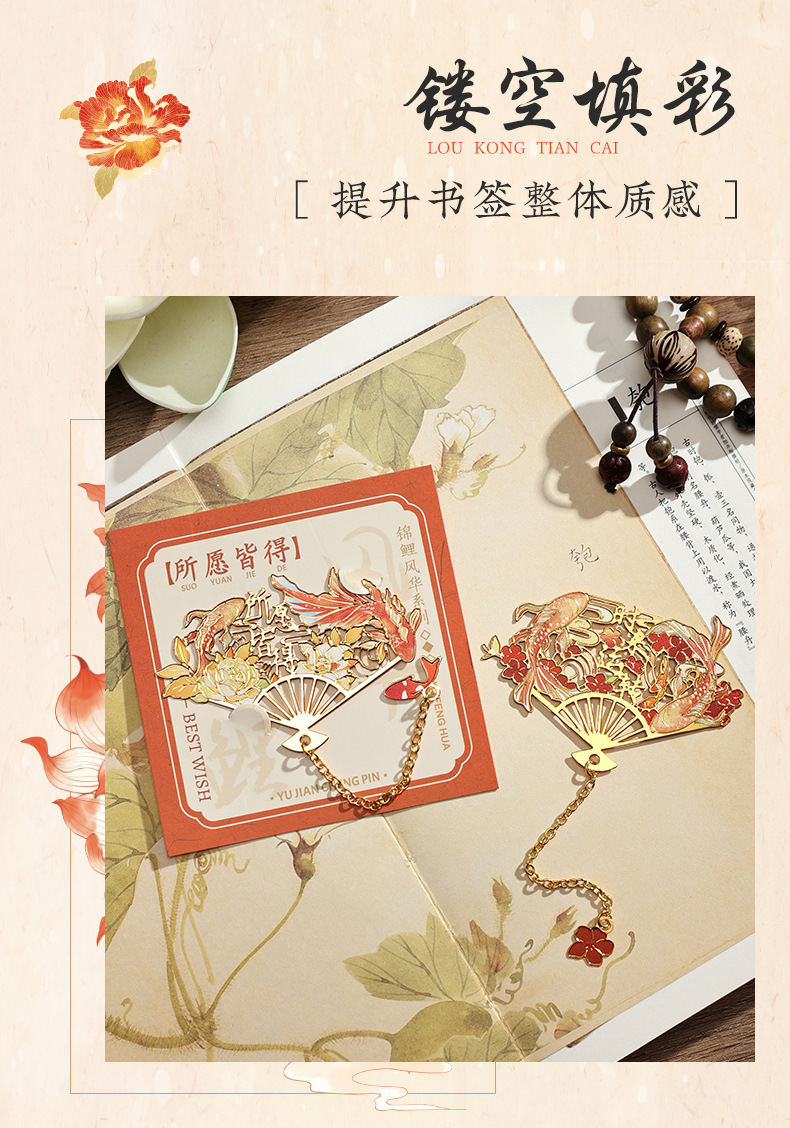 팬 모양의 중공 북마크 국립 조수 골동품 높은 색 가치 북마크 황궁 문화 기념품 고급 절묘한 북마크스토어 가기