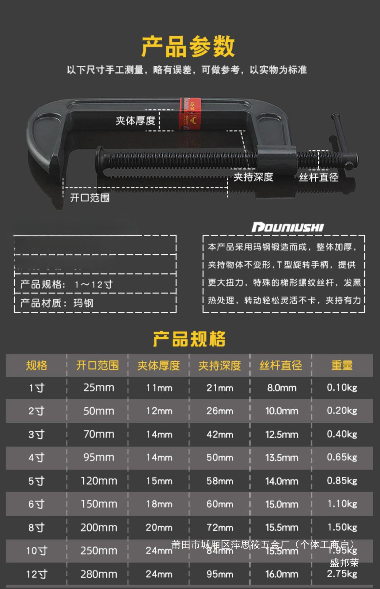 Shengbang Rongzi 클램프 클램프 형 헤비 듀티 픽서 두꺼운 클램프 목공 클램프 클램프스토어 가기