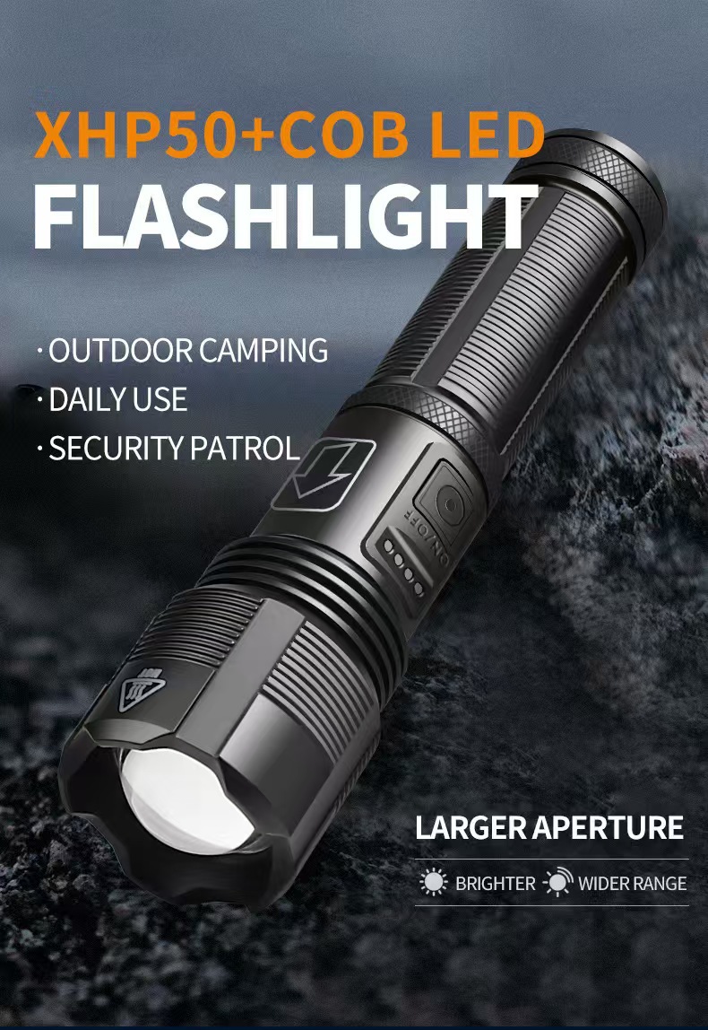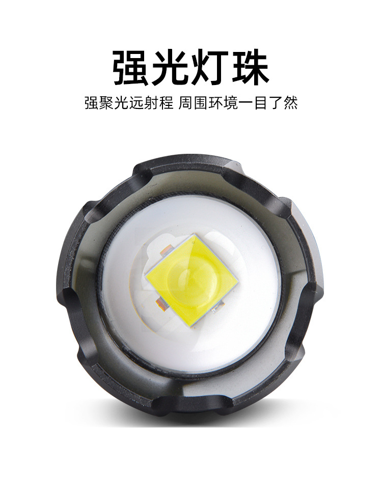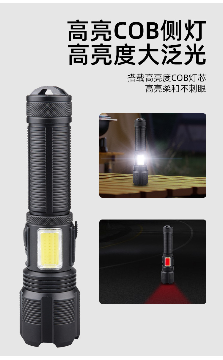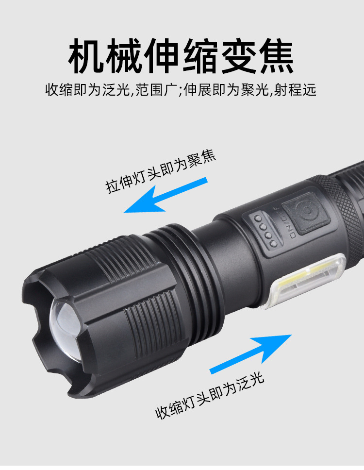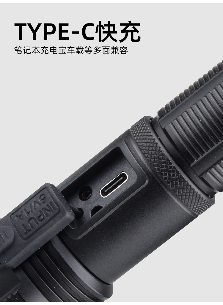 강력한 손전등 TYPE-C 충전 긴 배터리 수명 야외 줌 장거리 다기능 알루미늄 합금 조명 램프