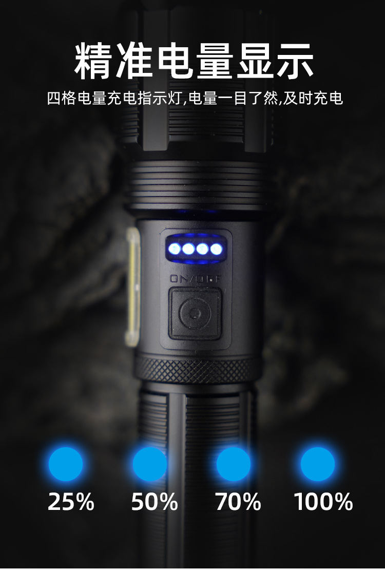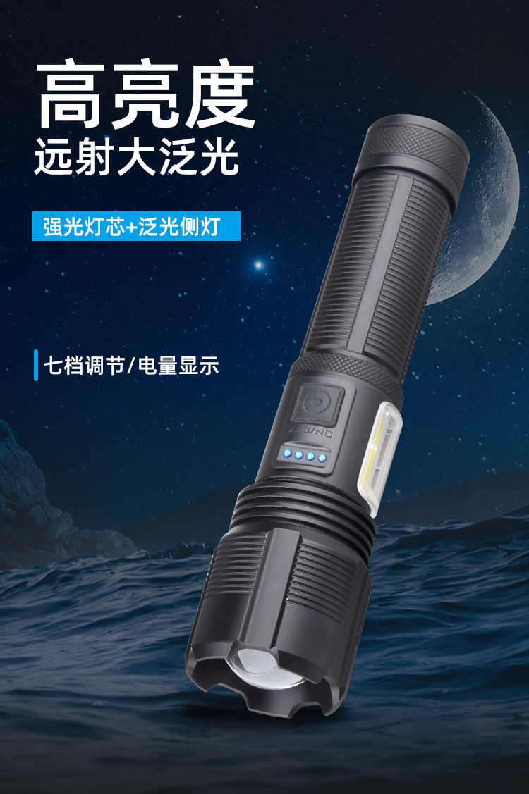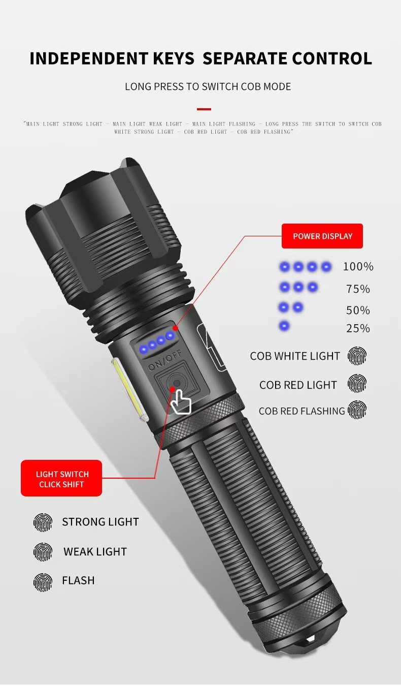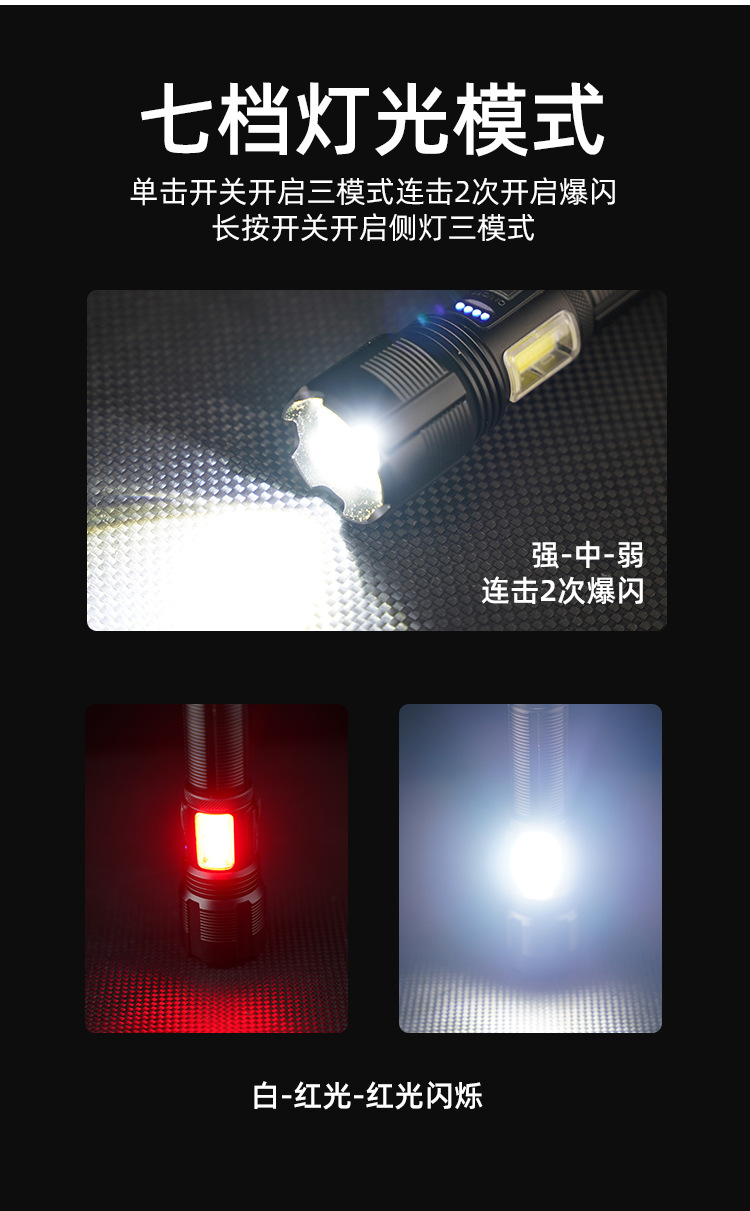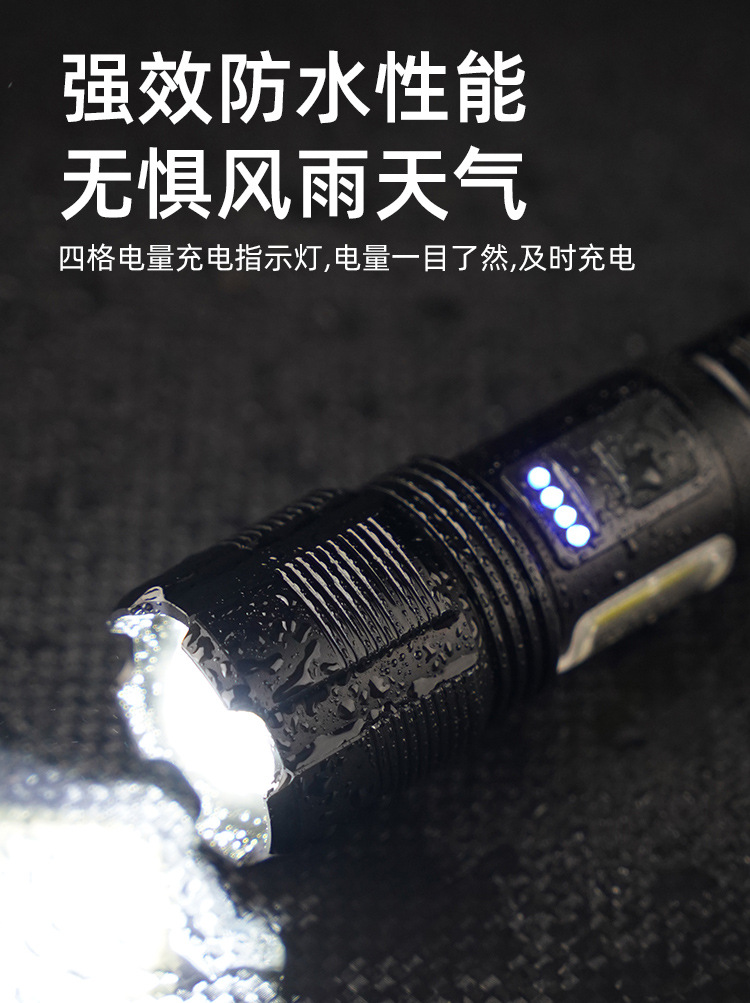 강력한 손전등 TYPE-C 충전 긴 배터리 수명 야외 줌 장거리 다기능 알루미늄 합금 조명 램프