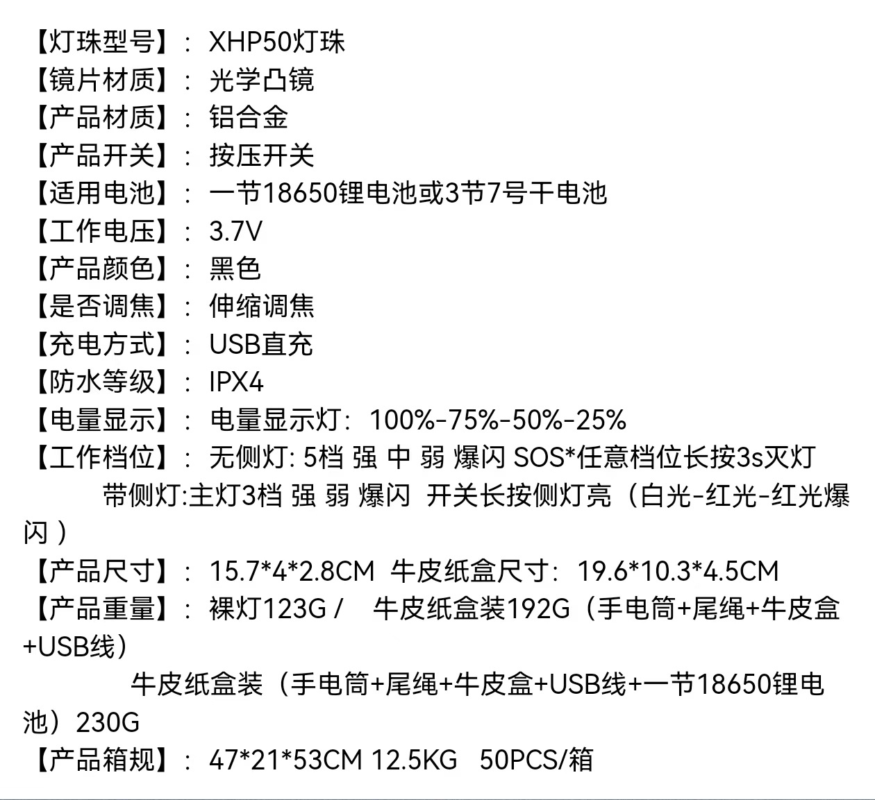 • 측면 조명이 있는 P50 손전등 [배터리 포함] 소가죽 선물 상자