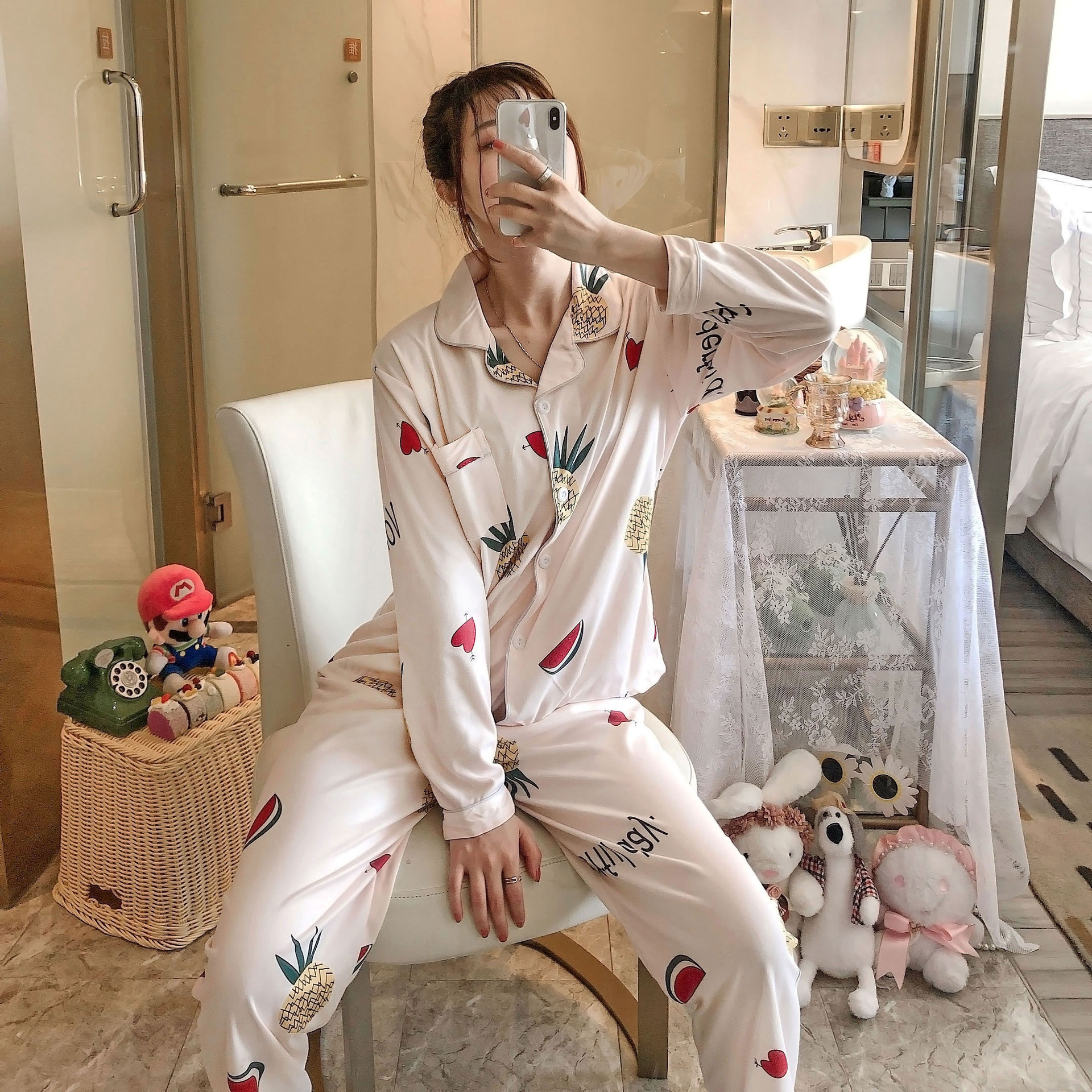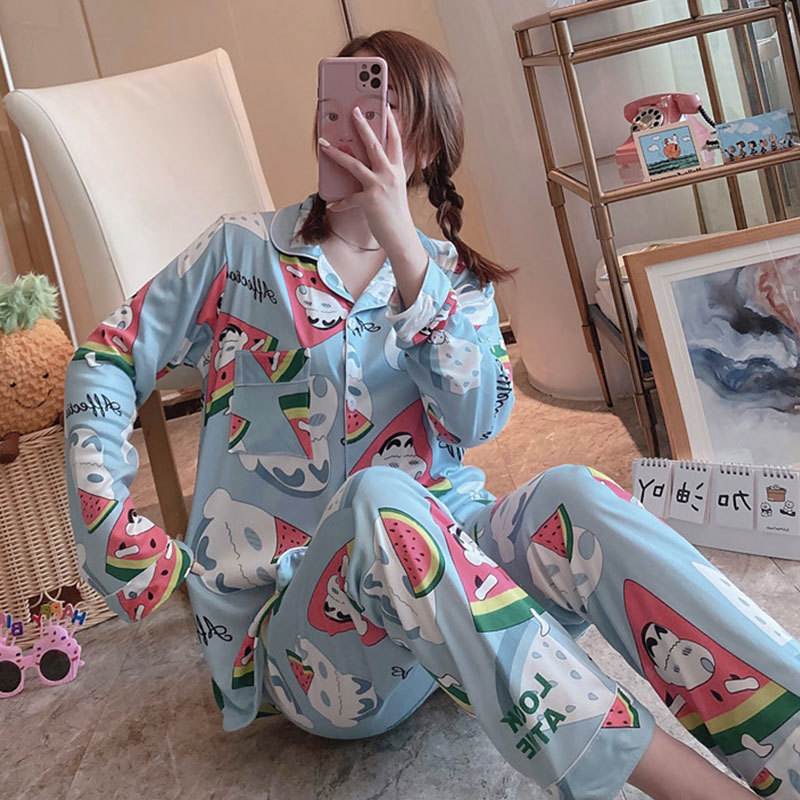 공장 도매 카디건 잠옷 여성 봄과 가을 레저 스타일 긴 소매 달 옷 숙녀 홈 의류 세트스토어 가기