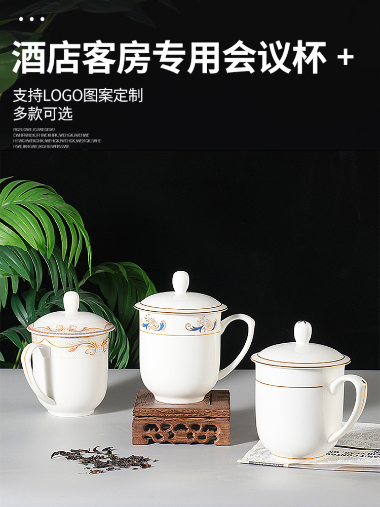 호텔 호텔 워터 컵 오피스 컨퍼런스 컵 뚜껑 프놈펜 세라믹 티 컵 선물 컵 세트 레터링 로고