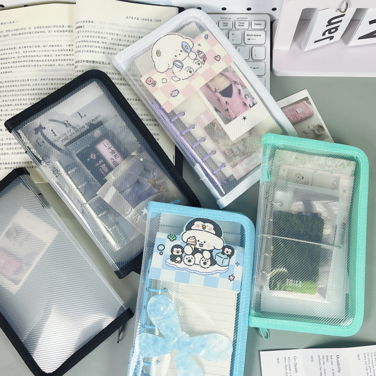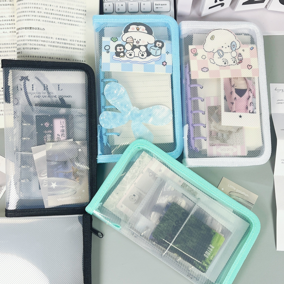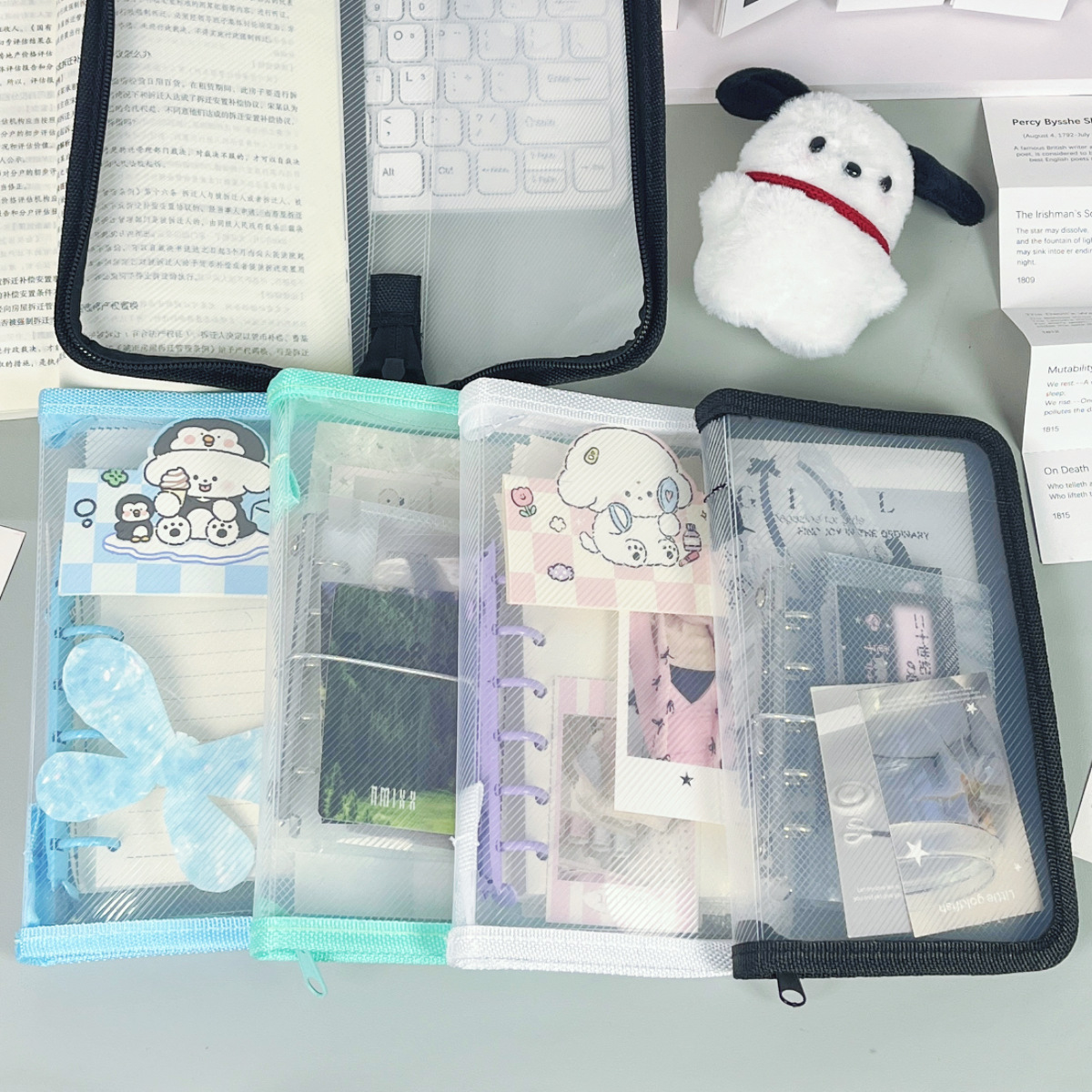 크로스보더 심플 오리지널 A6 네 가지 색상 대용량 수납 가방 스티커 핸드북 소재 필통 수납 지퍼 가방스토어 가기
