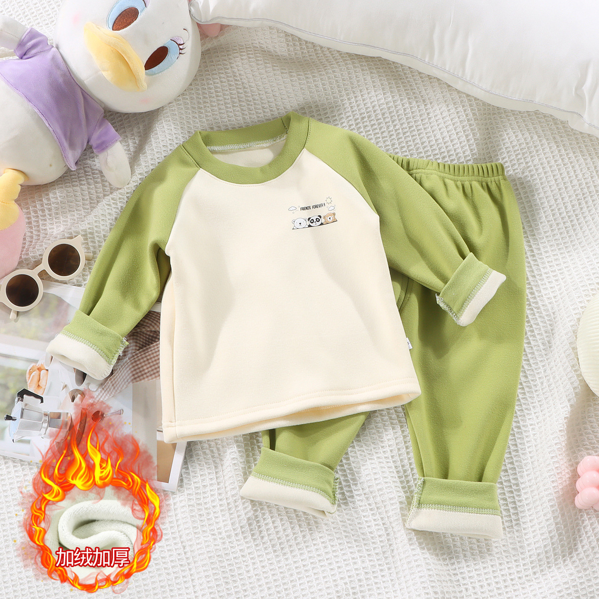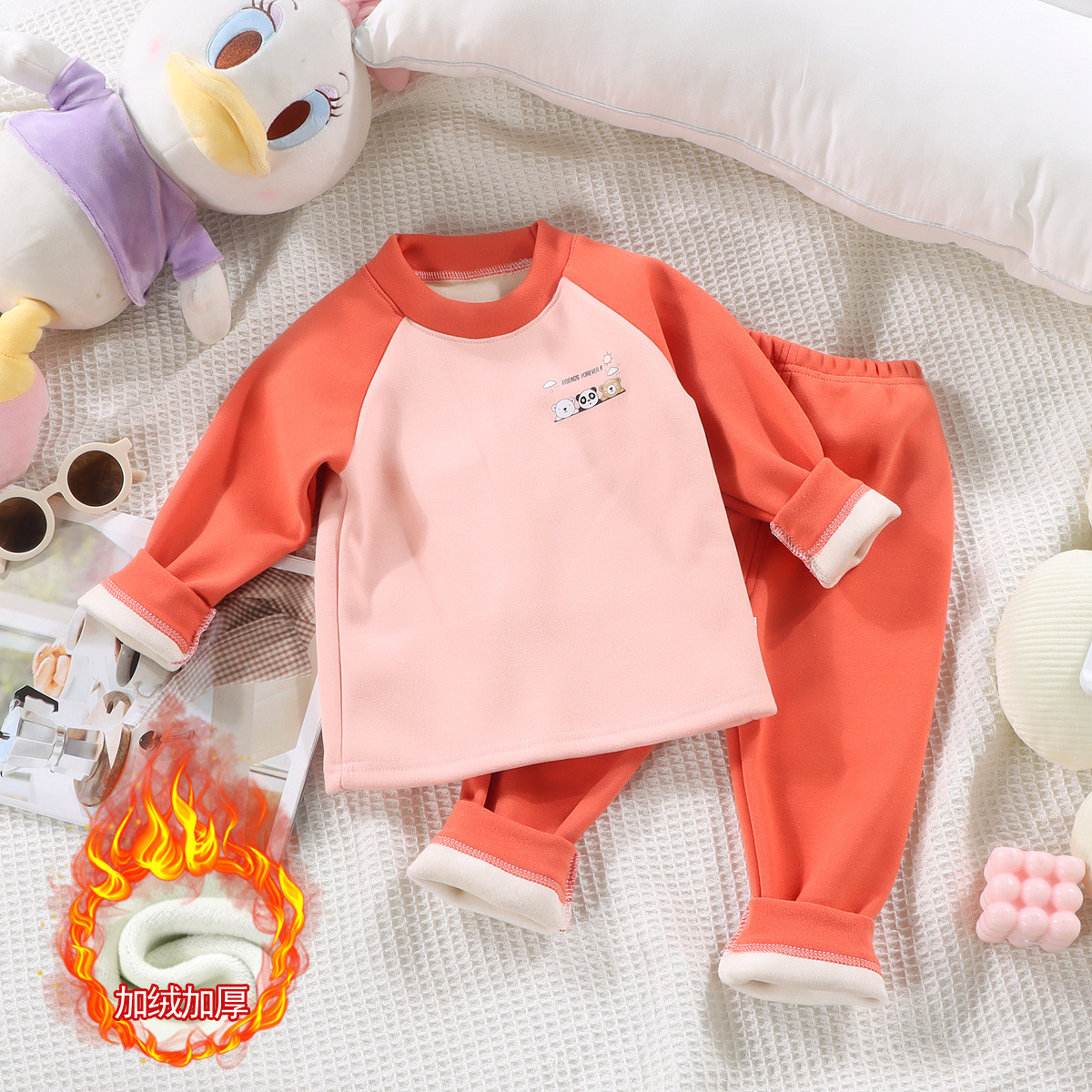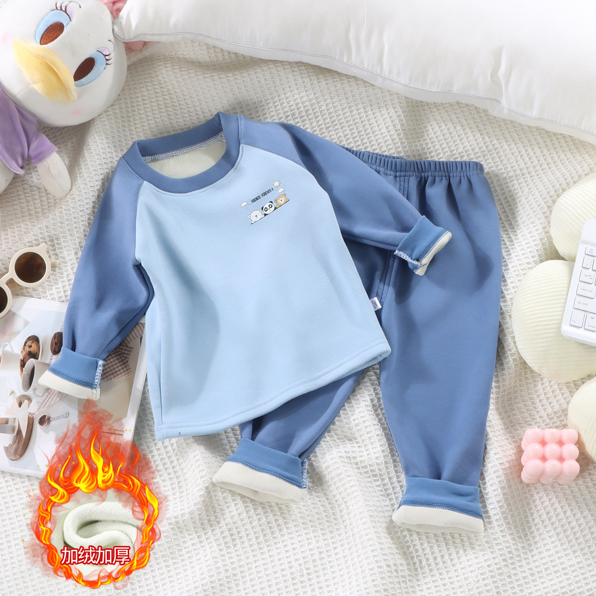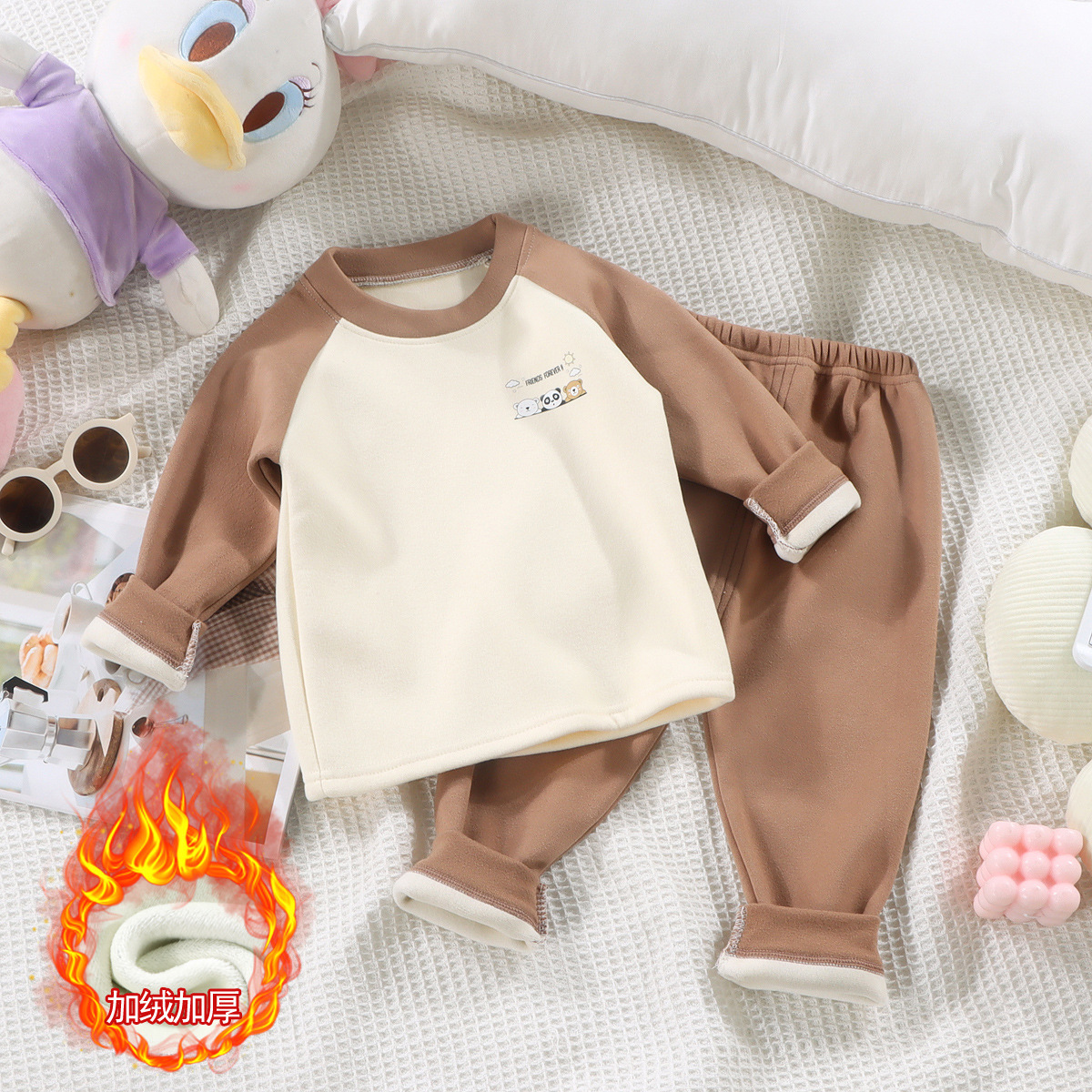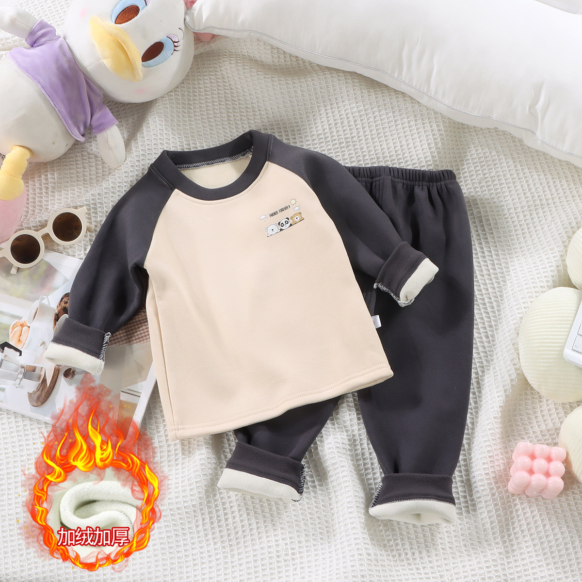 어린이 기모 가을 의류 바지 따뜻한 패딩 세트 소년 소녀 아기 가을과 겨울 독일 벨벳 기본 속옷 도매스토어 가기