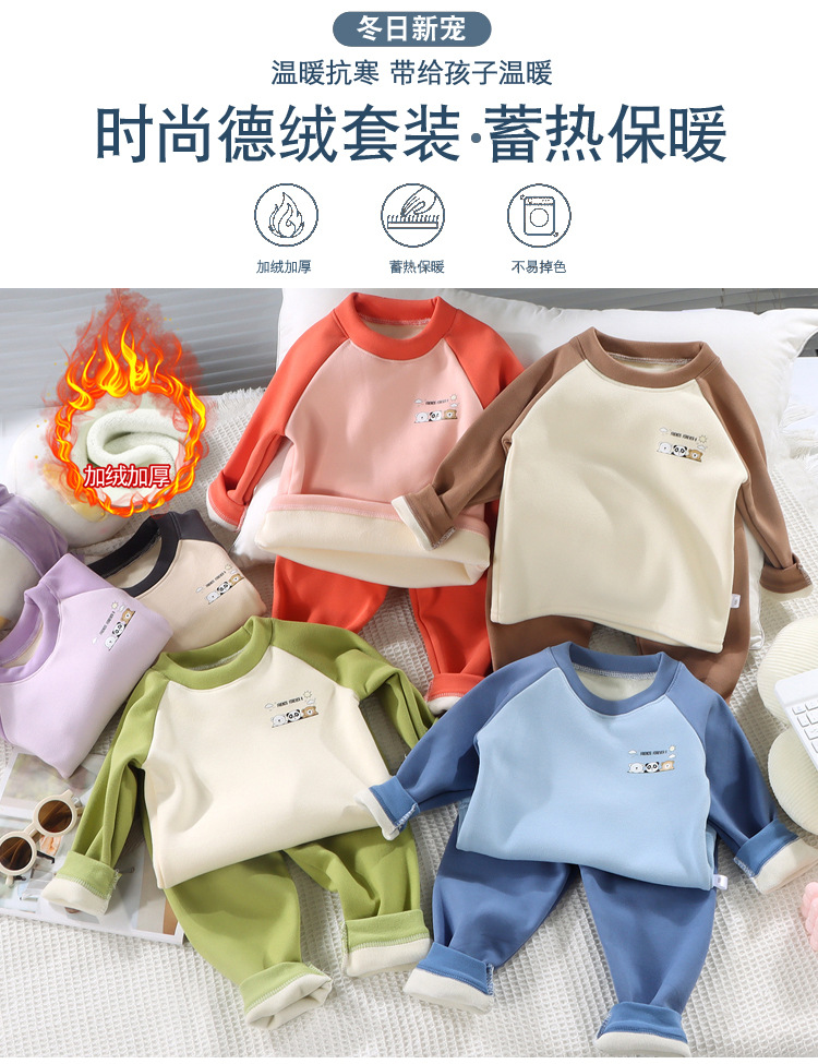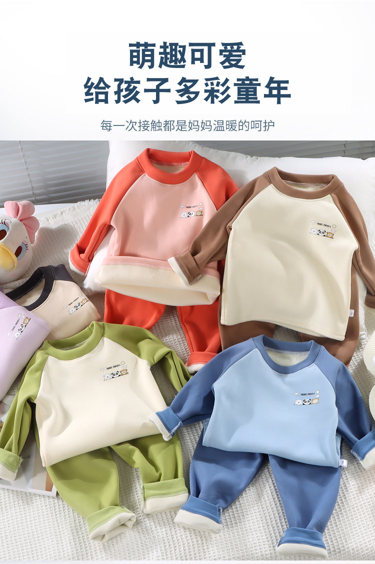 어린이 기모 가을 의류 바지 따뜻한 패딩 세트 소년 소녀 아기 가을과 겨울 독일 벨벳 기본 속옷 도매