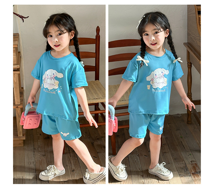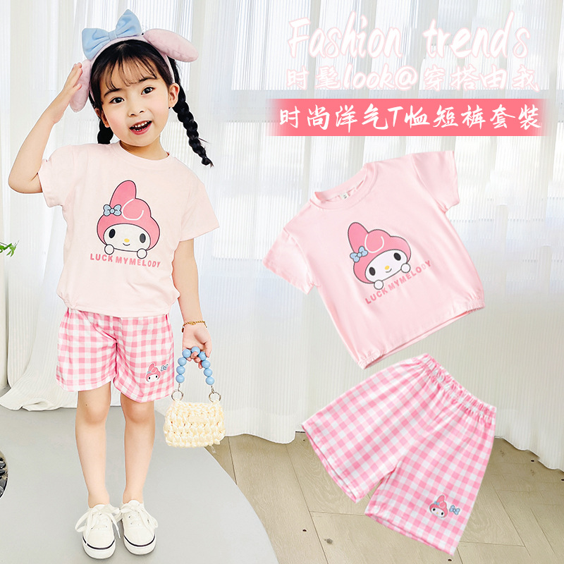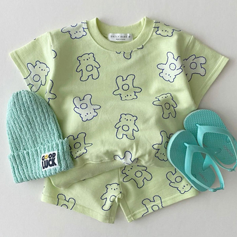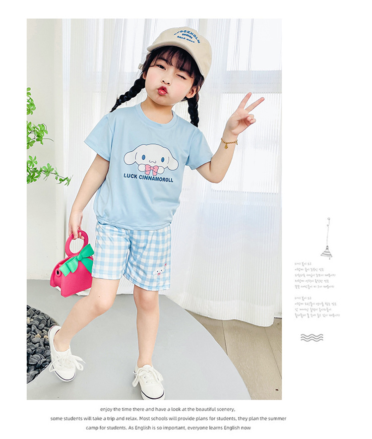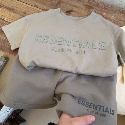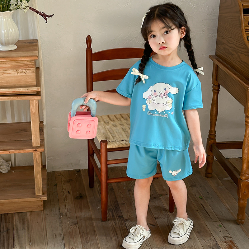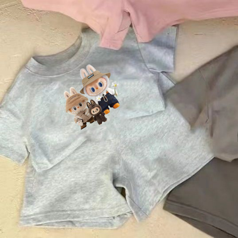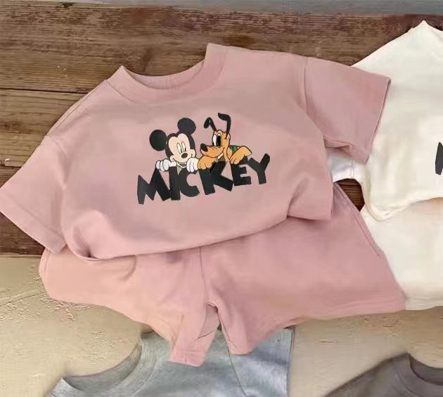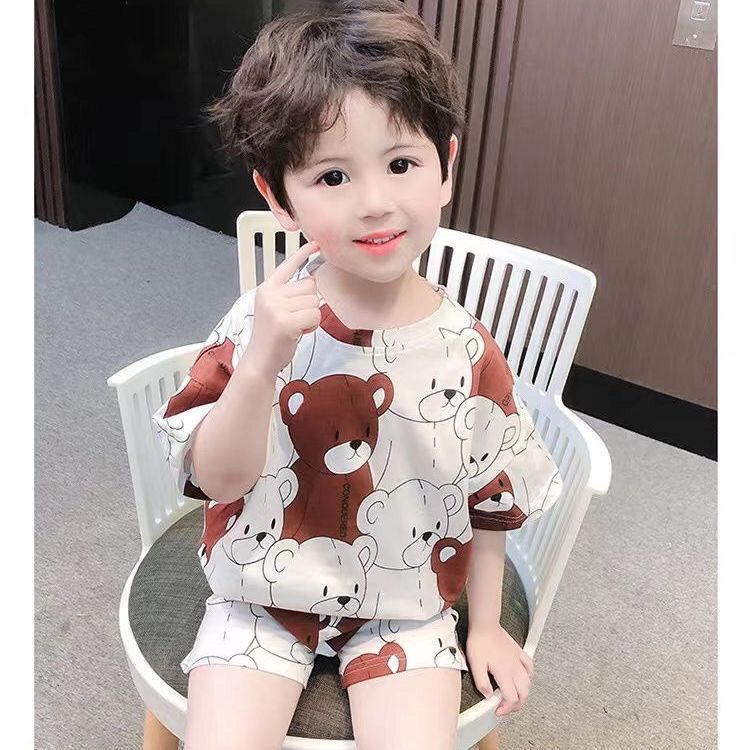여름 새로운 어린이 서양식 소년 소녀 패션 투피스 세트 중소 어린이 반팔 반바지 둥근 목 세트 트렌디스토어 가기