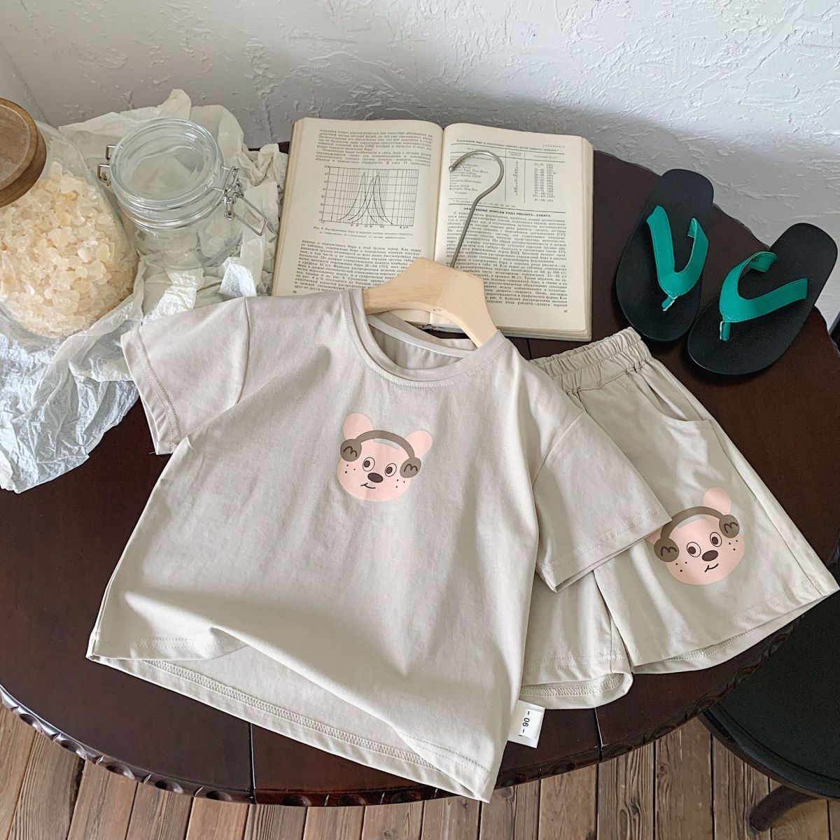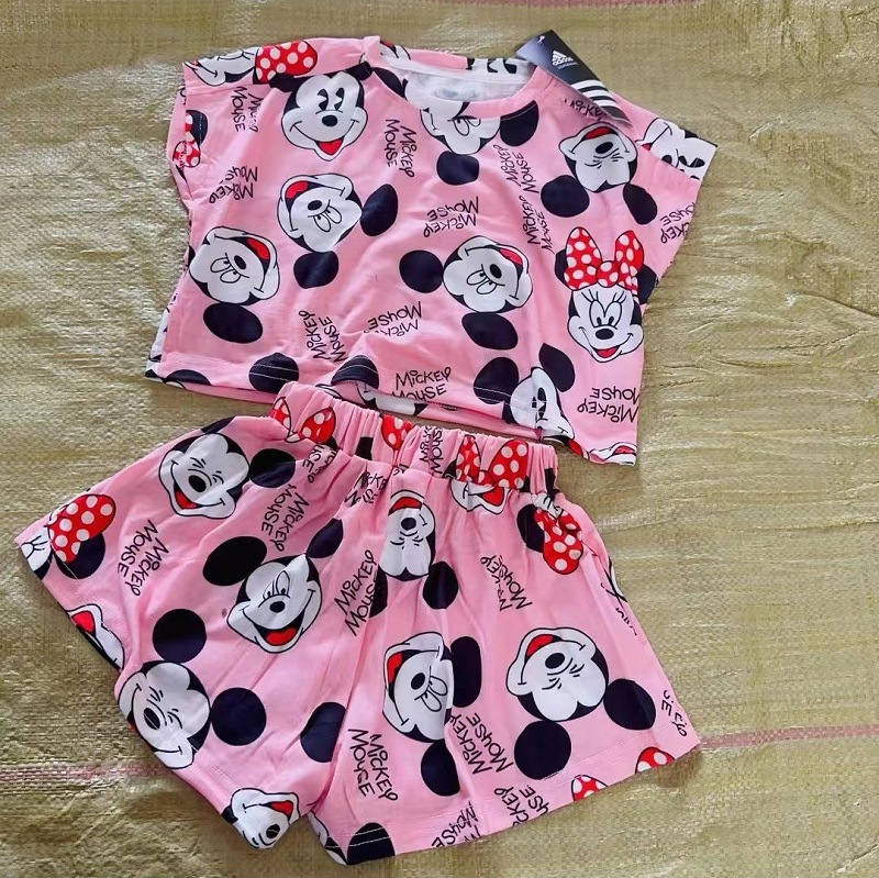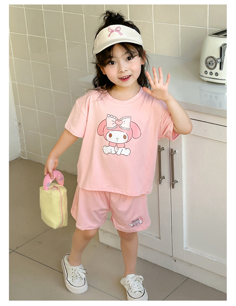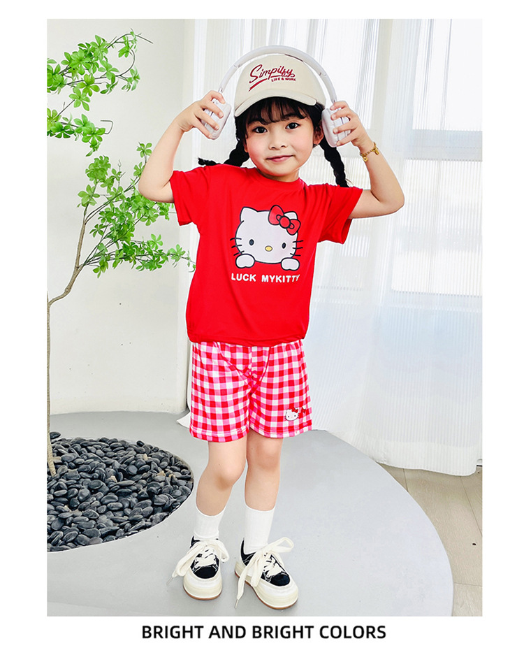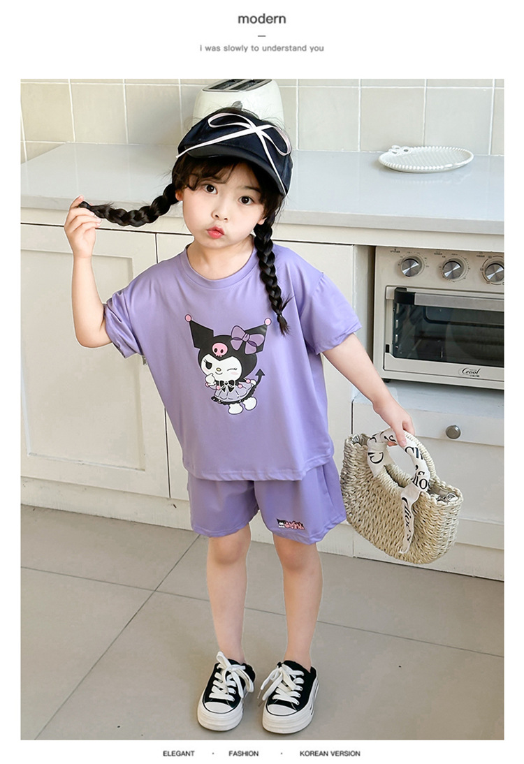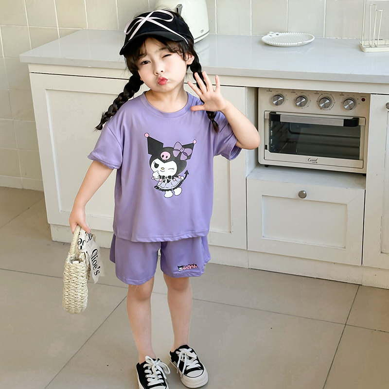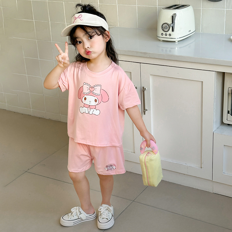 여름 새로운 어린이 서양식 소년 소녀 패션 투피스 세트 중소 어린이 반팔 반바지 둥근 목 세트 트렌디스토어 가기
