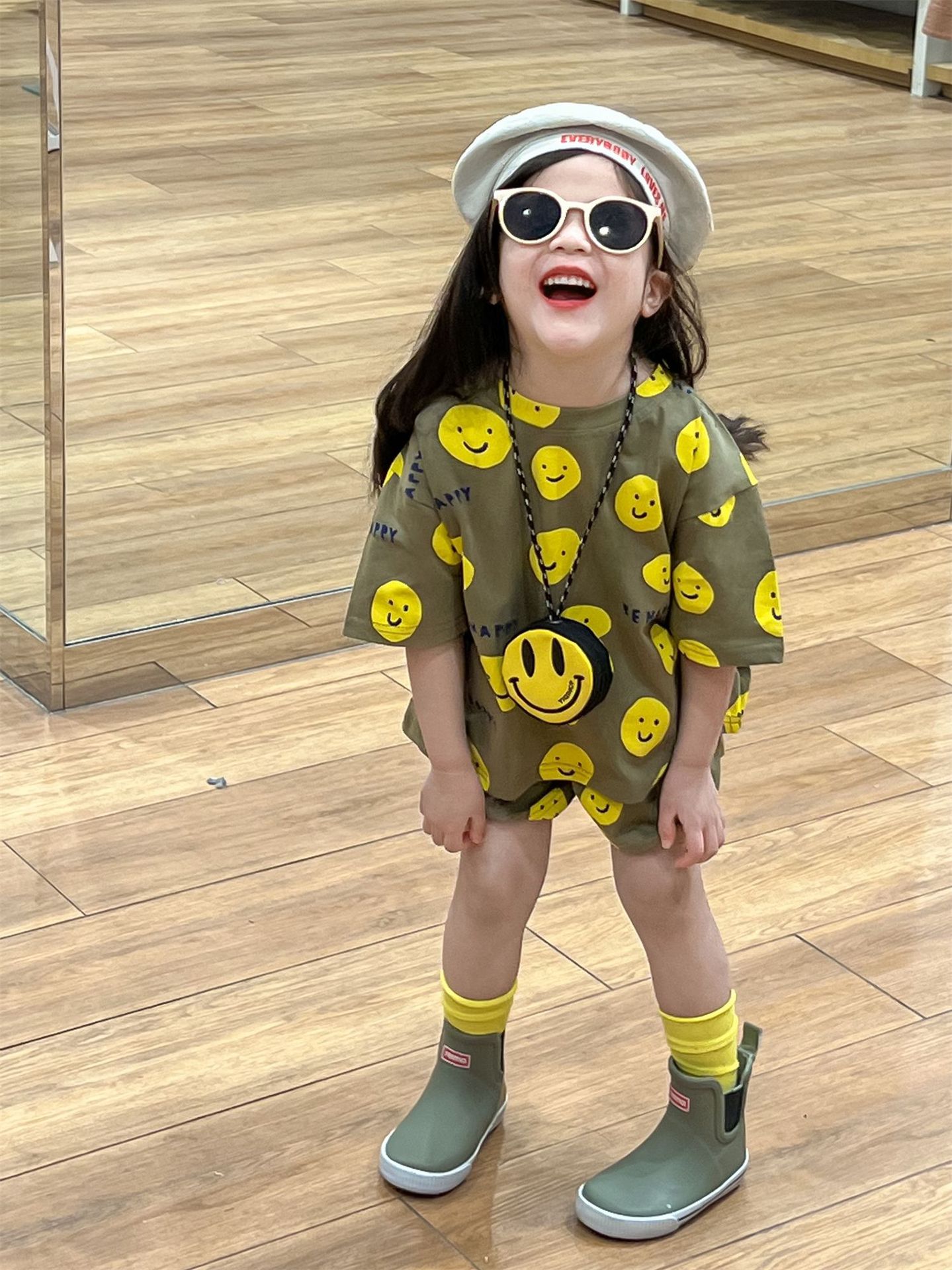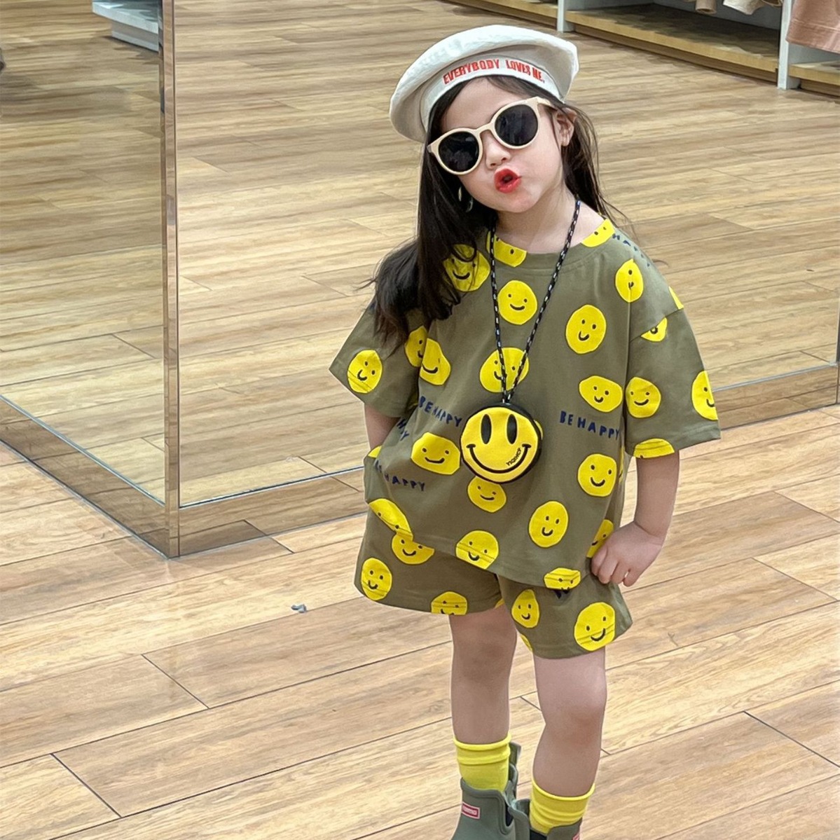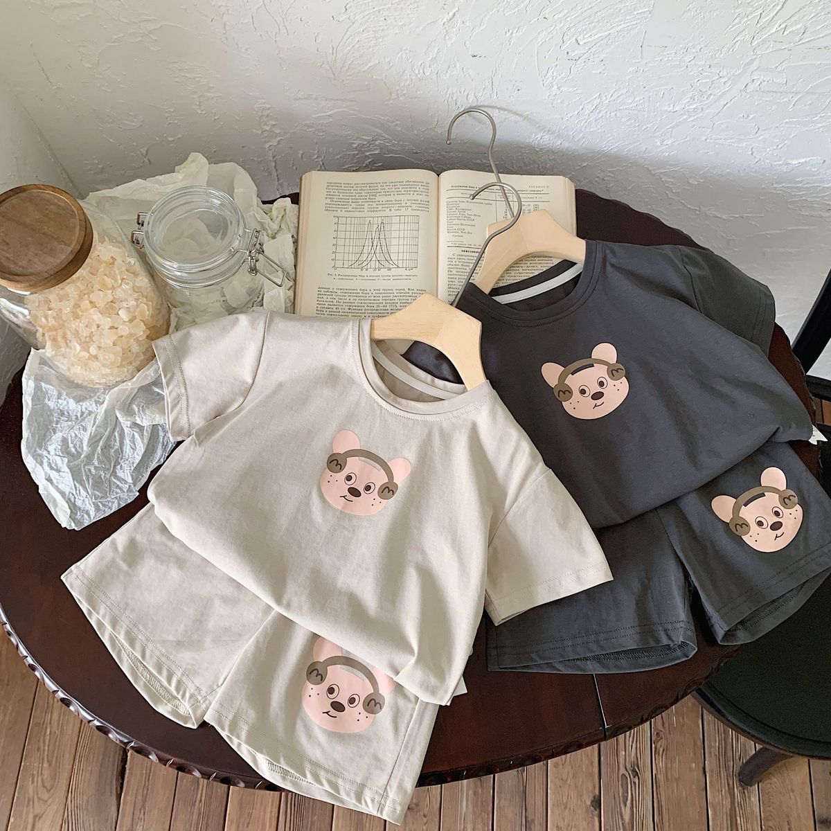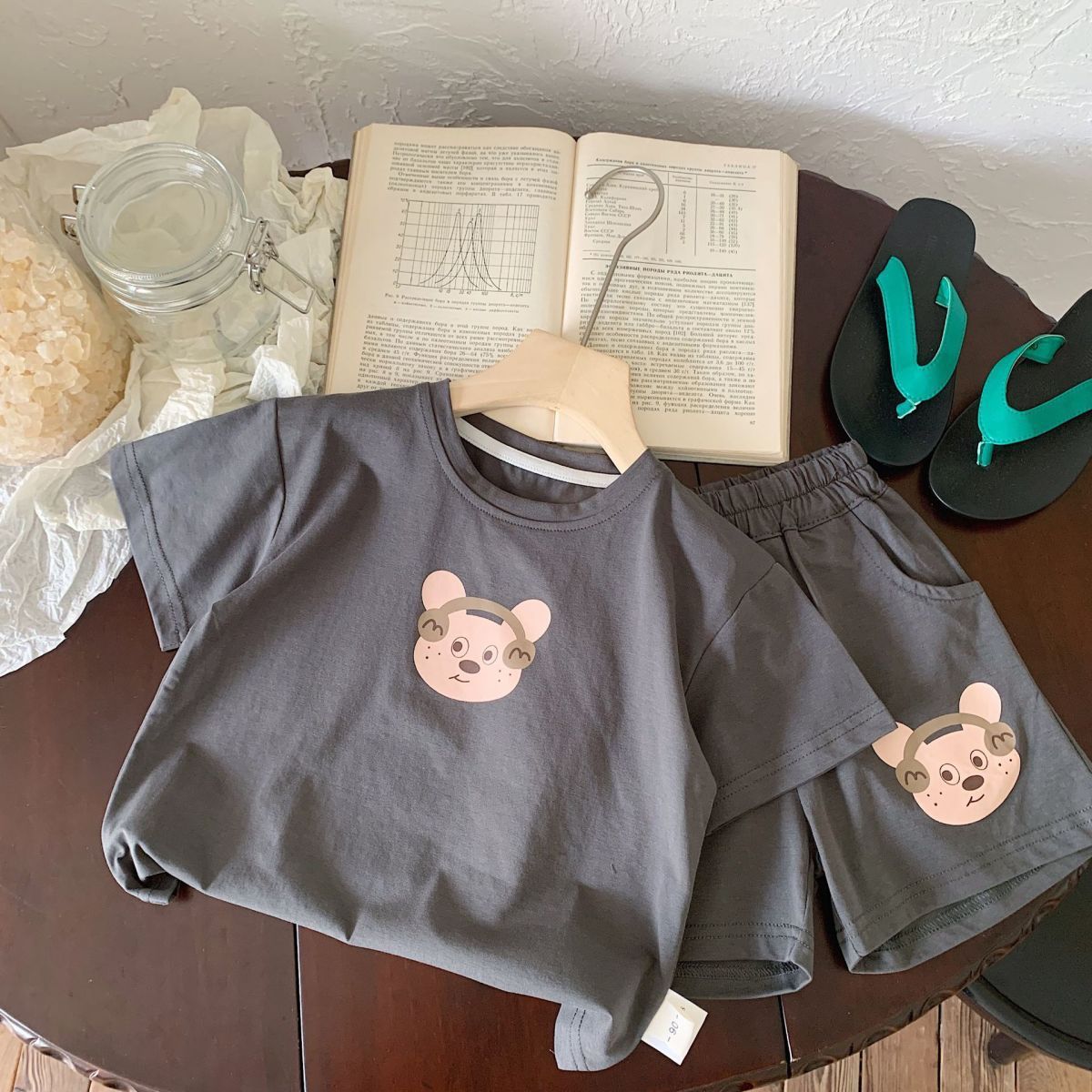 여름 새로운 어린이 서양식 소년 소녀 패션 투피스 세트 중소 어린이 반팔 반바지 둥근 목 세트 트렌디스토어 가기